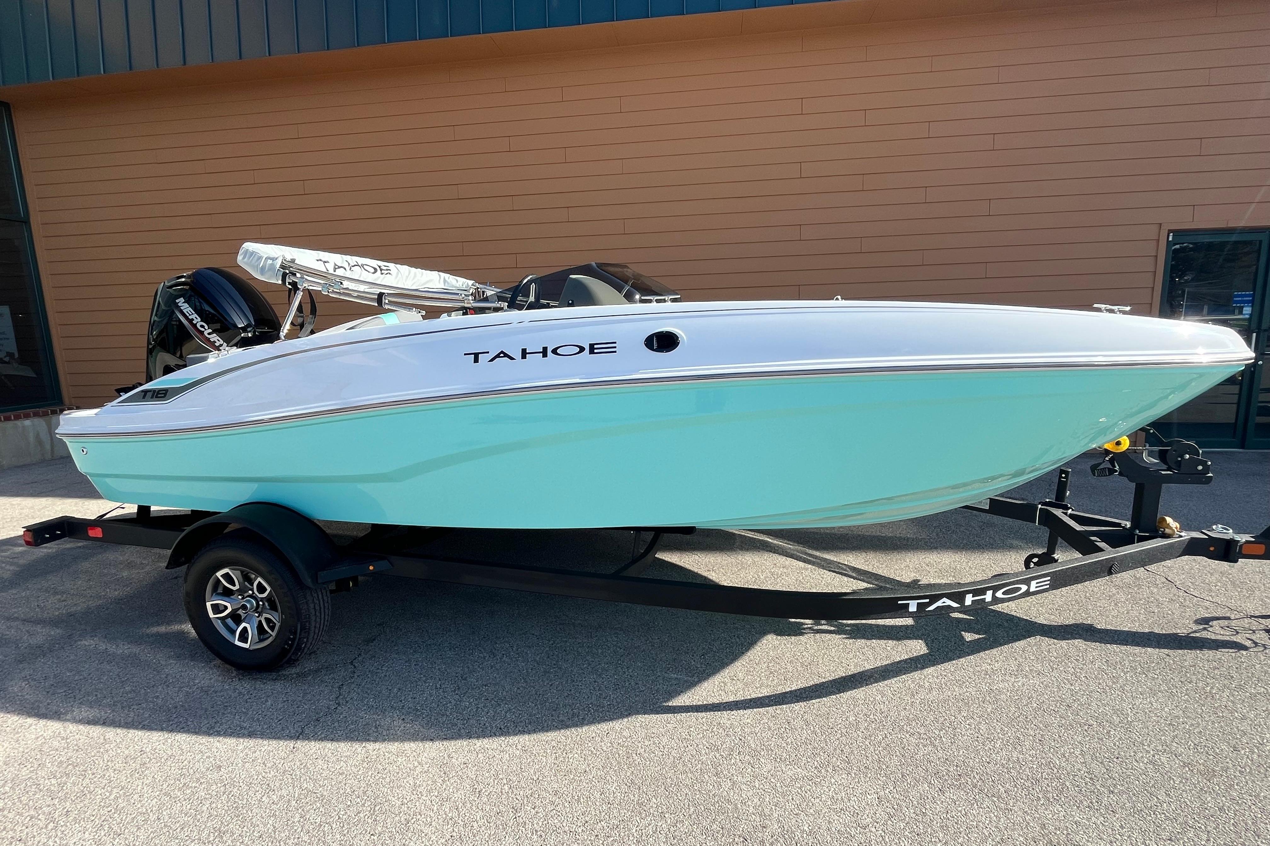 The 2026 TAHOE® T18 comes standard with a 90hp Mercury® ELPT FourStroke outboard motor and has a recommended maximum 115hp rating. This model is packaged with a trailer.
