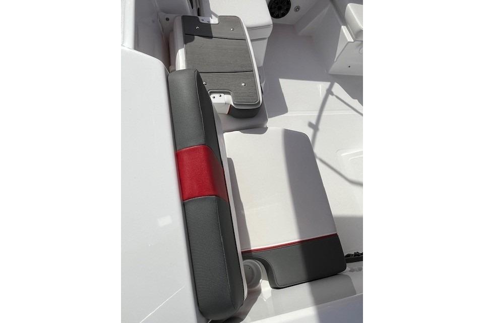 • Hinged mid-cushion for aft sunpad & fold-down seatback allows easy entry w/out stepping on upholstery