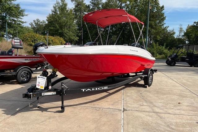 The 2026 TAHOE® T18 comes standard with a 90hp Mercury® ELPT FourStroke outboard motor and has a recommended maximum 115hp rating. This model is packaged with a trailer.