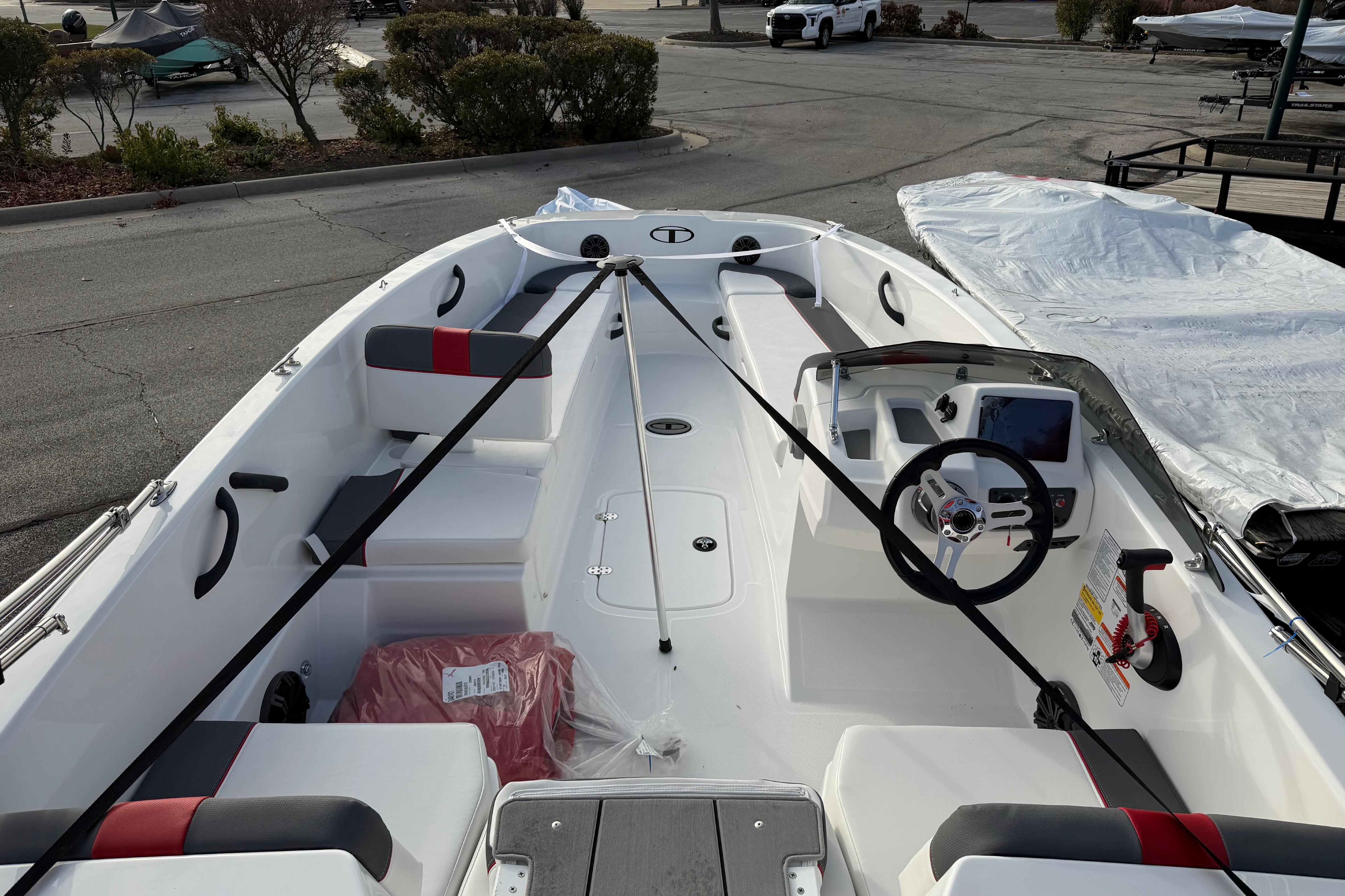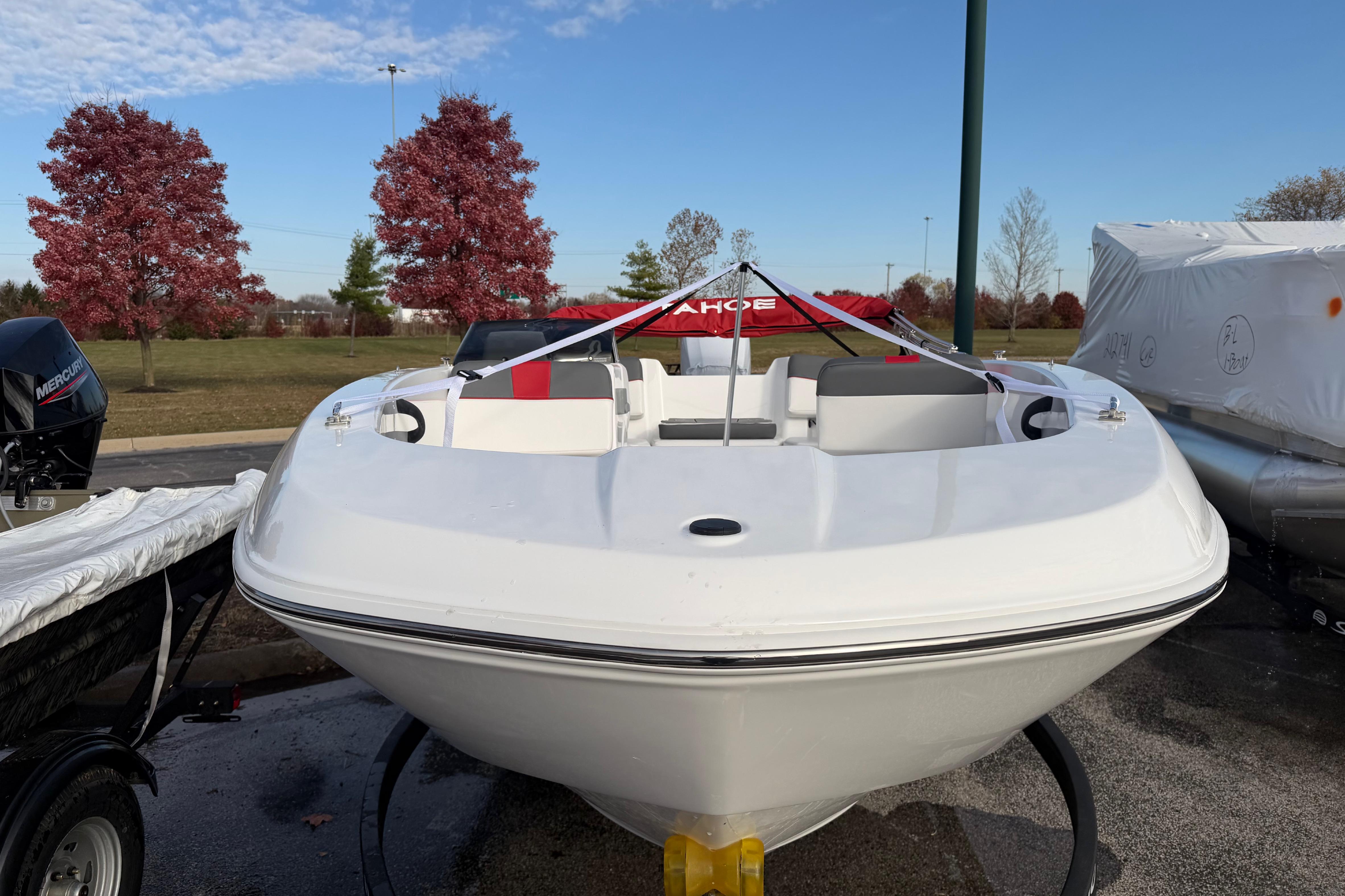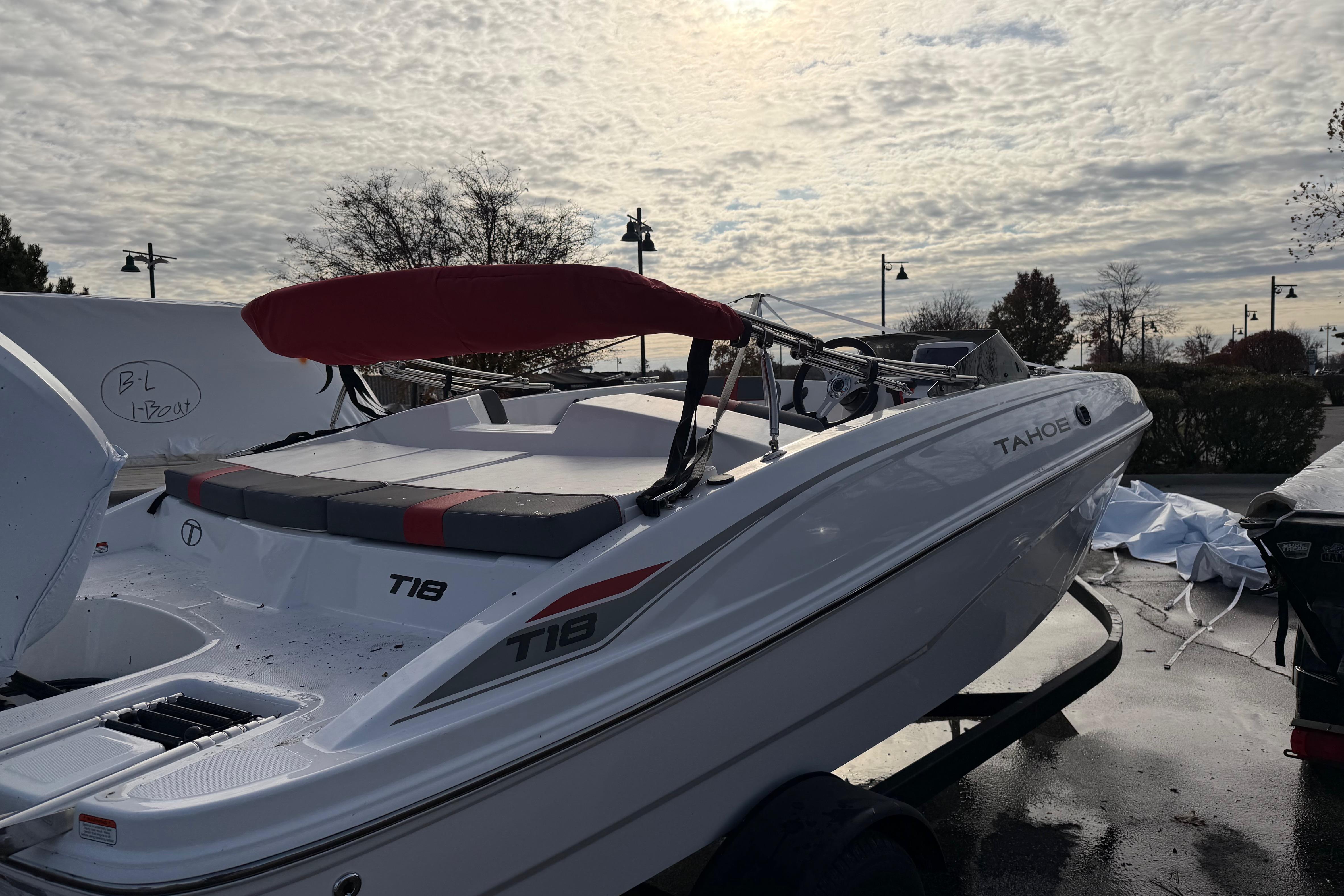 The 2026 TAHOE® T18 comes standard with a 90hp Mercury® ELPT FourStroke outboard motor and has a recommended maximum 115hp rating. This model is packaged with a trailer.