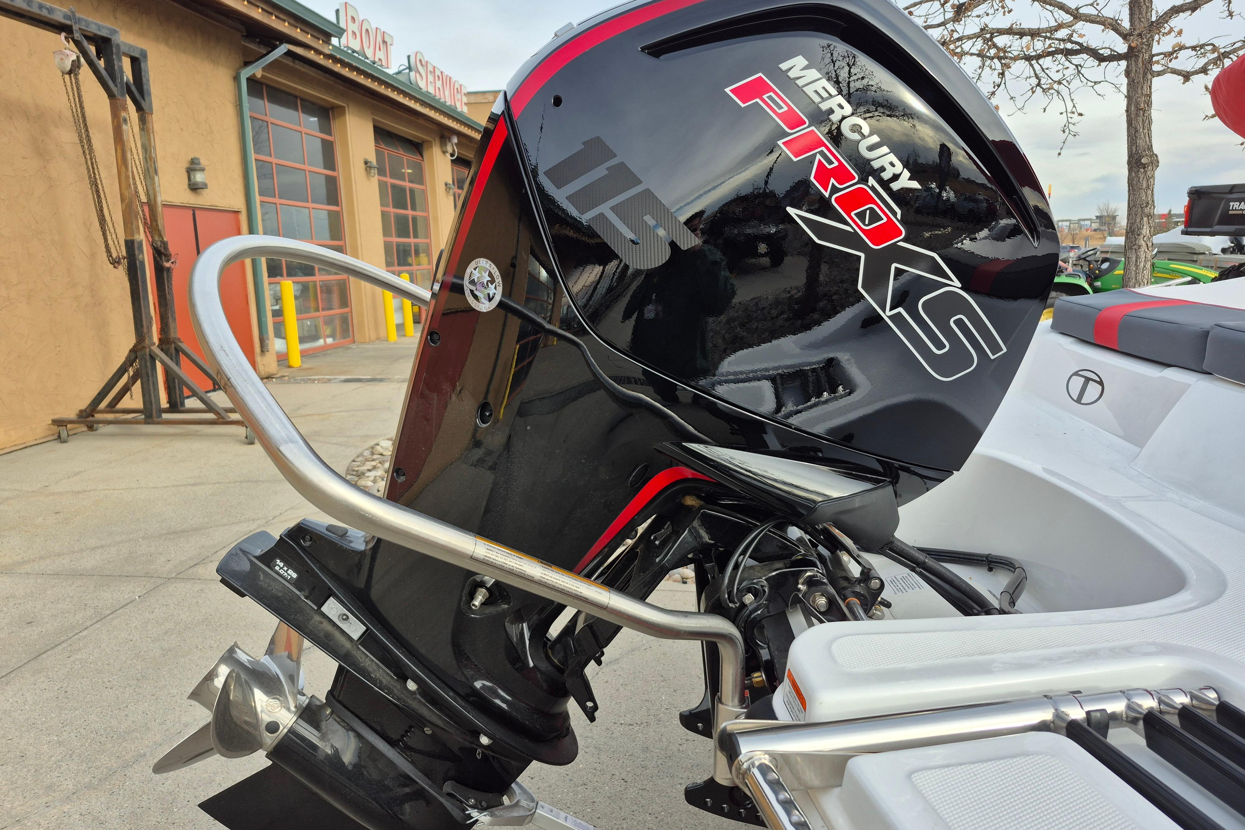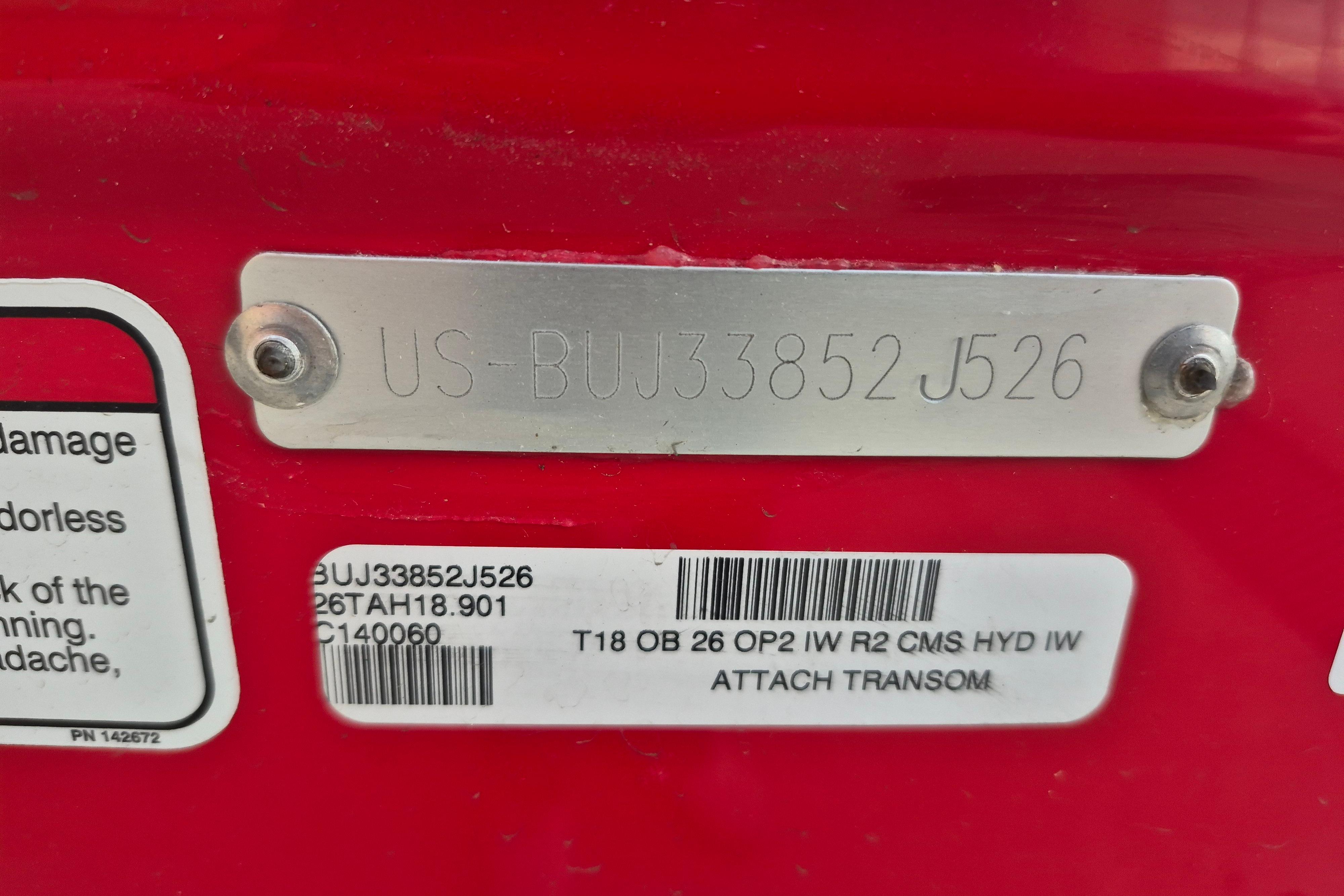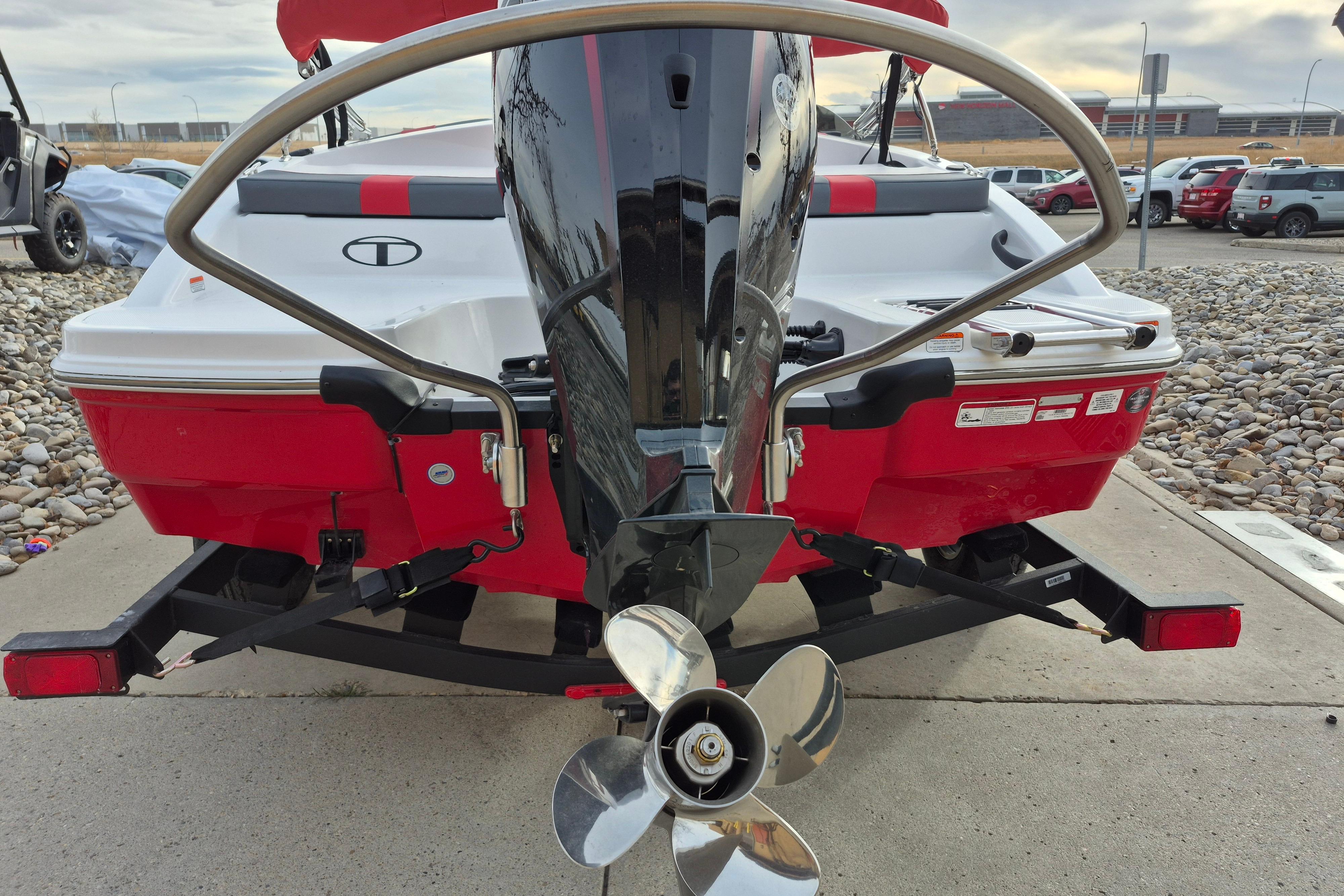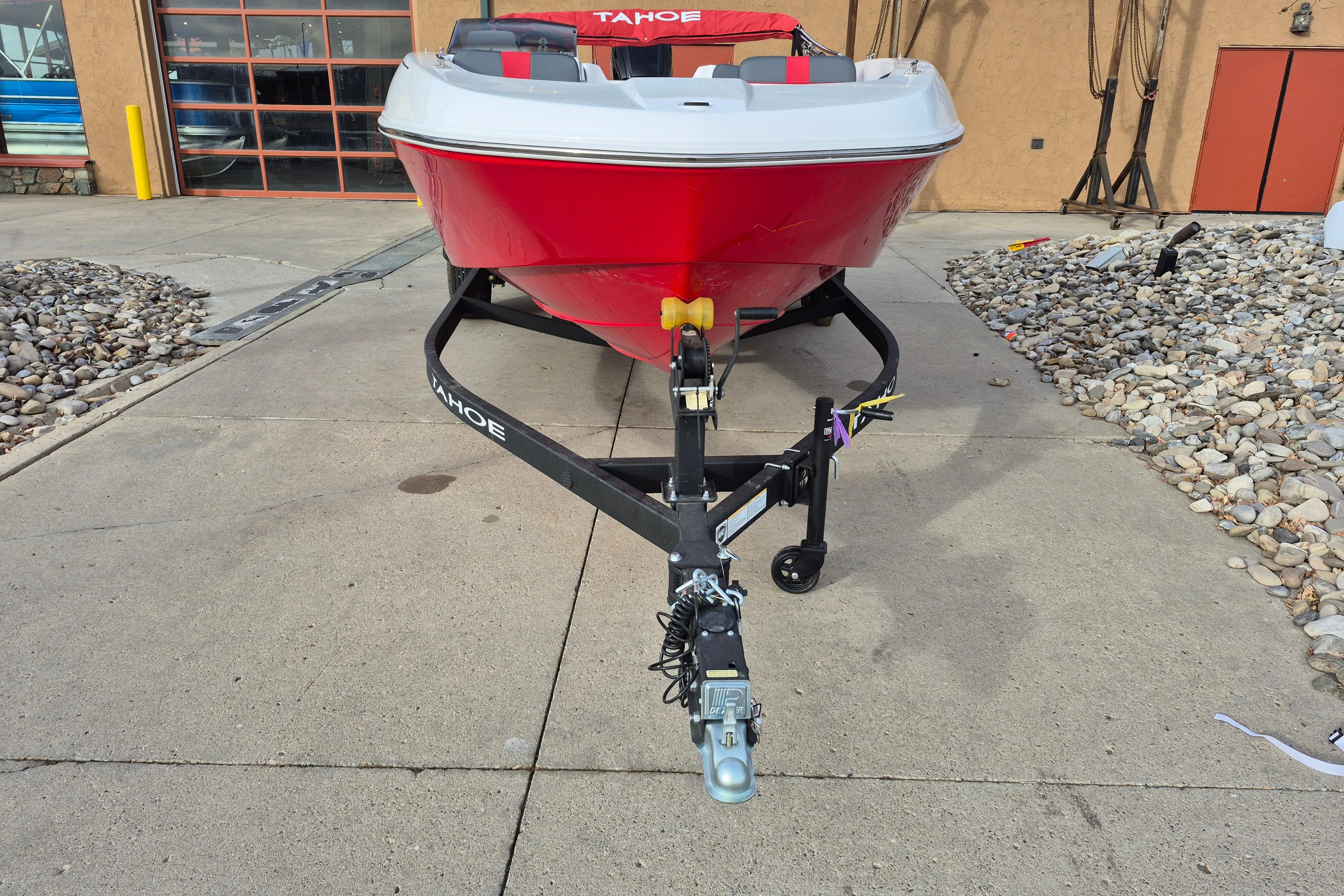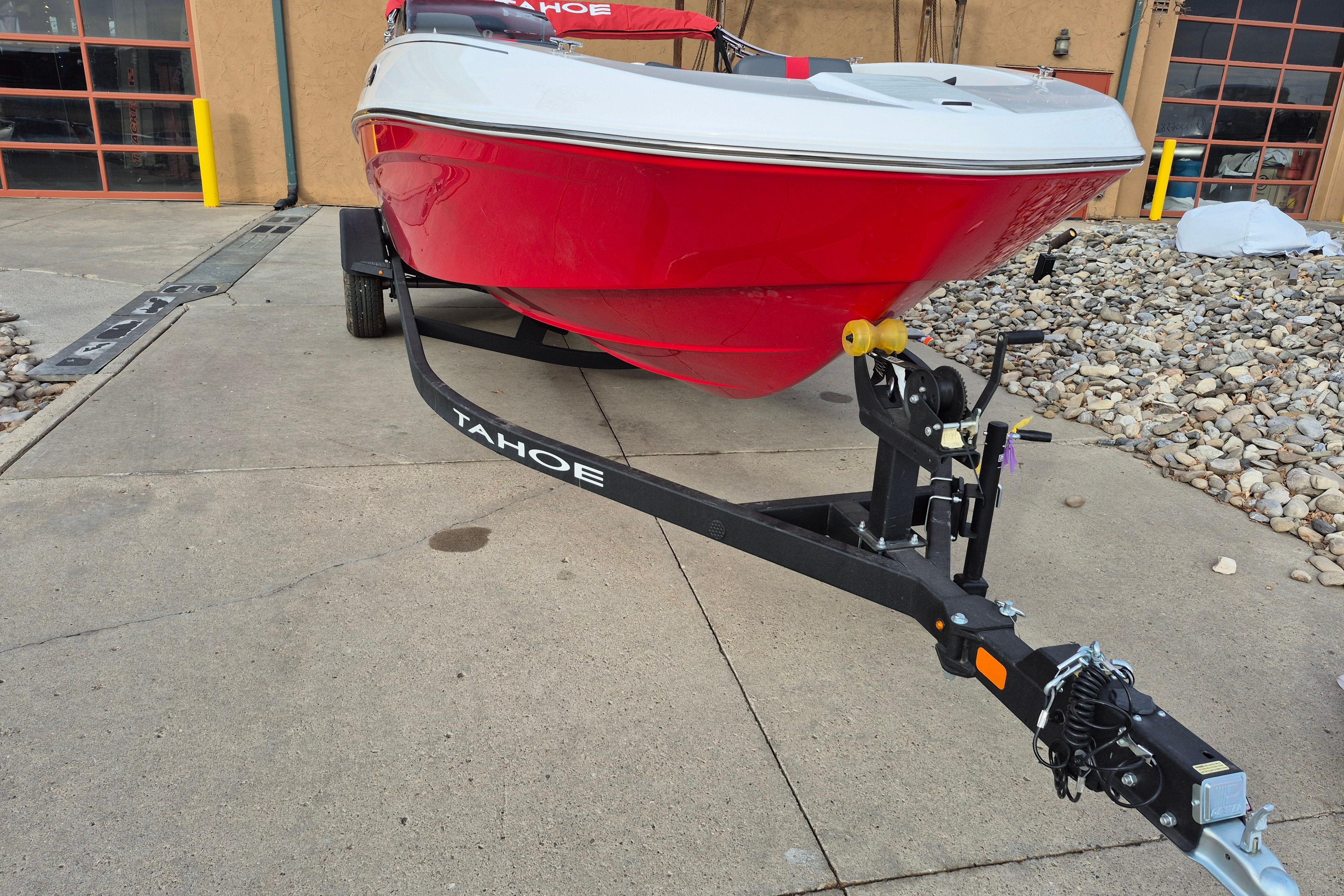 The 2026 TAHOE® T18 comes standard with a 90hp Mercury® ELPT FourStroke outboard motor and has a recommended maximum 115hp rating. This model is packaged with a trailer.