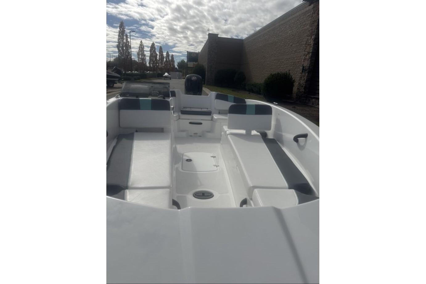The aft swim platform with a 4-step telescoping boarding ladder makes it easy to jump in and out of the water. Find your favorite seat in the 3-across midship bench, dual forward lounges, or aft sun pad. The port bow backrest can be reversed for forward or aft seating and its cushion can even be flipped up so passengers don't step on the upholstery as they board. Add the optional bimini top to create the perfect lake-day boat your friends and family will love!