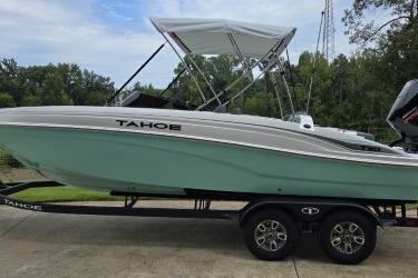 The 2026 TAHOE® T21 comes standard with a 150hp Mercury® XL Pro XS® FourStroke outboard motor and has a recommended maximum 200hp rating. This model is packaged with a trailer.