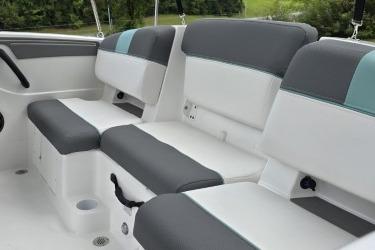 • Hinged mid-cushion for aft sunpad & fold-down seatback allows easy entry w/out stepping on upholstery