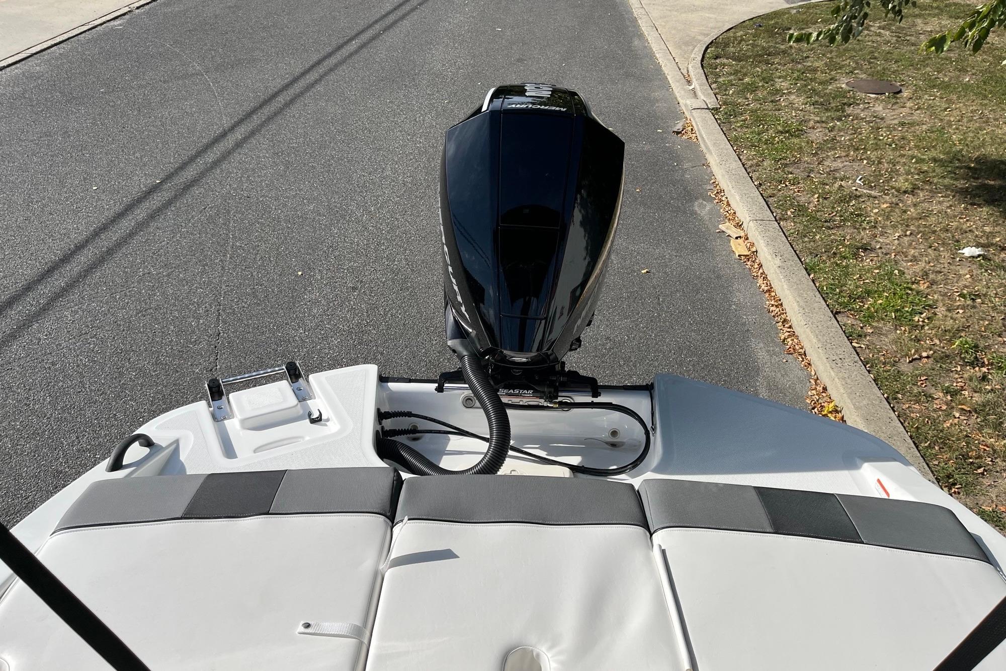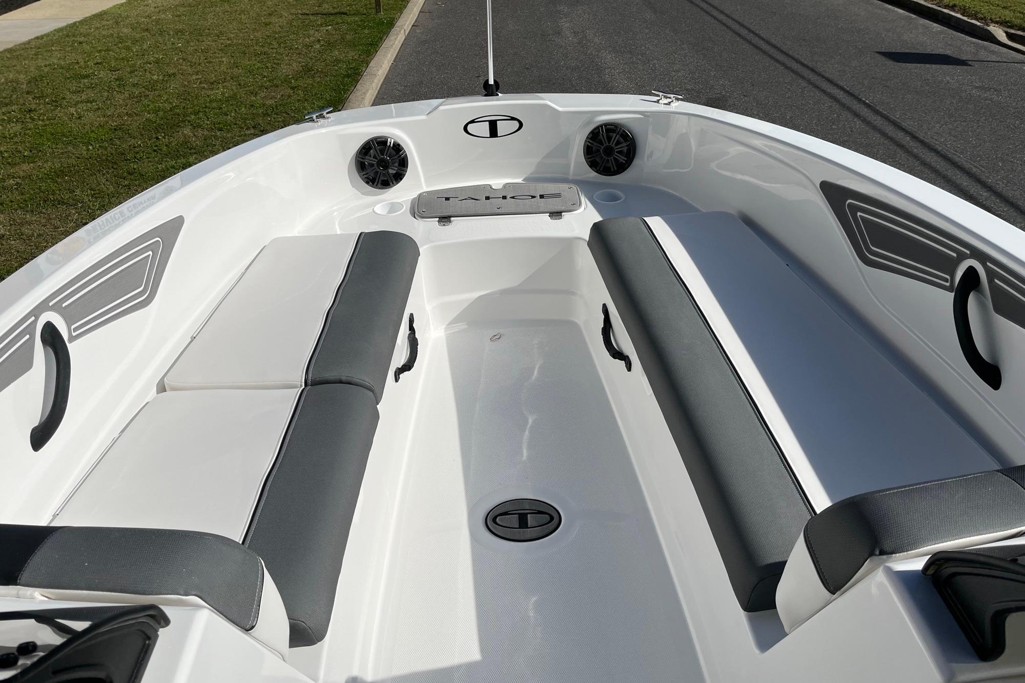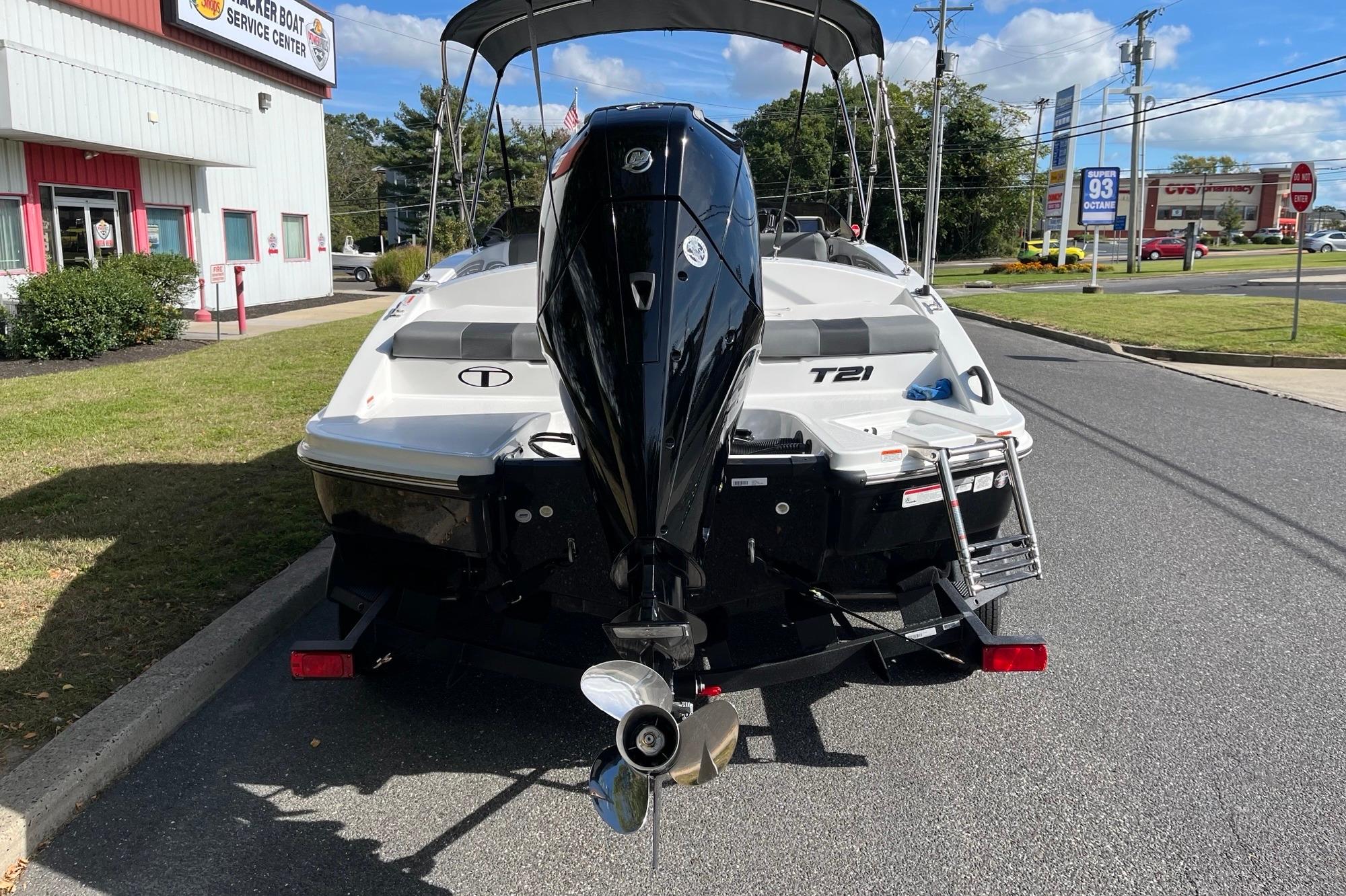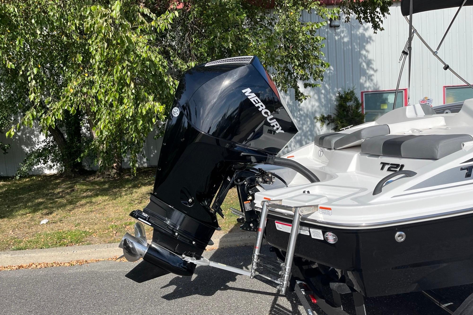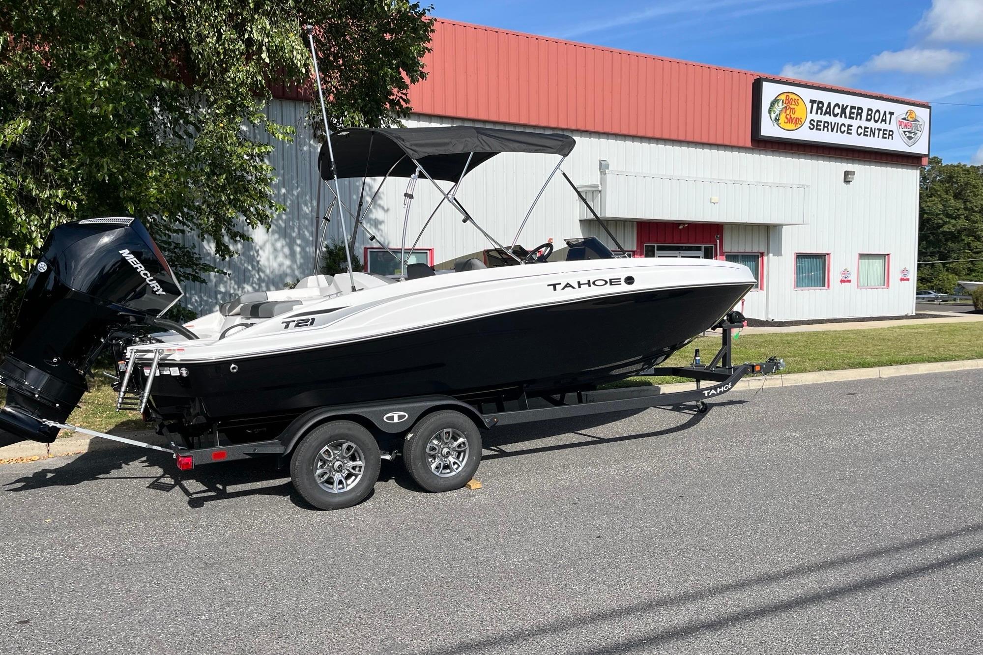 The 2026 TAHOE® T21 comes standard with a 150hp Mercury® XL Pro XS® FourStroke outboard motor and has a recommended maximum 200hp rating. This model is packaged with a trailer.