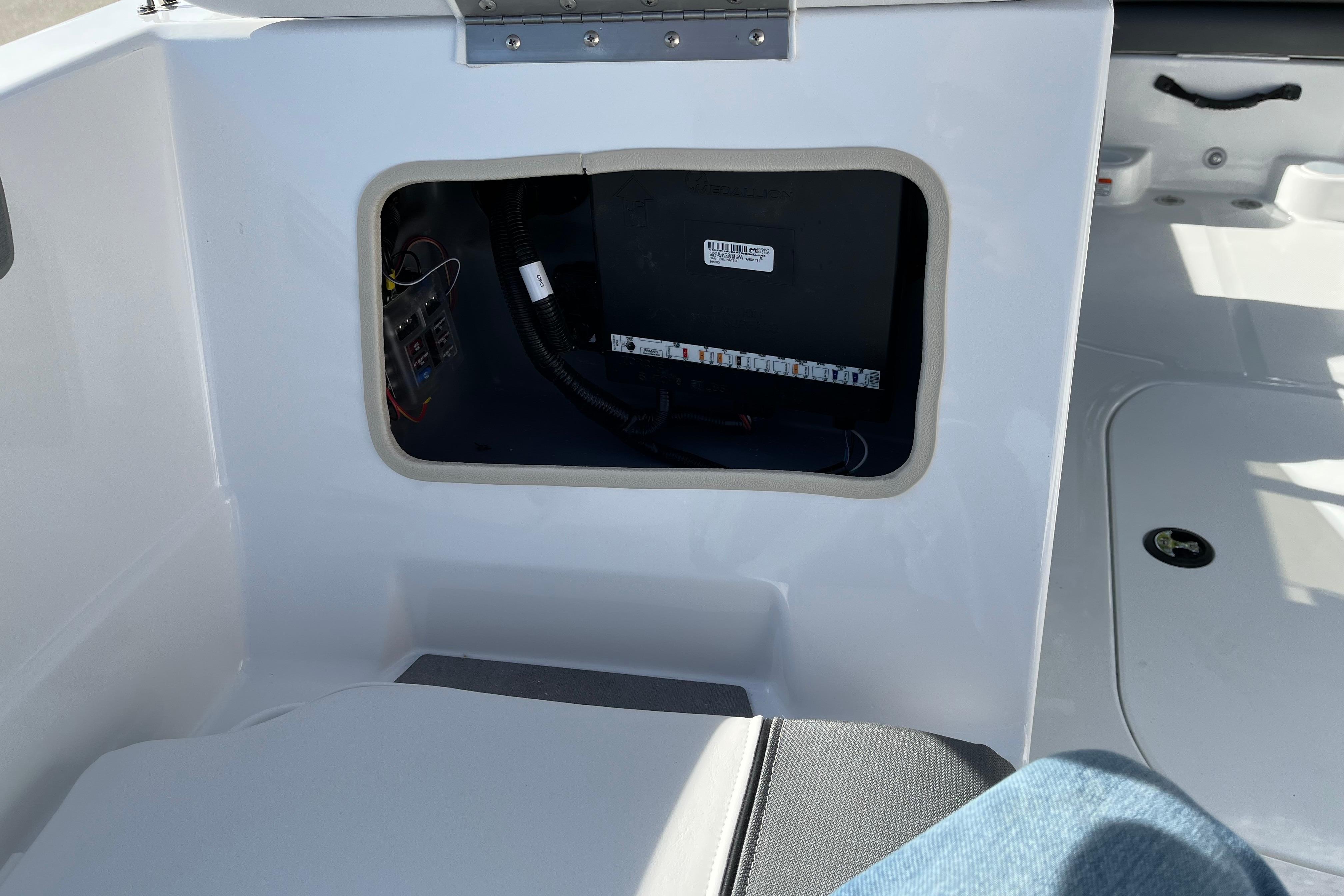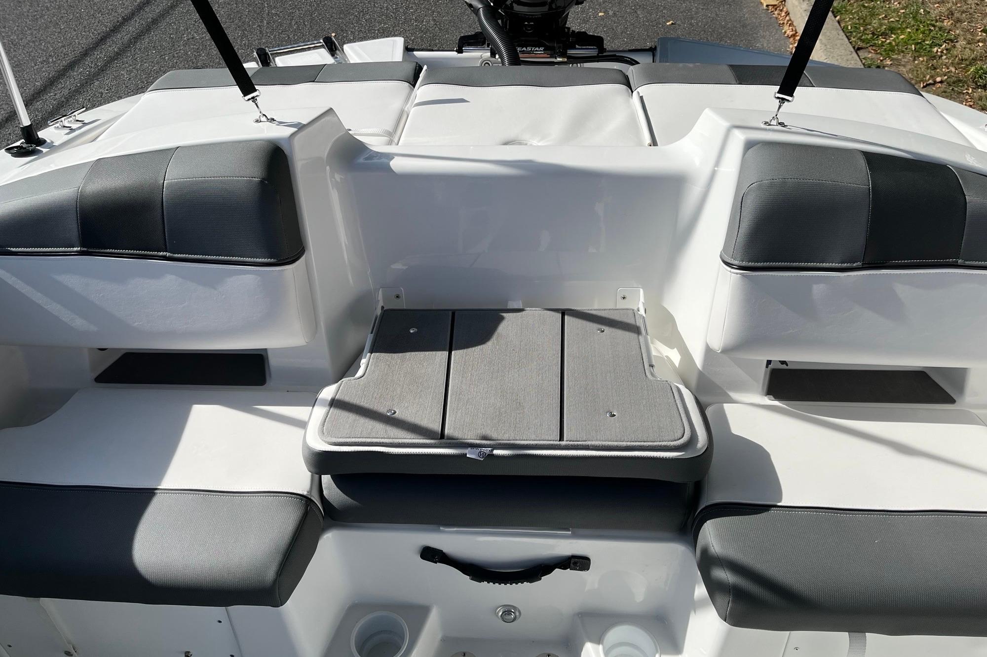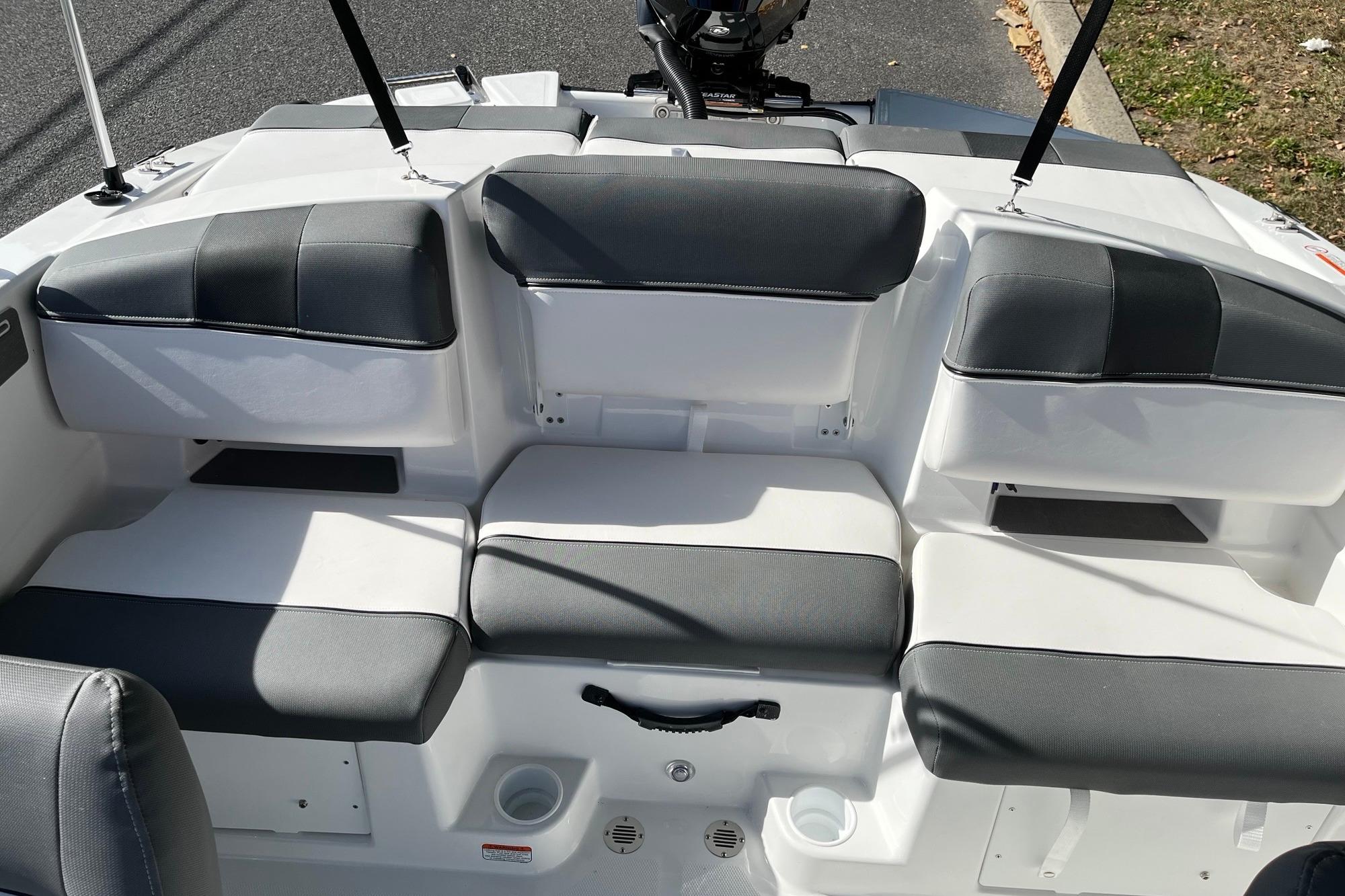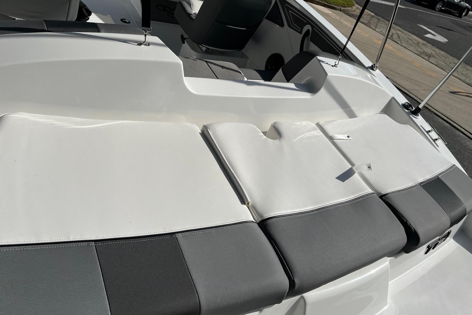 • Hinged mid-cushion for aft sunpad & fold-down seatback allows easy entry w/out stepping on upholstery