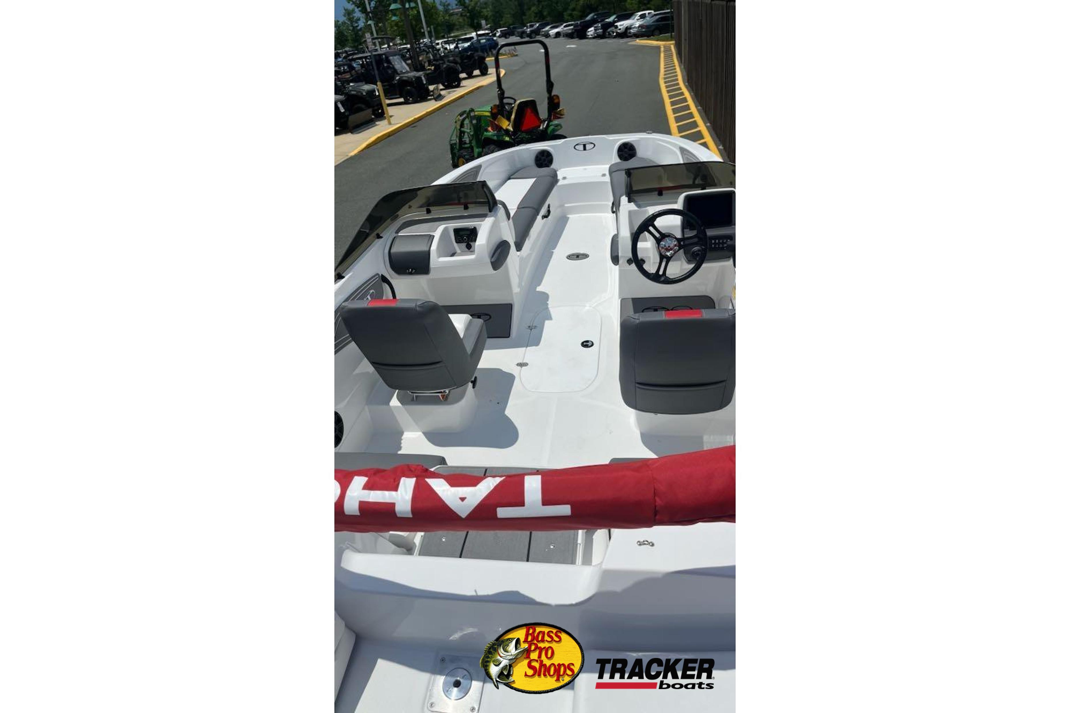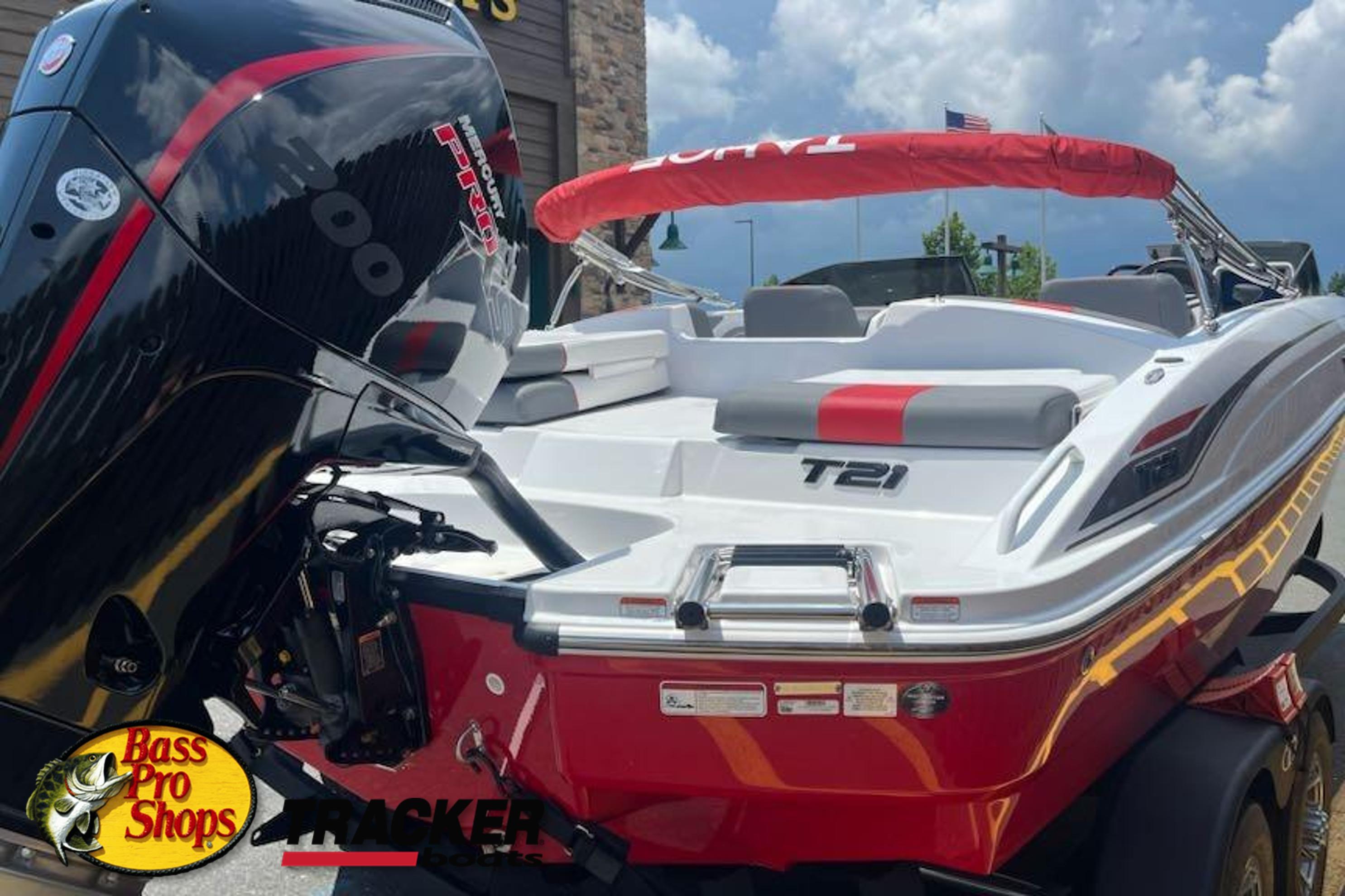 The 2026 TAHOE® T21 comes standard with a 150hp Mercury® XL Pro XS® FourStroke outboard motor and has a recommended maximum 200hp rating. This model is packaged with a trailer.