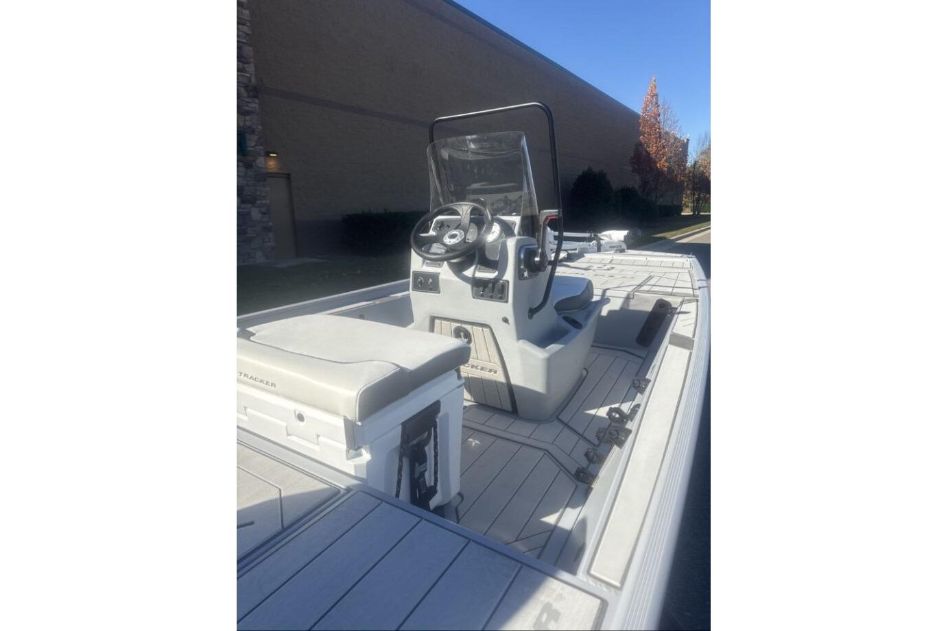 The TRACKER® Classic CC is the newest edition to the historical Classic lineup. Featuring 15-gal aerated livewell ensuring your catch stays fresh. Its molded one-piece construction with rounded corners allows for easy cleanup and added protection for your catch. The Minn Kota® Riptide® Maxxum® 12V trolling motor delivers 55 lbs. of thrust with a 52" shaft, providing reliable control on the water. The one-piece rotomolded console includes a tinted windscreen, drink holder, and 12V outlet, while the forward console seat offers padded comfort and storage. Five rod holders and a Garmin® STRIKER™ 4 fishfinder with GPS and CHIRP transducer enhance your fishing experience. Inside, there are two pedestal seat bases, elevated bow and aft casting decks with storage, a 94-qt. bow storage tub, and a padded 50-qt. cooler. Built with durable DIAMOND COAT™ powdercoat and all-welded aluminum construction, this boat offers unmatched strength and longevity. A custom-fit single-axle trailer completes this rugged, high-performance package.