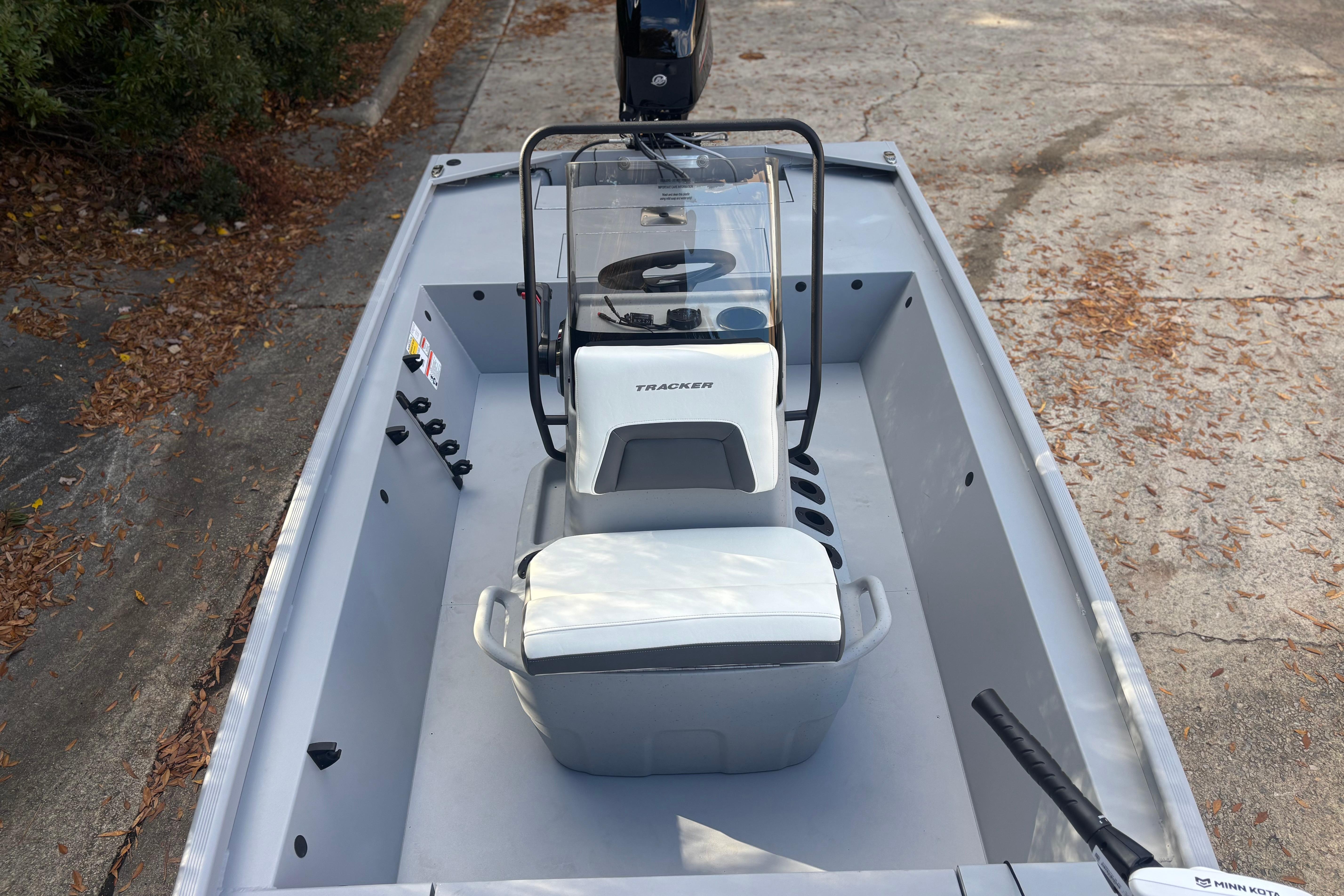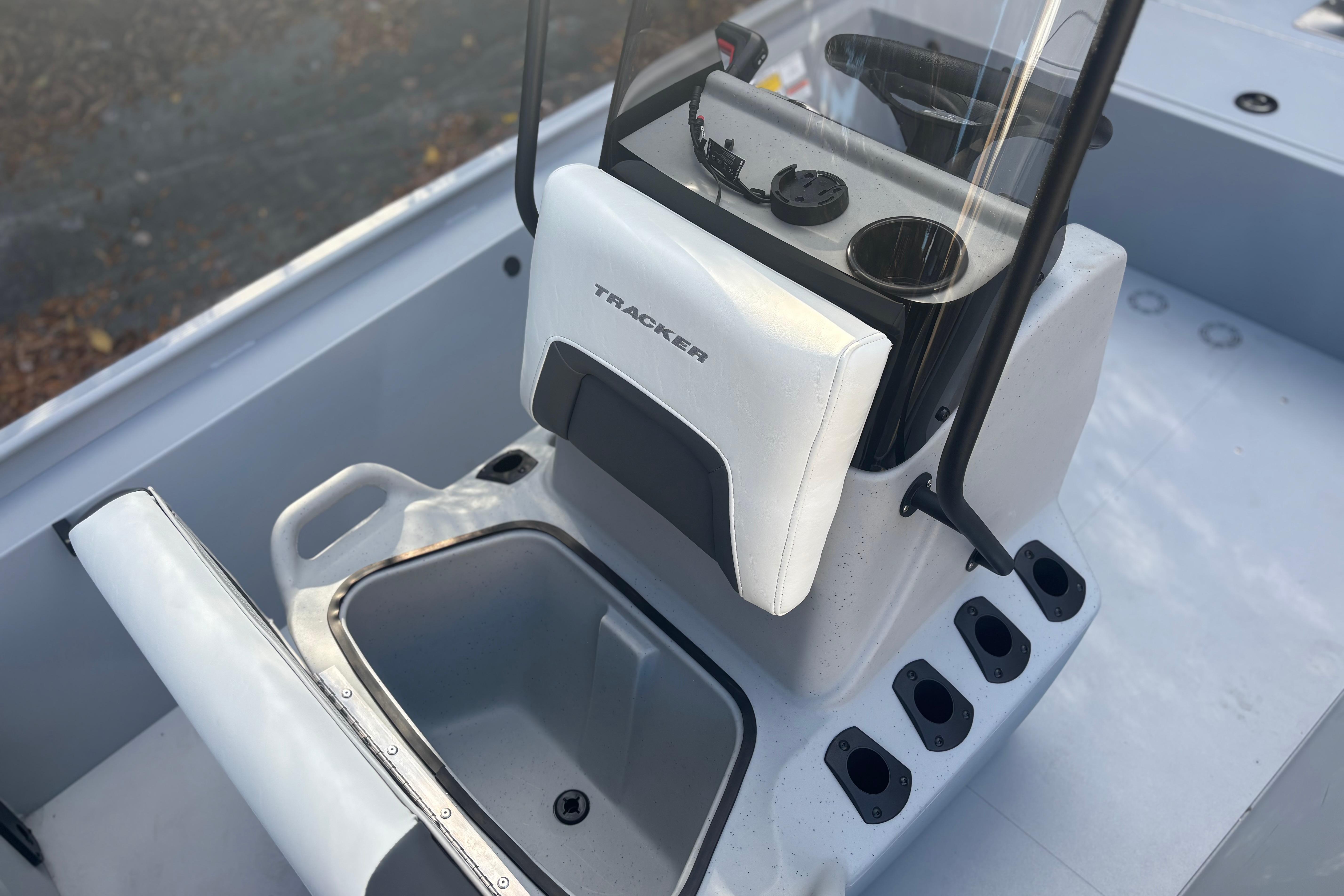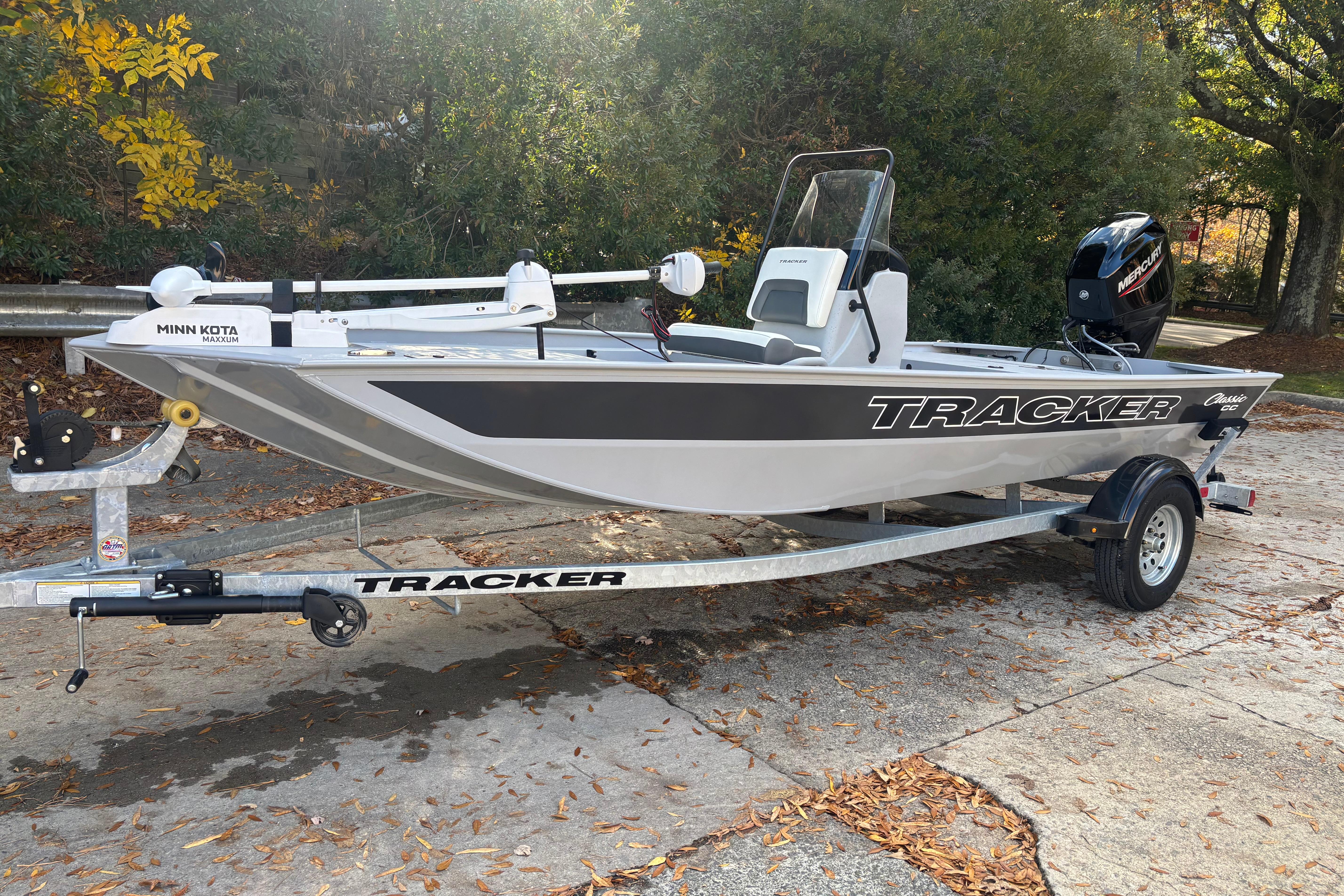 The TRACKER® Classic CC is the newest edition to the historical Classic lineup. Featuring 15-gal aerated livewell ensuring your catch stays fresh. Its molded one-piece construction with rounded corners allows for easy cleanup and added protection for your catch. The Minn Kota® Riptide® Maxxum® 12V trolling motor delivers 55 lbs. of thrust with a 52" shaft, providing reliable control on the water. The one-piece rotomolded console includes a tinted windscreen, drink holder, and 12V outlet, while the forward console seat offers padded comfort and storage. Five rod holders and a Garmin® STRIKER™ 4 fishfinder with GPS and CHIRP transducer enhance your fishing experience. Inside, there are two pedestal seat bases, elevated bow and aft casting decks with storage, a 94-qt. bow storage tub, and a padded 50-qt. cooler. Built with durable DIAMOND COAT™ powdercoat and all-welded aluminum construction, this boat offers unmatched strength and longevity. A custom-fit single-axle trailer completes this rugged, high-performance package.
