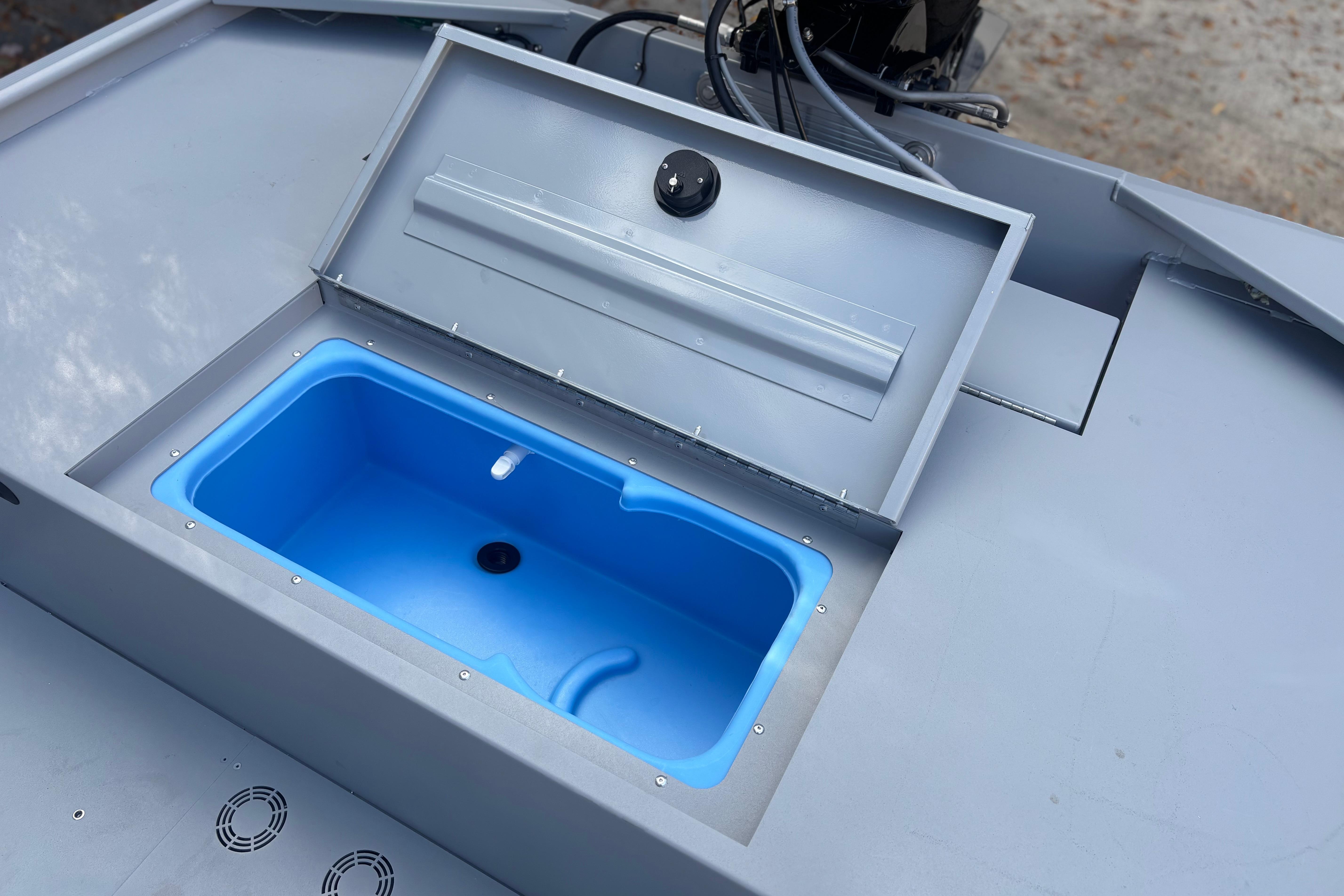 • Rugged all-welded, 2-piece .100-gauge aluminum hull w/pressed-in strakes & chines for structural strength & handling