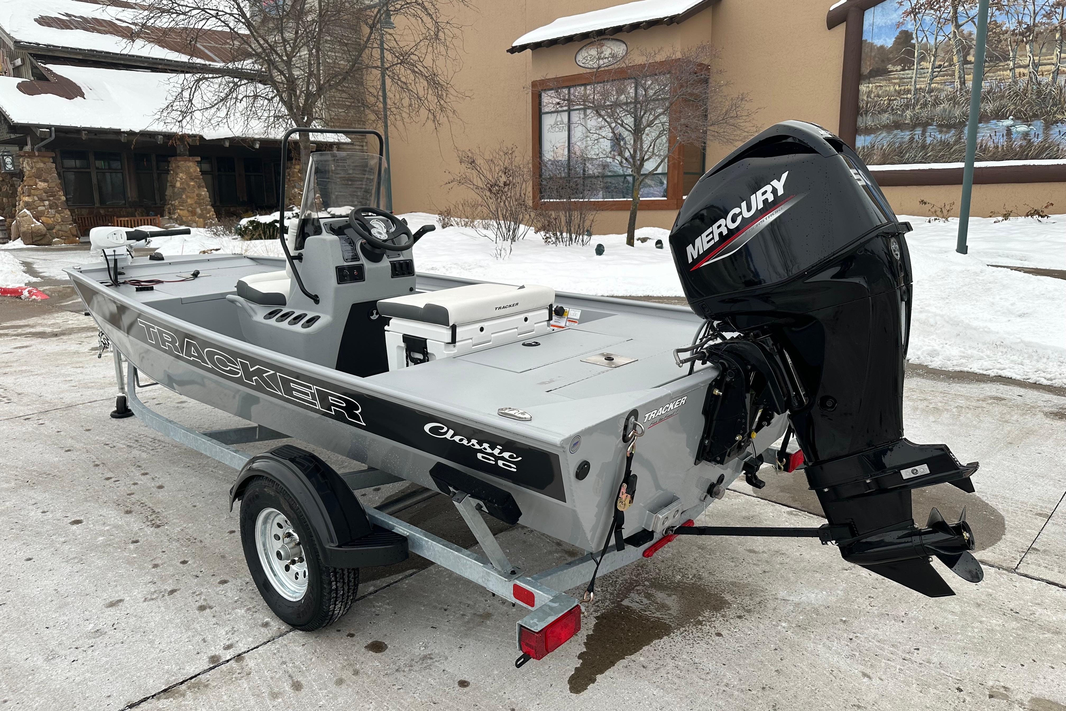 The TRACKER® Classic CC is the newest edition to the historical Classic lineup. Featuring 15-gal aerated livewell ensuring your catch stays fresh. Its molded one-piece construction with rounded corners allows for easy cleanup and added protection for your catch. The Minn Kota® Riptide® Maxxum® 12V trolling motor delivers 55 lbs. of thrust with a 52" shaft, providing reliable control on the water. The one-piece rotomolded console includes a tinted windscreen, drink holder, and 12V outlet, while the forward console seat offers padded comfort and storage. Five rod holders and a Garmin® STRIKER™ 4 fishfinder with GPS and CHIRP transducer enhance your fishing experience. Inside, there are two pedestal seat bases, elevated bow and aft casting decks with storage, a 94-qt. bow storage tub, and a padded 50-qt. cooler. Built with durable DIAMOND COAT™ powdercoat and all-welded aluminum construction, this boat offers unmatched strength and longevity. A custom-fit single-axle trailer completes this rugged, high-performance package.