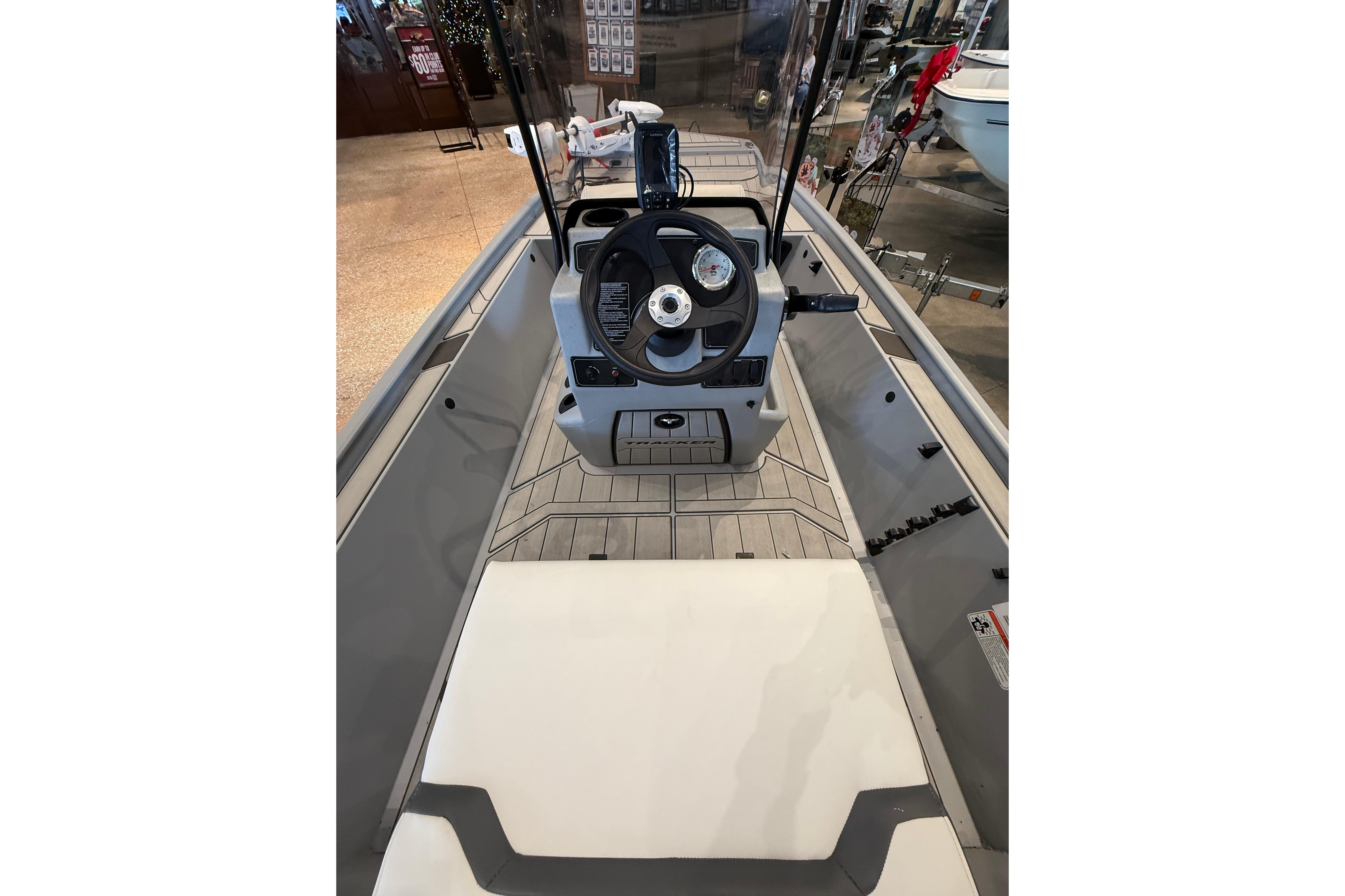 The TRACKER® Classic CC is the newest edition to the historical Classic lineup. Featuring 15-gal aerated livewell ensuring your catch stays fresh. Its molded one-piece construction with rounded corners allows for easy cleanup and added protection for your catch. The Minn Kota® Riptide® Maxxum® 12V trolling motor delivers 55 lbs. of thrust with a 52" shaft, providing reliable control on the water. The one-piece rotomolded console includes a tinted windscreen, drink holder, and 12V outlet, while the forward console seat offers padded comfort and storage. Five rod holders and a Garmin® STRIKER™ 4 fishfinder with GPS and CHIRP transducer enhance your fishing experience. Inside, there are two pedestal seat bases, elevated bow and aft casting decks with storage, a 94-qt. bow storage tub, and a padded 50-qt. cooler. Built with durable DIAMOND COAT™ powdercoat and all-welded aluminum construction, this boat offers unmatched strength and longevity. A custom-fit single-axle trailer completes this rugged, high-performance package.