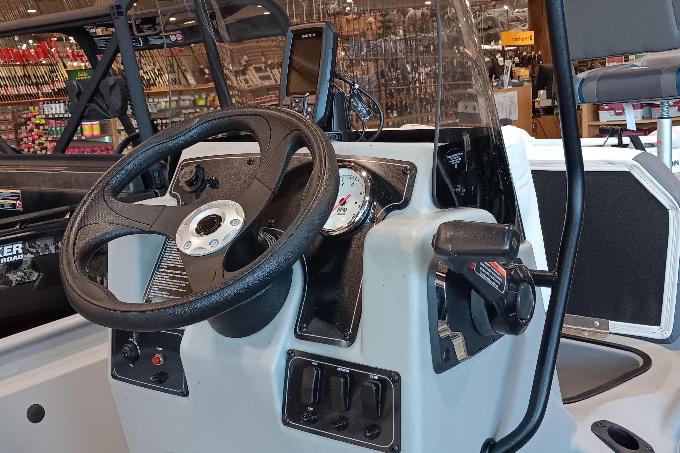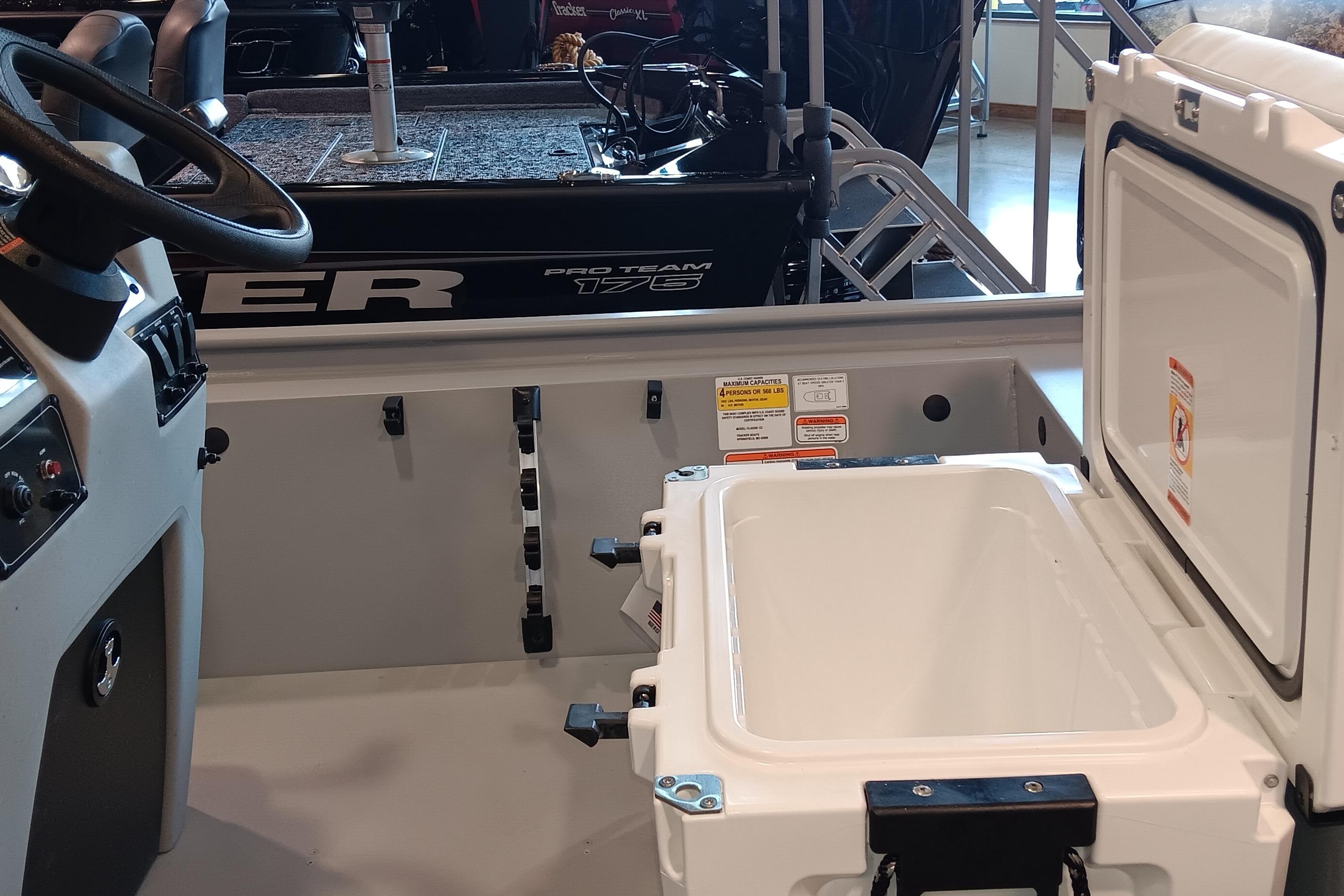 The TRACKER® Classic CC is the newest edition to the historical Classic lineup. Featuring 15-gal aerated livewell ensuring your catch stays fresh. Its molded one-piece construction with rounded corners allows for easy cleanup and added protection for your catch. The Minn Kota® Riptide® Maxxum® 12V trolling motor delivers 55 lbs. of thrust with a 52" shaft, providing reliable control on the water. The one-piece rotomolded console includes a tinted windscreen, drink holder, and 12V outlet, while the forward console seat offers padded comfort and storage. Five rod holders and a Garmin® STRIKER™ 4 fishfinder with GPS and CHIRP transducer enhance your fishing experience. Inside, there are two pedestal seat bases, elevated bow and aft casting decks with storage, a 94-qt. bow storage tub, and a padded 50-qt. cooler. Built with durable DIAMOND COAT™ powdercoat and all-welded aluminum construction, this boat offers unmatched strength and longevity. A custom-fit single-axle trailer completes this rugged, high-performance package.