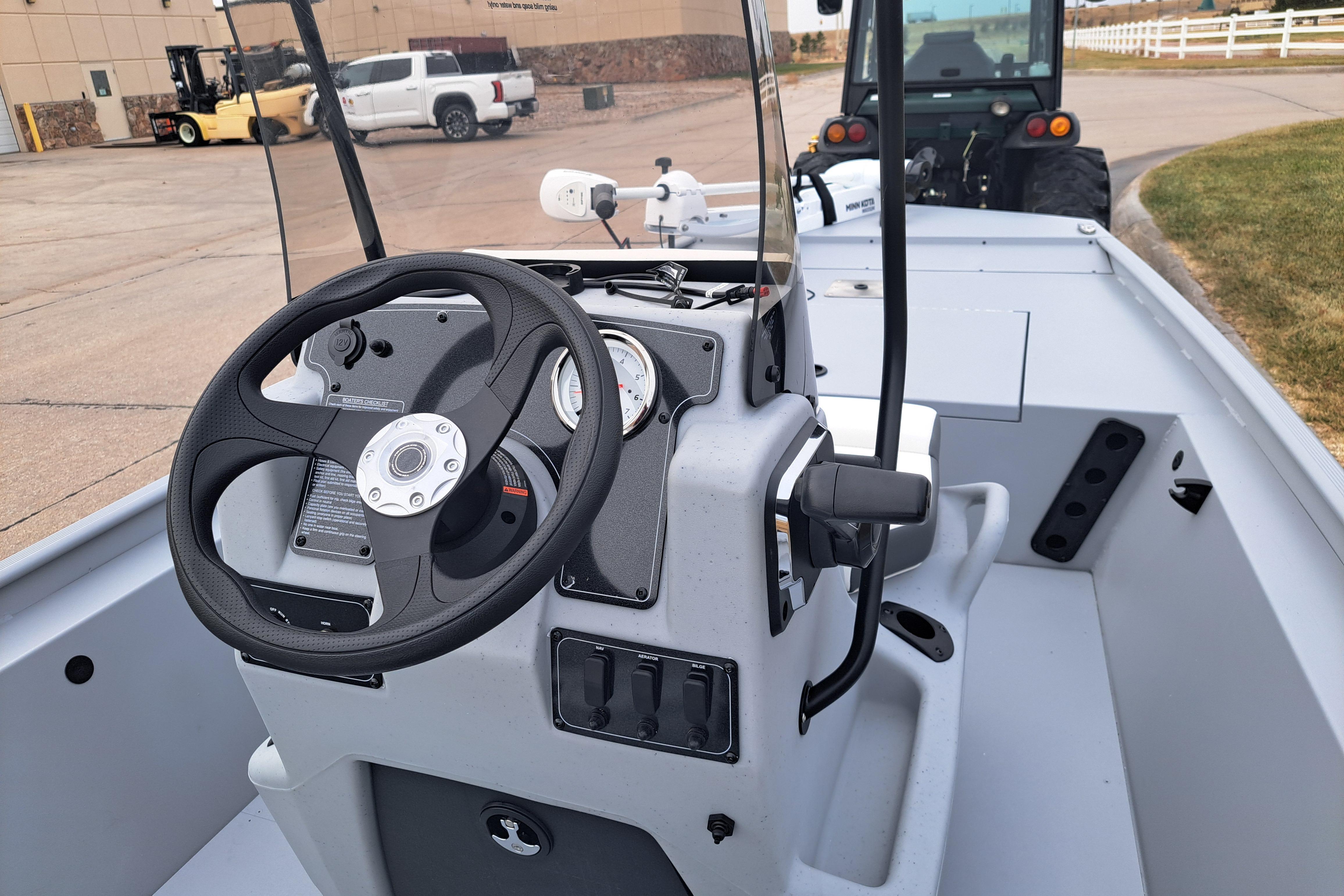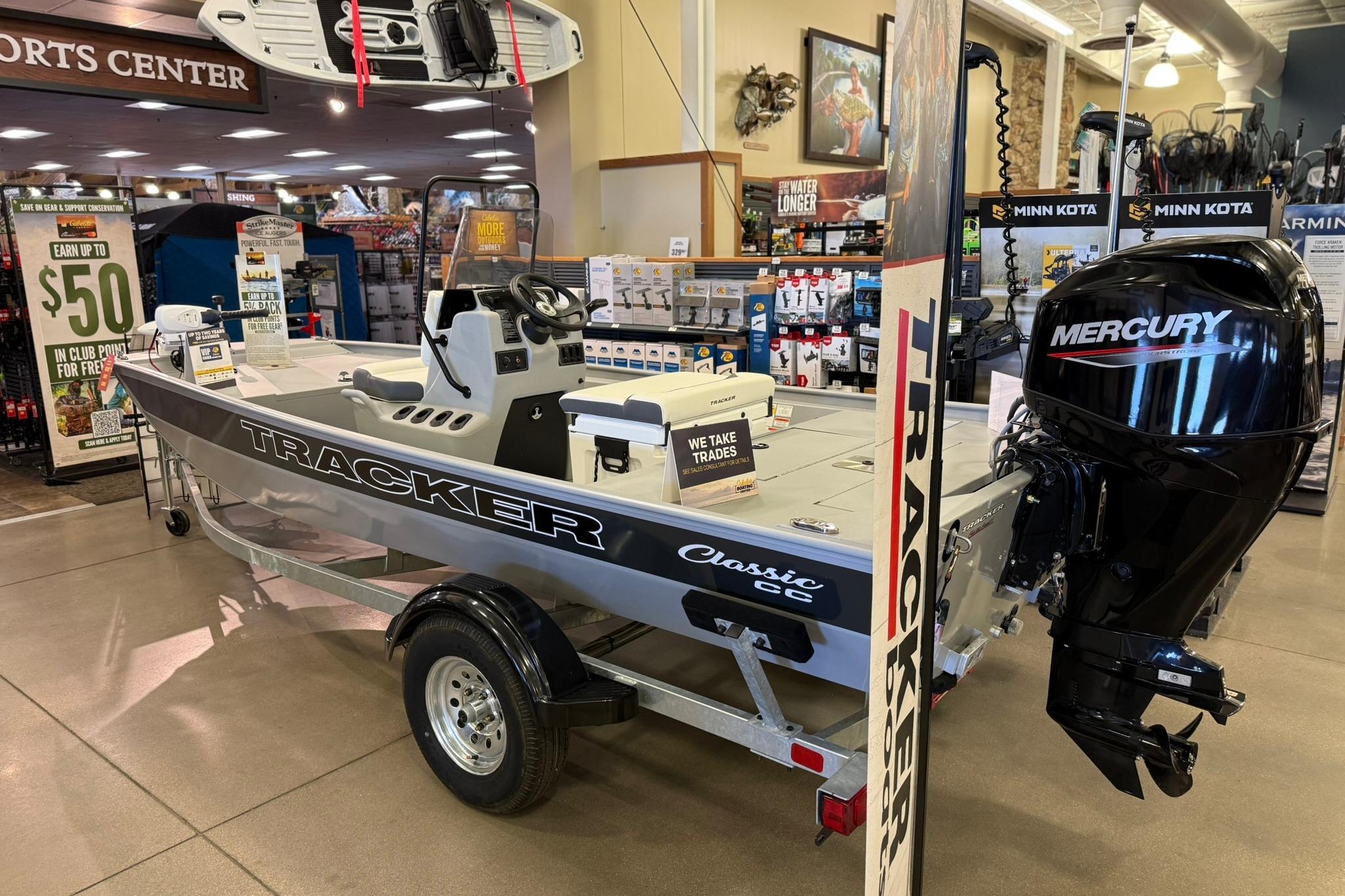 The TRACKER® Classic CC is the newest edition to the historical Classic lineup. Featuring 15-gal aerated livewell ensuring your catch stays fresh. Its molded one-piece construction with rounded corners allows for easy cleanup and added protection for your catch. The Minn Kota® Riptide® Maxxum® 12V trolling motor delivers 55 lbs. of thrust with a 52" shaft, providing reliable control on the water. The one-piece rotomolded console includes a tinted windscreen, drink holder, and 12V outlet, while the forward console seat offers padded comfort and storage. Five rod holders and a Garmin® STRIKER™ 4 fishfinder with GPS and CHIRP transducer enhance your fishing experience. Inside, there are two pedestal seat bases, elevated bow and aft casting decks with storage, a 94-qt. bow storage tub, and a padded 50-qt. cooler. Built with durable DIAMOND COAT™ powdercoat and all-welded aluminum construction, this boat offers unmatched strength and longevity. A custom-fit single-axle trailer completes this rugged, high-performance package.