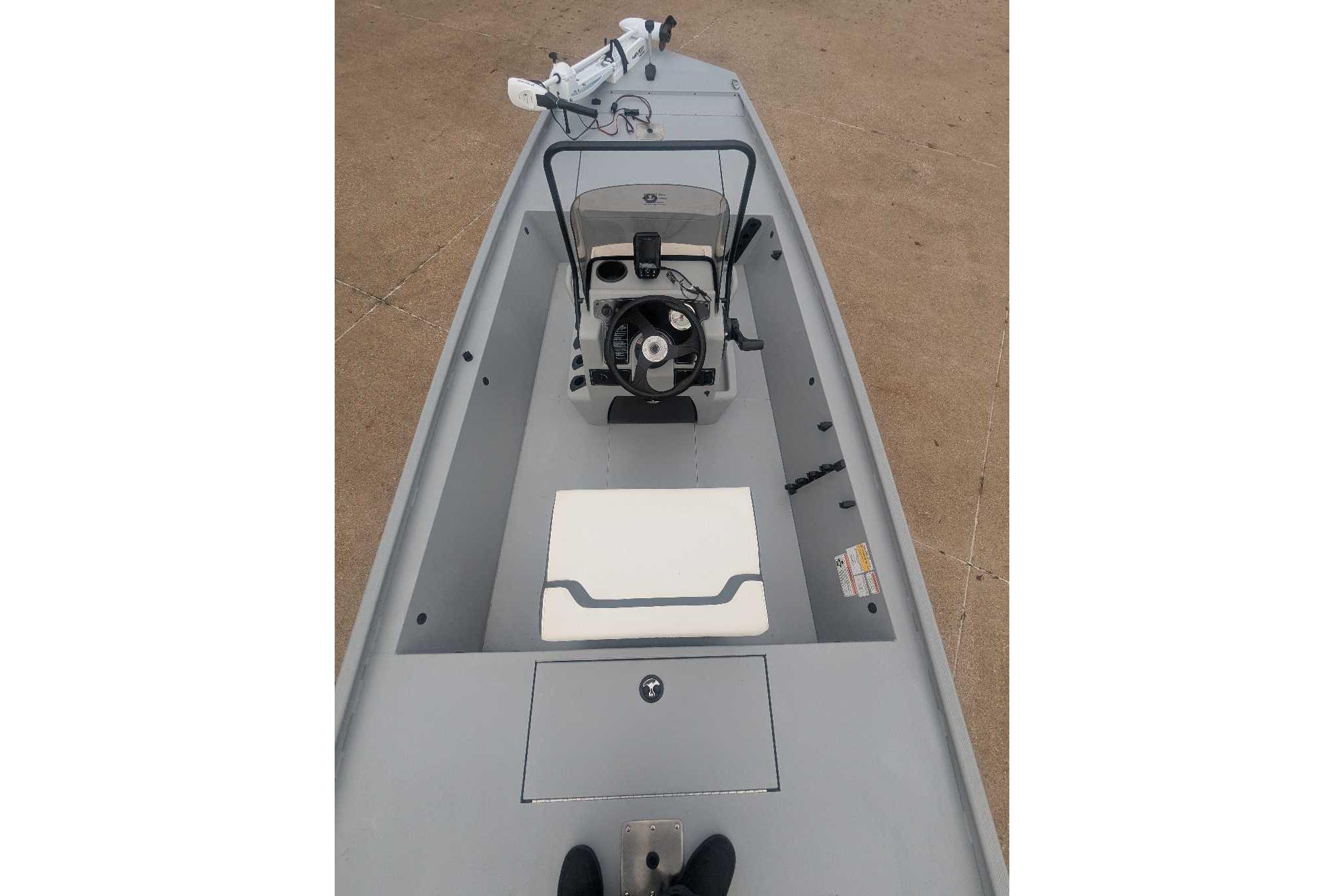 • Rugged all-welded, 2-piece .100-gauge aluminum hull w/pressed-in strakes & chines for structural strength & handling