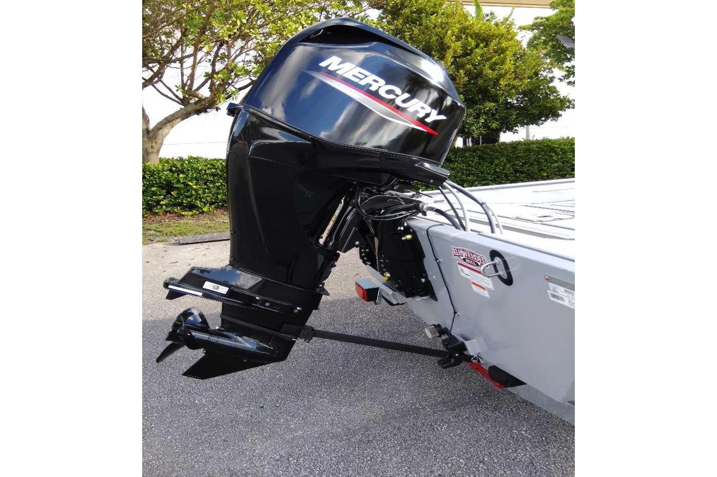 • Robotically welded, all-aluminum box-beam transom w/corner braces welded-in to unitize & strengthen the hull