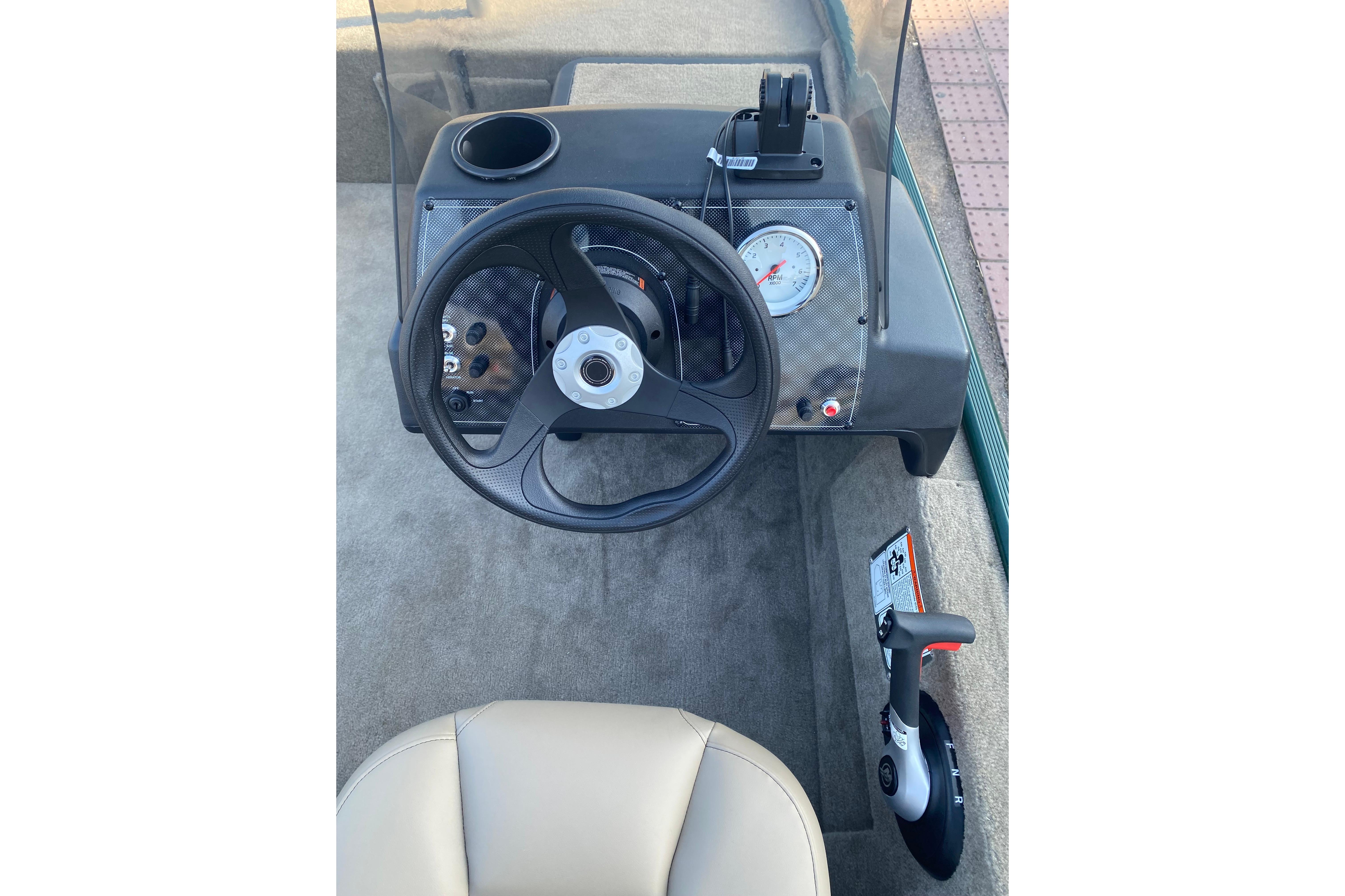 • 1-piece rotomolded console w/tinted windscreen, integrated livewell, drink holder & 12V outlet