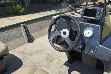 • 1-piece rotomolded console w/tinted windscreen, integrated livewell, drink holder & 12V outlet