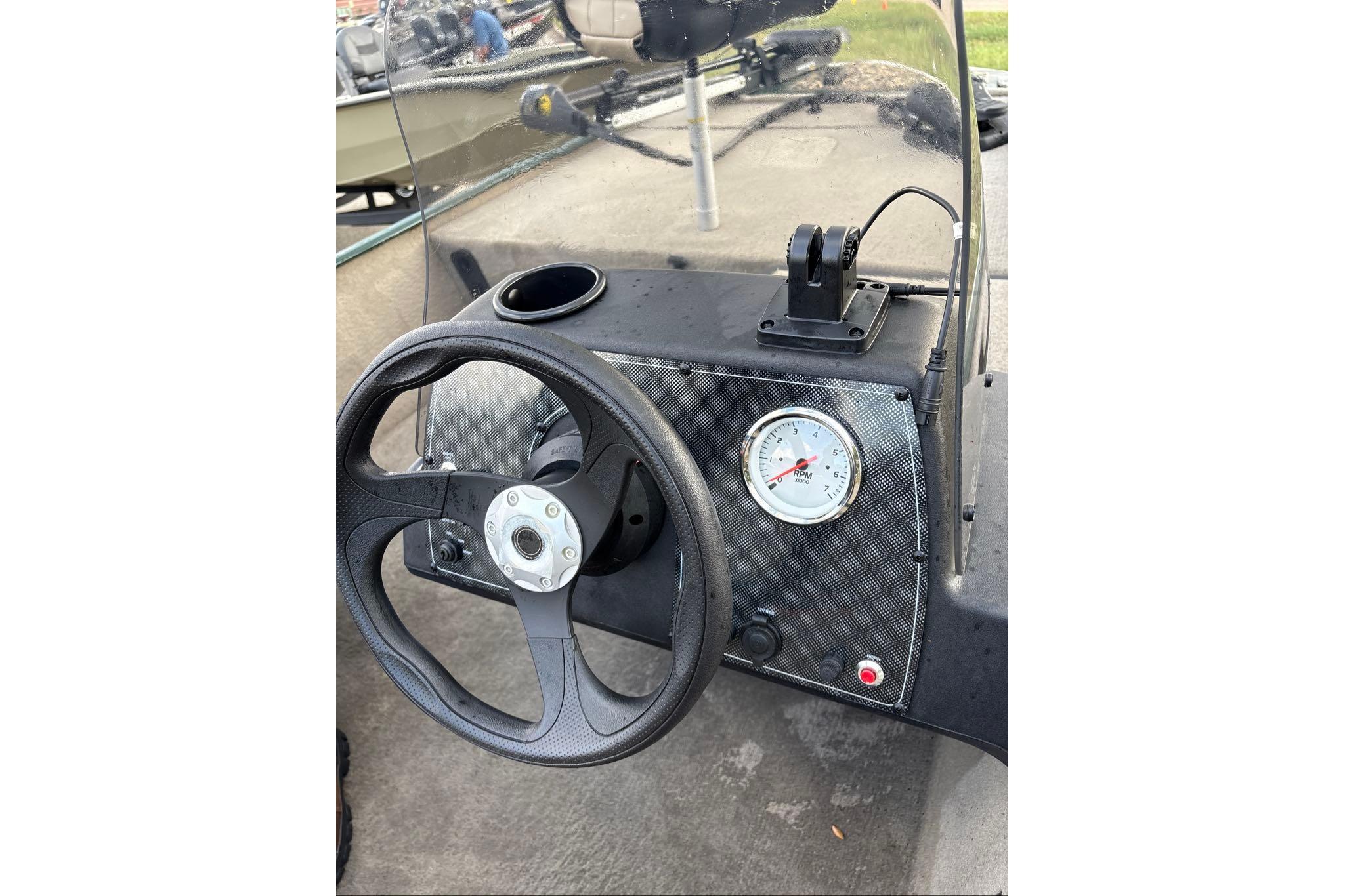• 1-piece rotomolded console w/tinted windscreen, integrated livewell, drink holder & 12V outlet