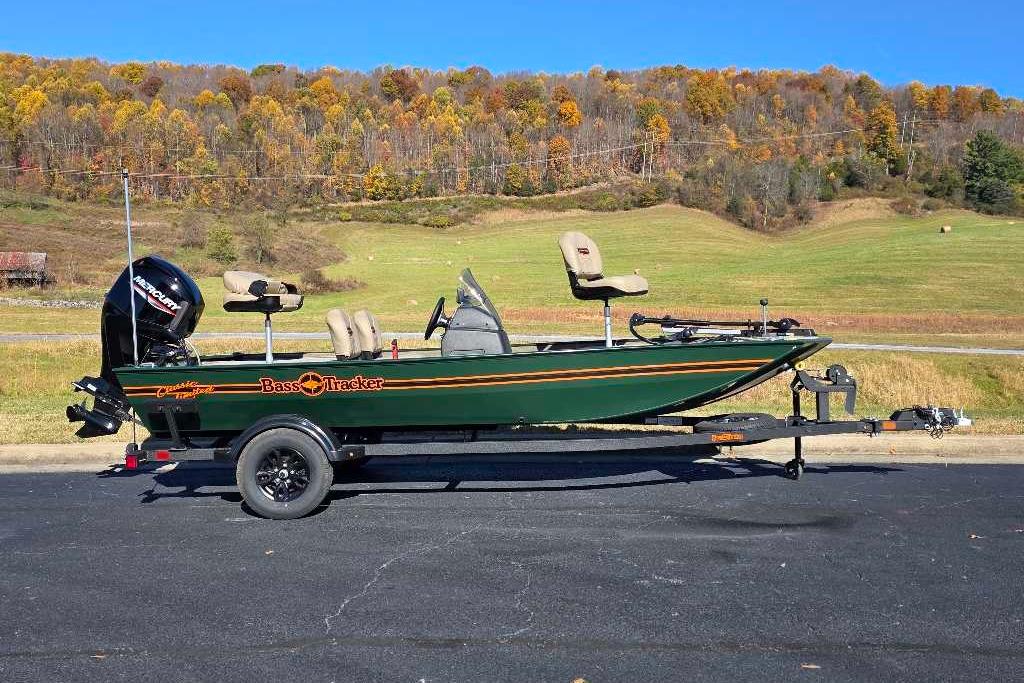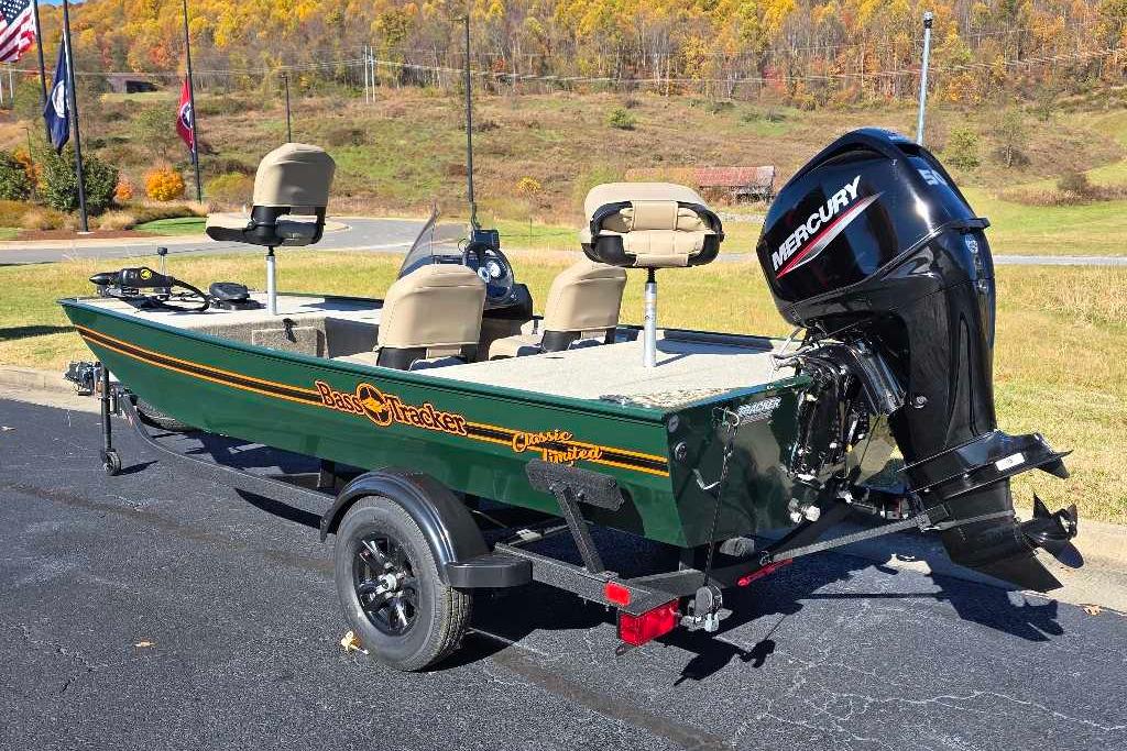 The BASS TRACKER CLASSIC Limited Edition enhances the best value in fishing boats with luxurious, eye-catching features. Its Army Green DIAMONDCOAT™ powder coat finish offers both striking appearance and proven durability, maintaining a long-lasting shine. The boat is equipped with 13-inch black trailer wheels fitted with premium radial tires, complemented by a matching spare. Inside, the Limited Edition boasts an upgraded fishing setup, including a Lowrance® Hook5 Reveal color GPS fishfinder. To complete this exclusive package, it features Limited Edition floor mats, decals, and a custom deck stripe. BASS TRACKER is dedicated to delivering industry-leading value to anglers and families, and with the introduction of the all-new BASS TRACKER CLASSIC Limited Edition, you receive exceptional value along with a distinctive feature set that’s destined to become a classic.