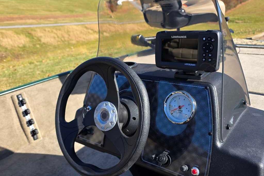 • 1-piece rotomolded console w/tinted windscreen, integrated livewell, drink holder & 12V outlet