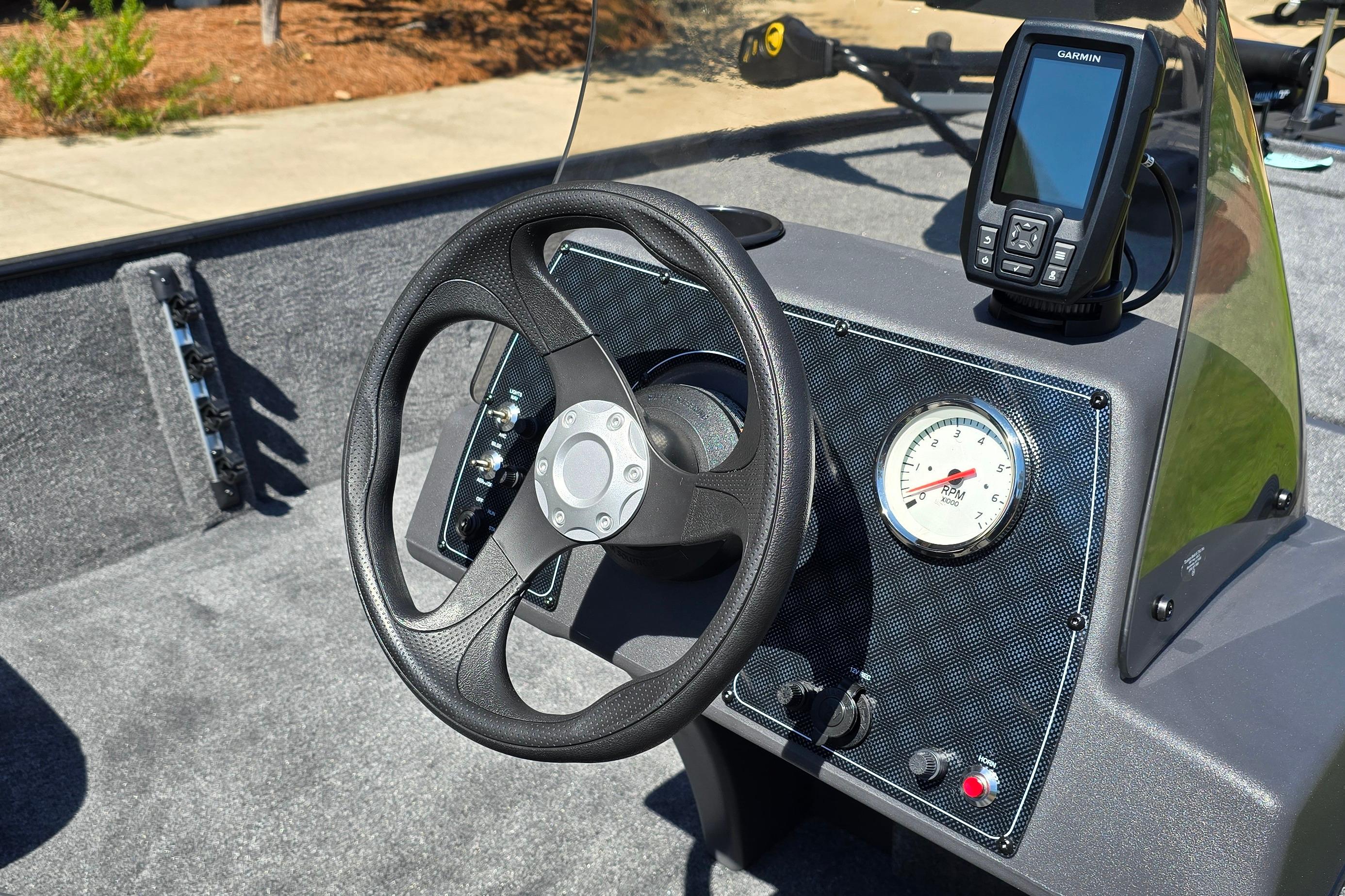 • 1-piece rotomolded console w/tinted windscreen, integrated livewell, drink holder & 12V outlet