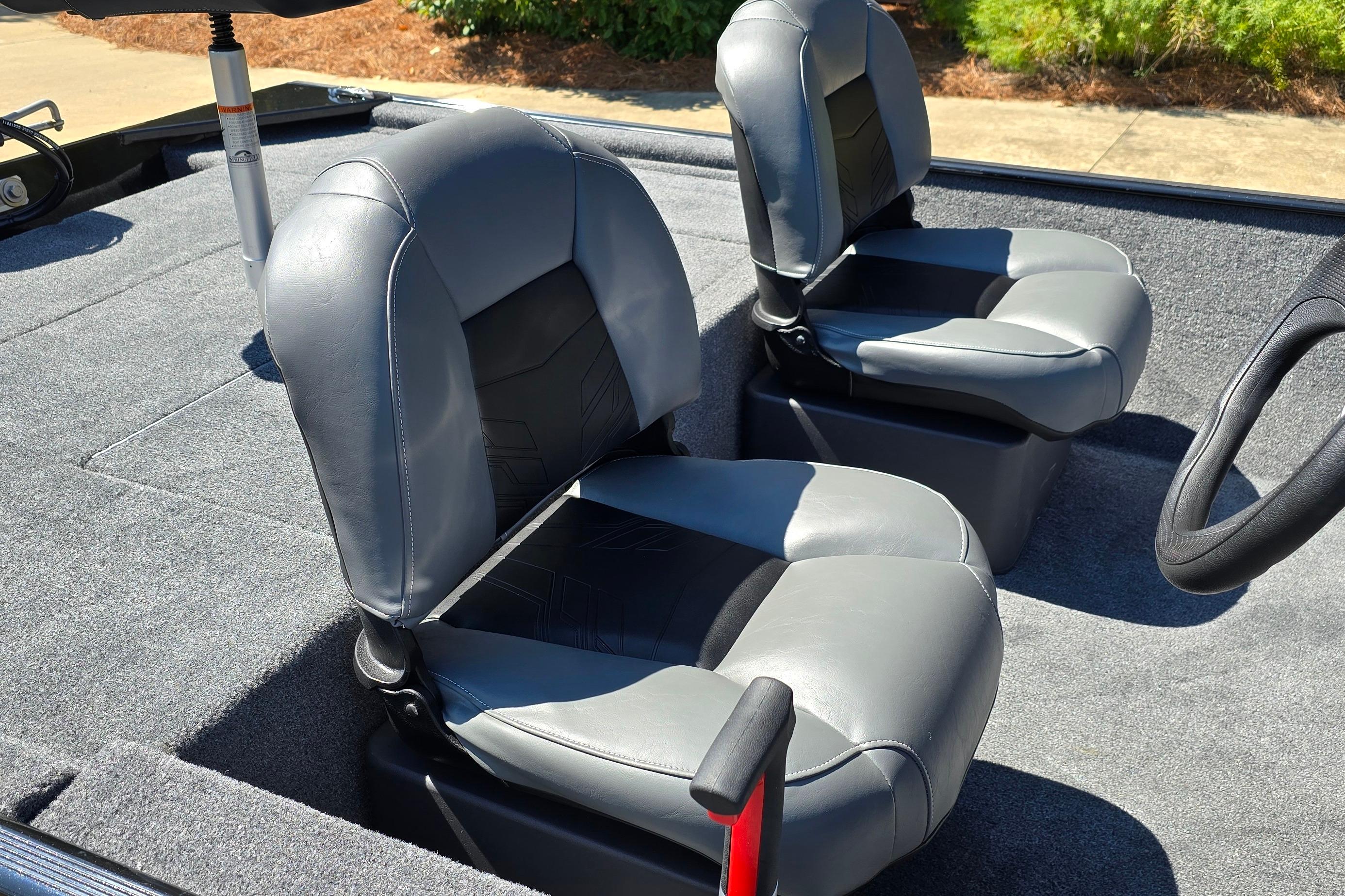 • 2 folding fishing seats w/contoured hinges & snap-off cushions