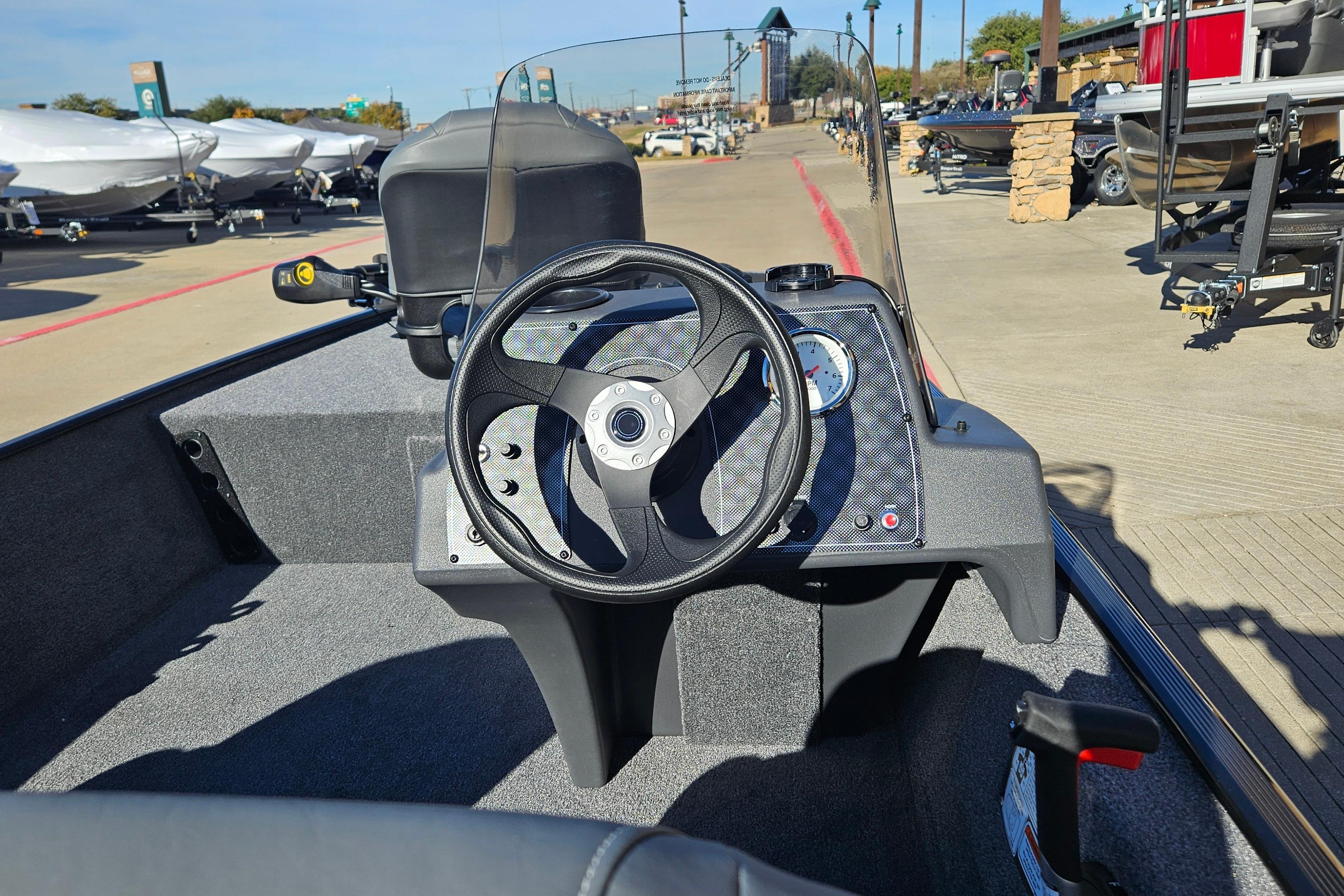 • 1-piece rotomolded console w/tinted windscreen, integrated livewell, drink holder & 12V outlet