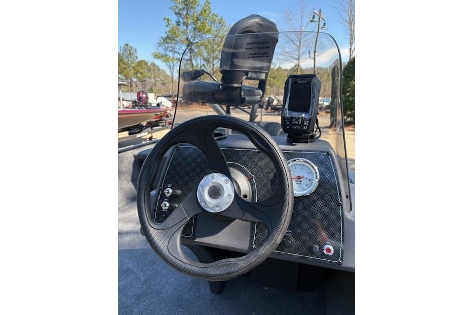 • 1-piece rotomolded console w/tinted windscreen, integrated livewell, drink holder & 12V outlet