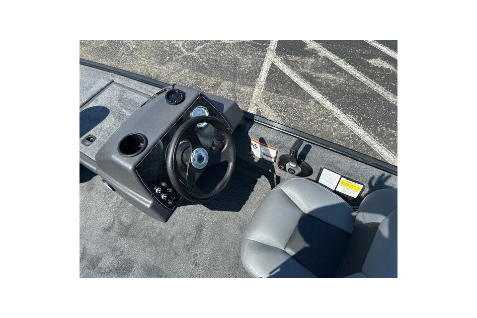 • 1-piece rotomolded console w/tinted windscreen, integrated livewell, drink holder & 12V outlet