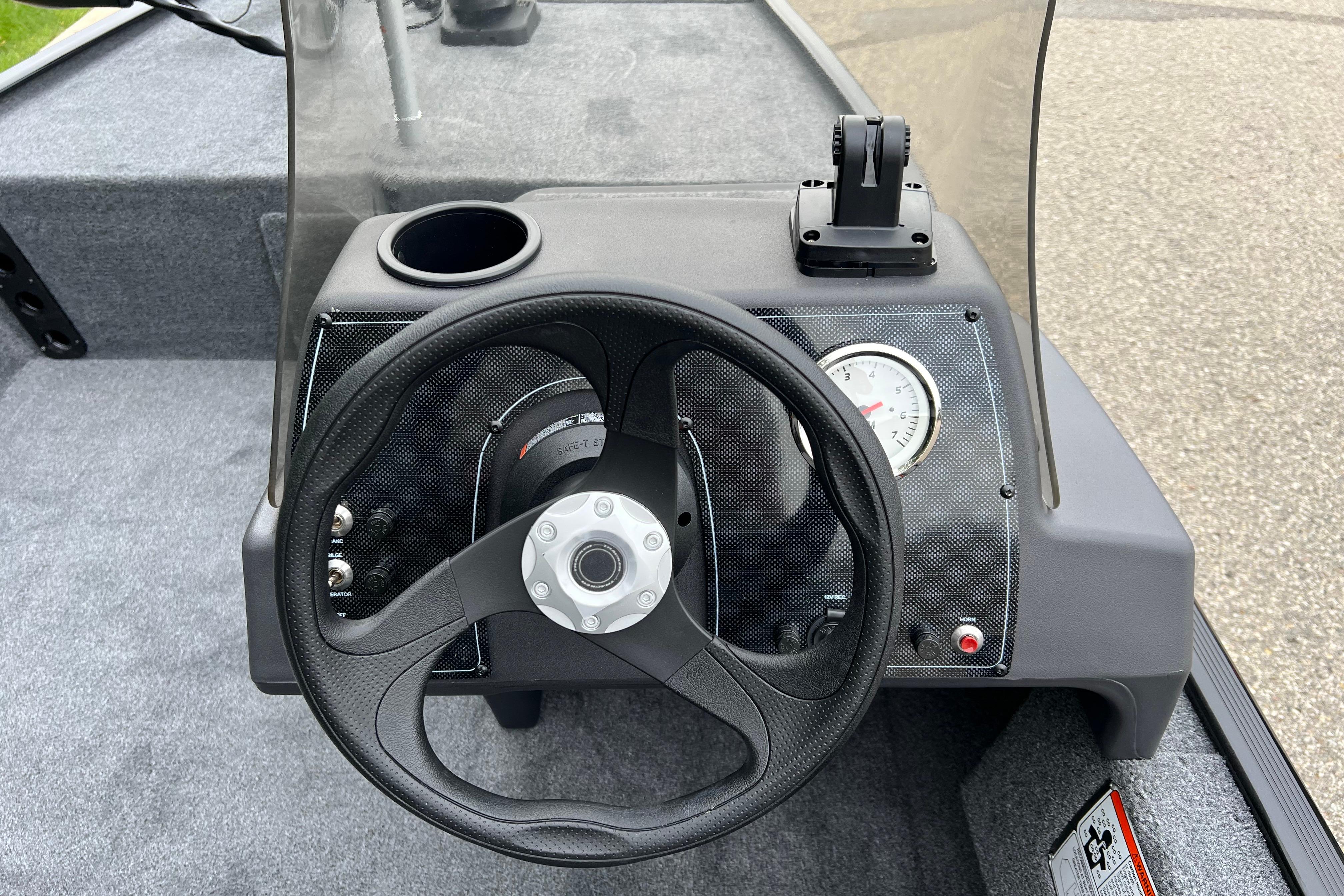• 1-piece rotomolded console w/tinted windscreen, integrated livewell, drink holder & 12V outlet
