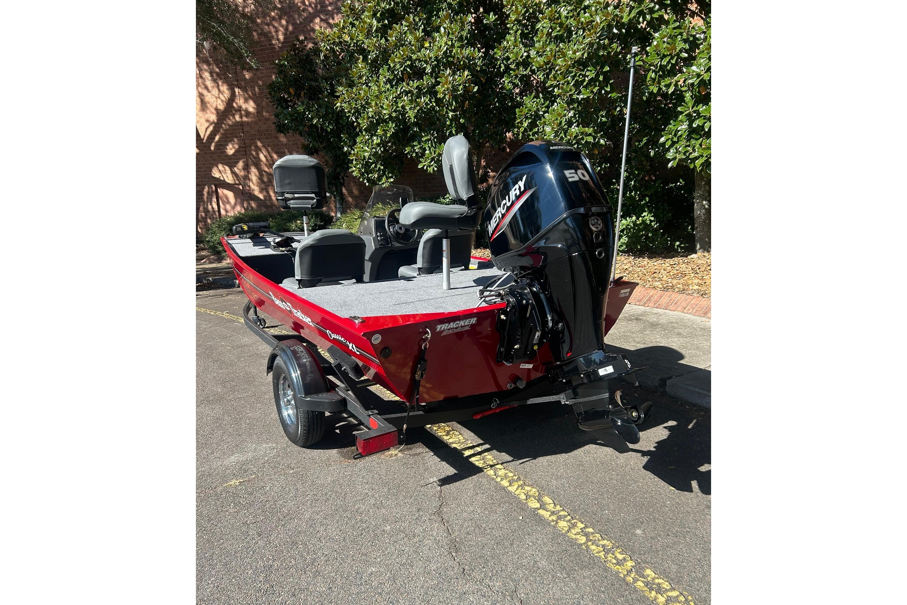 Step back in time to the original TRACKER boats with the TRACKER® BASS TRACKER® Classic XL, a value-packed, all-welded aluminum vessel designed to bring back the essence of simpler days on the water. This timeless boat is more than just a vessel; it's a gateway to lasting memories. The Classic XL comes fully equipped with essential features, including a Minn Kota® Edge trolling motor, Garmin® Striker 4 color fishfinder, and a custom-matched GALVASHIELD® Impact trailer. With these components in place, you can effortlessly head straight to the lake, ready to embark on your next fishing adventure. The convenience and functionality provided by these accessories ensure that your time on the water is optimized for enjoyment and success. As with every TRACKER boat, the BASS TRACKER Classic XL is backed by the renowned TRACKER PROMISE, offering the best factory warranty in aluminum boats. This assurance provides you with the peace of mind that your investment is protected by industry-leading support and service. Embrace tradition, create new memories, and experience the legacy of the TRACKER BASS TRACKER Classic XL.
