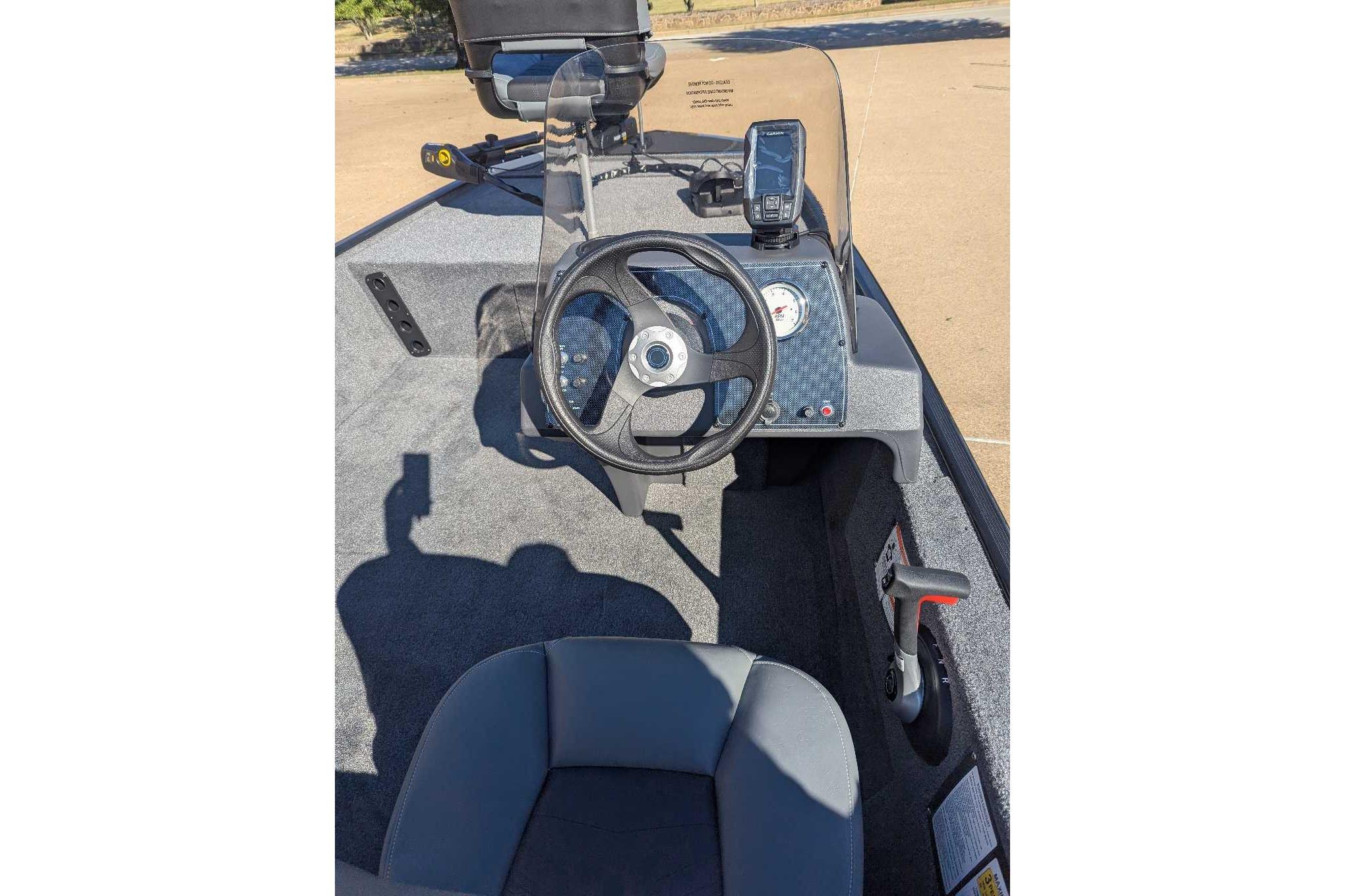 • 1-piece rotomolded console w/tinted windscreen, integrated livewell, drink holder & 12V outlet