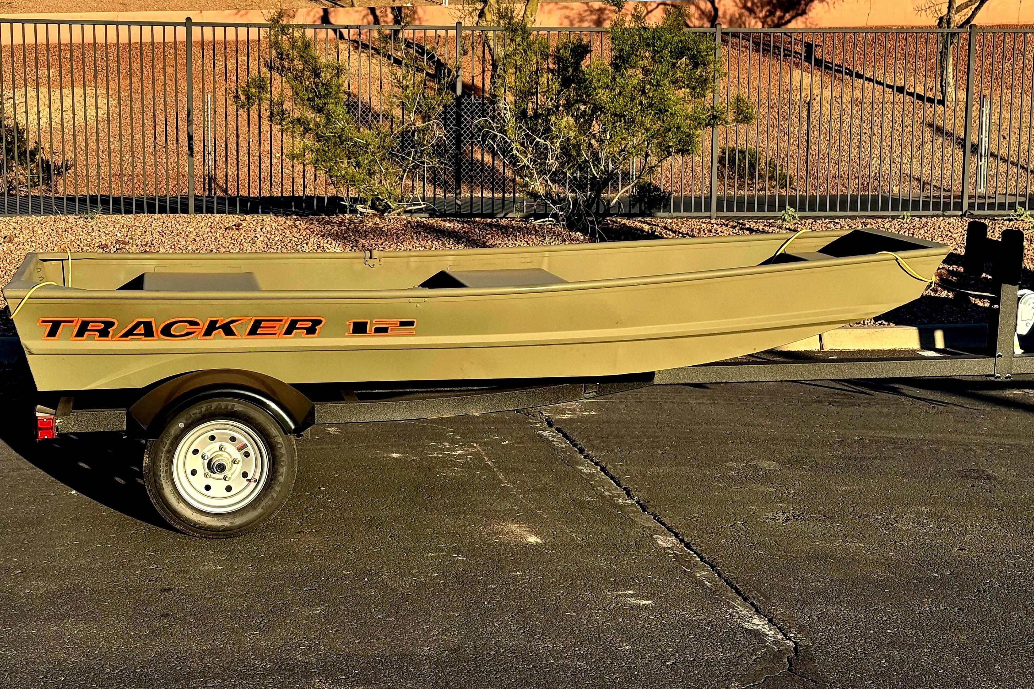 Step aboard the TRACKER GRIZZLY 12 jon boat, with the standout feature of the TRACKER GRIZZLY 12 jon boat lies in its all-welded hull design, setting it apart with unmatched durability and structural integrity. Unlike boats with riveted hulls that may develop leaks or weak points over time, the all-welded construction of the GRIZZLY 12 forms a solid and seamless foundation. This sturdy design not only prolongs the boat's lifespan but also enhances its performance on the water, ensuring a smooth and stable ride across diverse conditions.