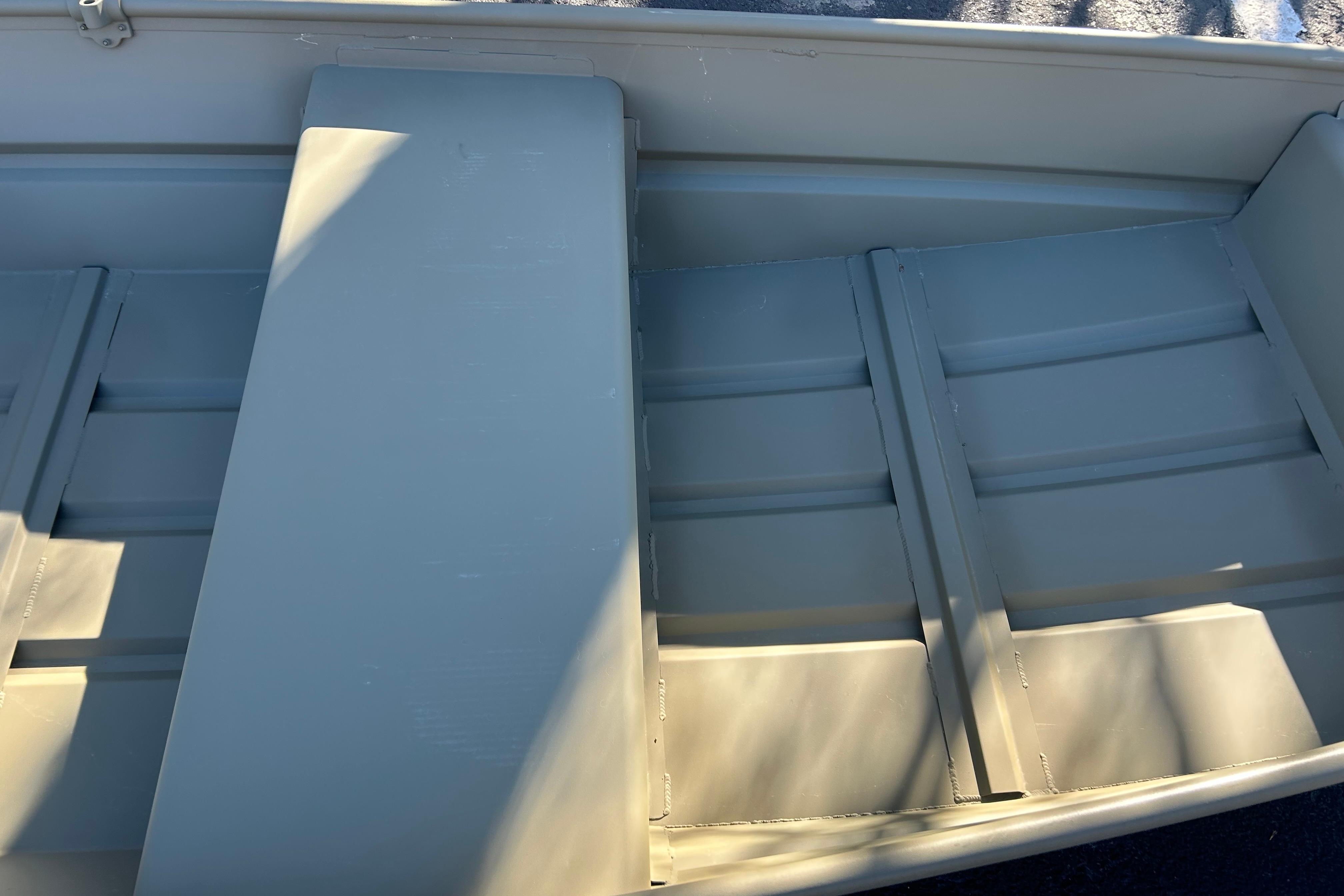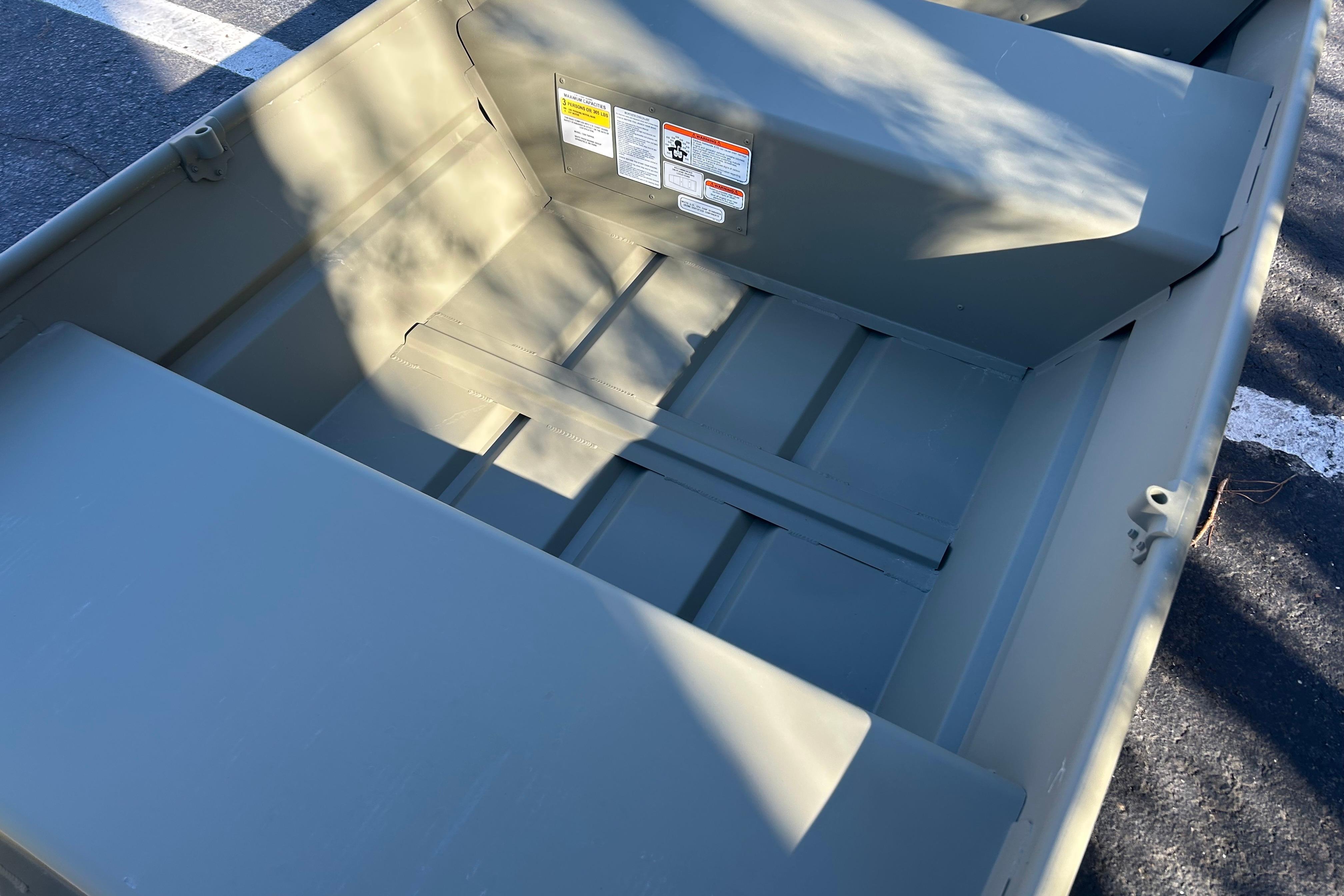 Step aboard the TRACKER GRIZZLY 12 jon boat, with the standout feature of the TRACKER GRIZZLY 12 jon boat lies in its all-welded hull design, setting it apart with unmatched durability and structural integrity. Unlike boats with riveted hulls that may develop leaks or weak points over time, the all-welded construction of the GRIZZLY 12 forms a solid and seamless foundation. This sturdy design not only prolongs the boat's lifespan but also enhances its performance on the water, ensuring a smooth and stable ride across diverse conditions.