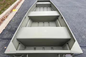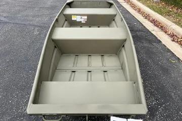 Step aboard the TRACKER GRIZZLY 12 jon boat, with the standout feature of the TRACKER GRIZZLY 12 jon boat lies in its all-welded hull design, setting it apart with unmatched durability and structural integrity. Unlike boats with riveted hulls that may develop leaks or weak points over time, the all-welded construction of the GRIZZLY 12 forms a solid and seamless foundation. This sturdy design not only prolongs the boat's lifespan but also enhances its performance on the water, ensuring a smooth and stable ride across diverse conditions.