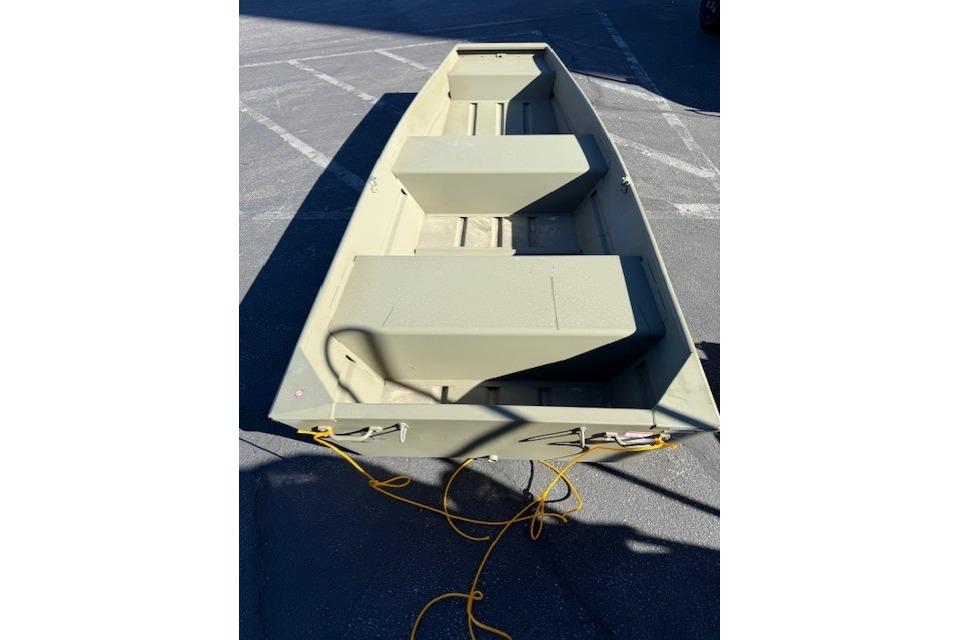 Step aboard the TRACKER GRIZZLY 12 jon boat, with the standout feature of the TRACKER GRIZZLY 12 jon boat lies in its all-welded hull design, setting it apart with unmatched durability and structural integrity. Unlike boats with riveted hulls that may develop leaks or weak points over time, the all-welded construction of the GRIZZLY 12 forms a solid and seamless foundation. This sturdy design not only prolongs the boat's lifespan but also enhances its performance on the water, ensuring a smooth and stable ride across diverse conditions.