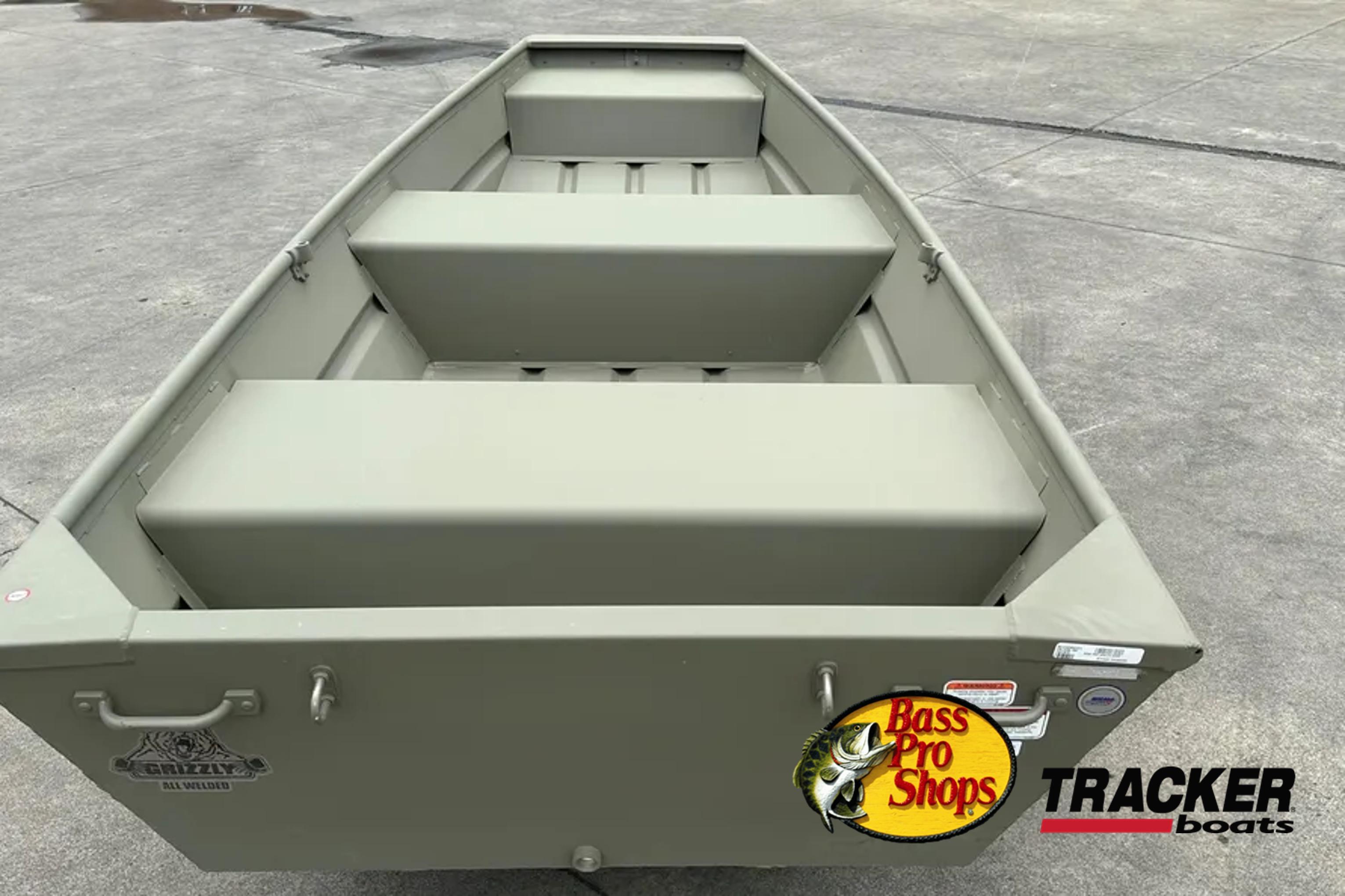 Step aboard the TRACKER GRIZZLY 12 jon boat, with the standout feature of the TRACKER GRIZZLY 12 jon boat lies in its all-welded hull design, setting it apart with unmatched durability and structural integrity. Unlike boats with riveted hulls that may develop leaks or weak points over time, the all-welded construction of the GRIZZLY 12 forms a solid and seamless foundation. This sturdy design not only prolongs the boat's lifespan but also enhances its performance on the water, ensuring a smooth and stable ride across diverse conditions.