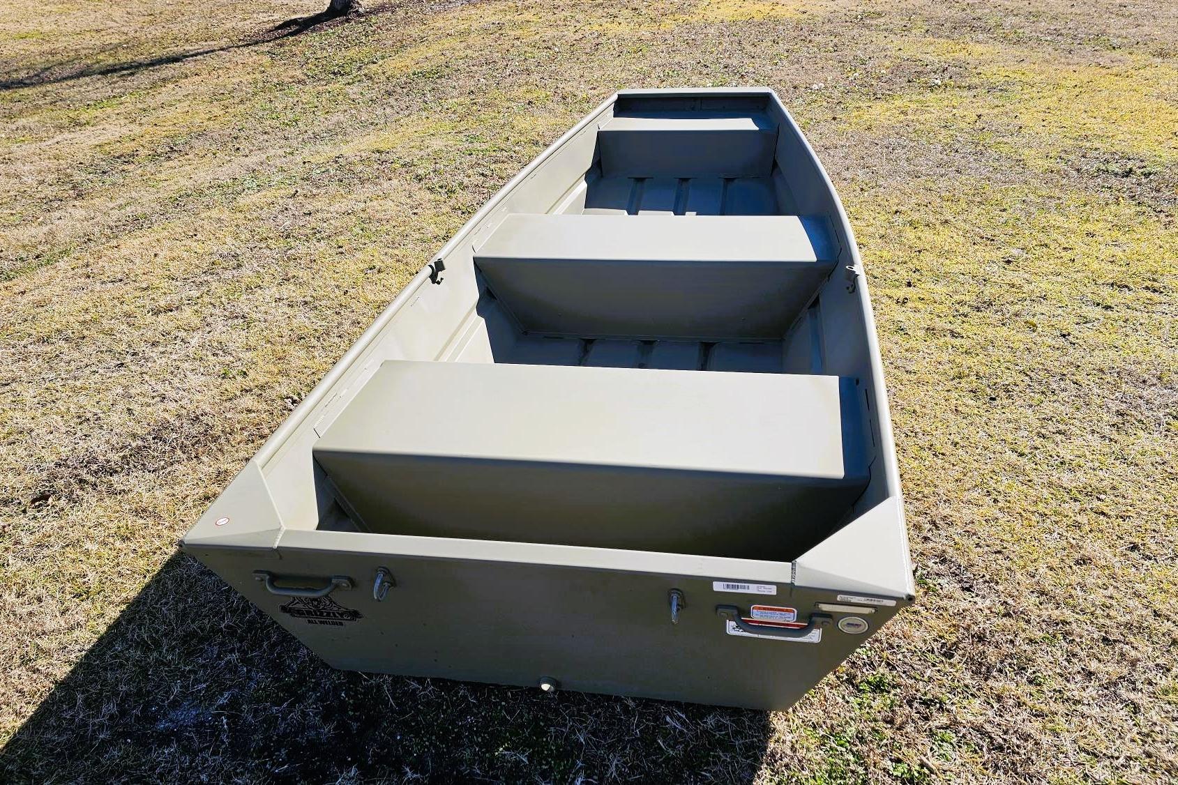 Step aboard the TRACKER GRIZZLY 12 jon boat, with the standout feature of the TRACKER GRIZZLY 12 jon boat lies in its all-welded hull design, setting it apart with unmatched durability and structural integrity. Unlike boats with riveted hulls that may develop leaks or weak points over time, the all-welded construction of the GRIZZLY 12 forms a solid and seamless foundation. This sturdy design not only prolongs the boat's lifespan but also enhances its performance on the water, ensuring a smooth and stable ride across diverse conditions.