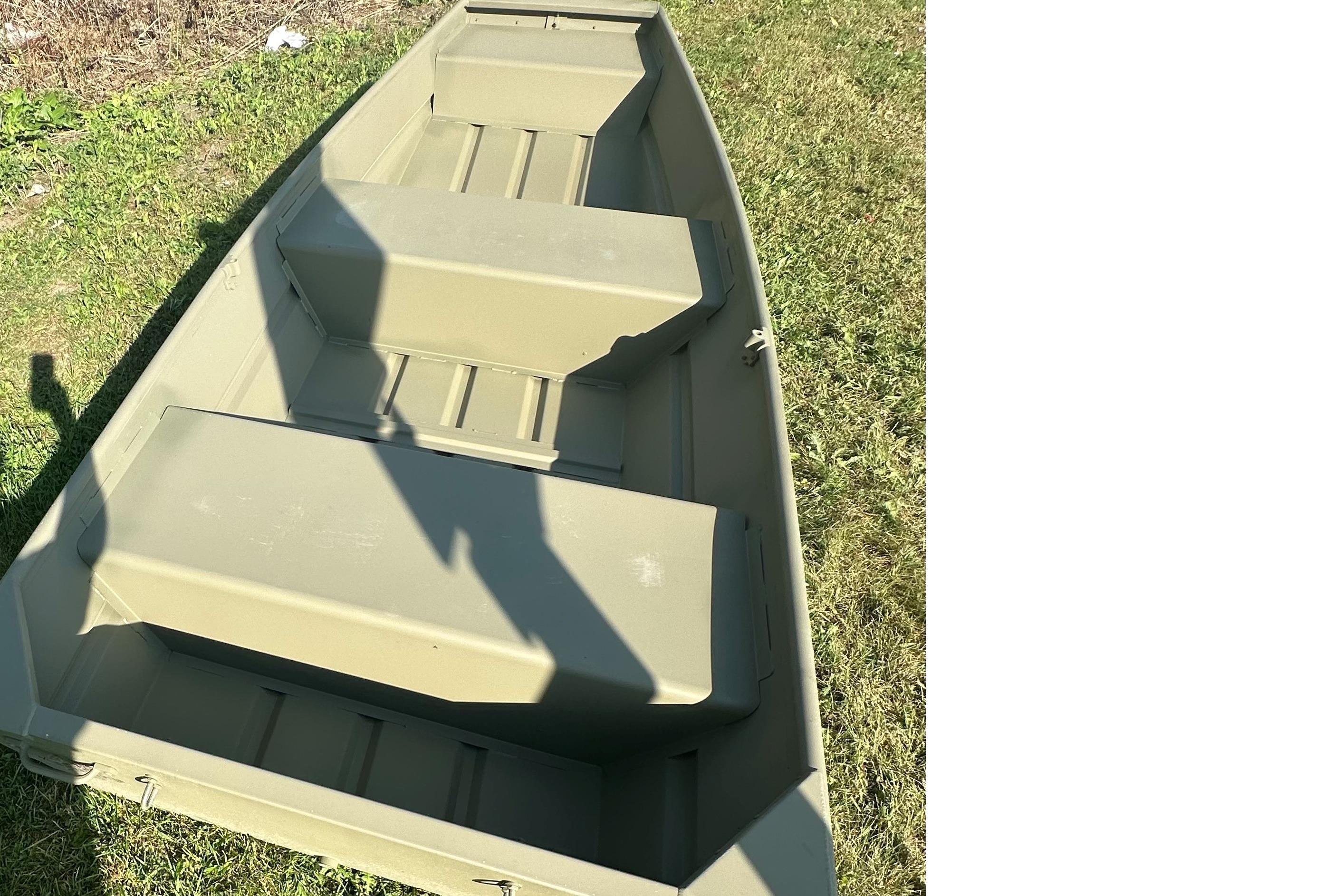 Step aboard the TRACKER GRIZZLY 12 jon boat, with the standout feature of the TRACKER GRIZZLY 12 jon boat lies in its all-welded hull design, setting it apart with unmatched durability and structural integrity. Unlike boats with riveted hulls that may develop leaks or weak points over time, the all-welded construction of the GRIZZLY 12 forms a solid and seamless foundation. This sturdy design not only prolongs the boat's lifespan but also enhances its performance on the water, ensuring a smooth and stable ride across diverse conditions.