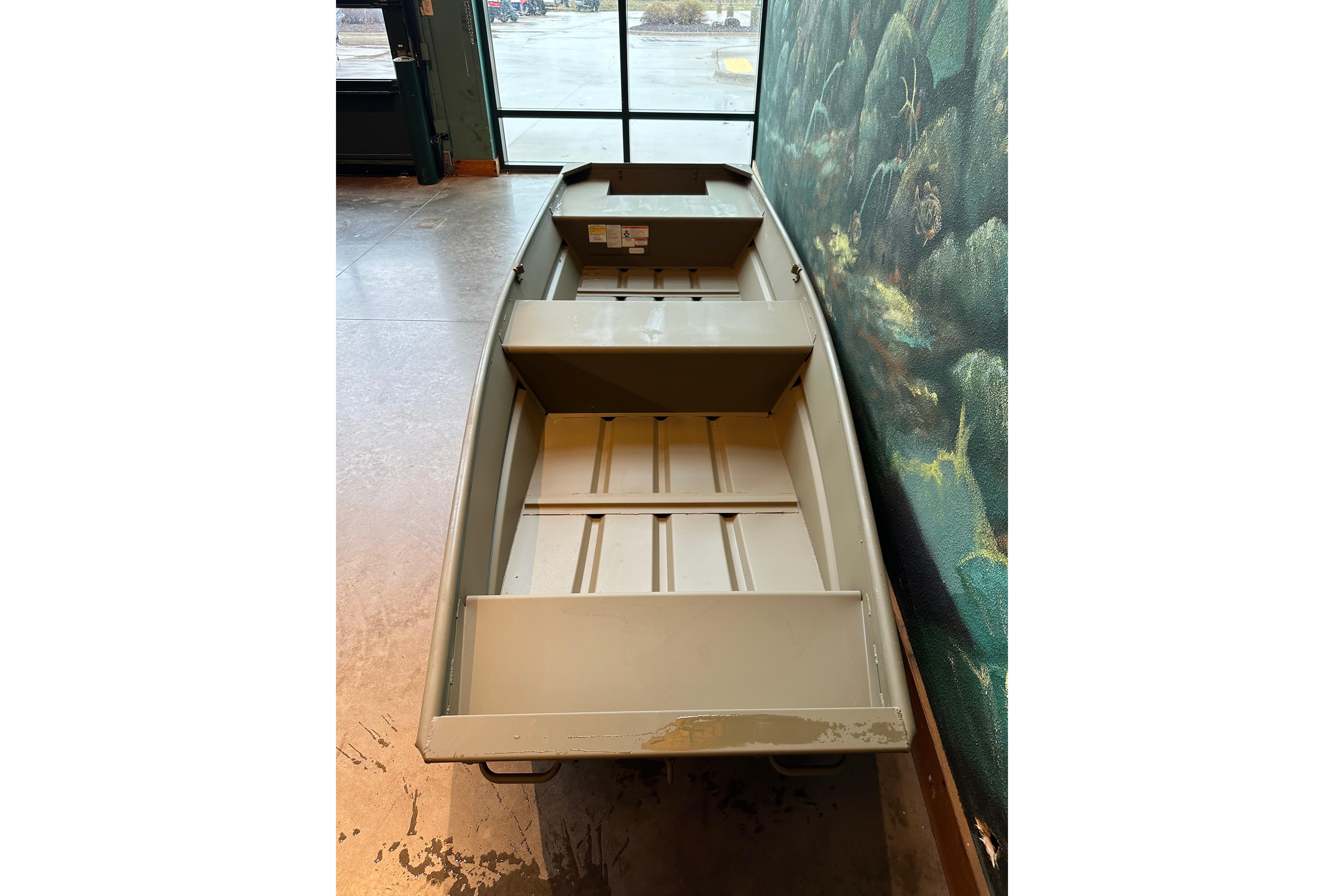Introducing the TRACKER GRIZZLY 14 jon boat, an agile aluminum vessel crafted to comfortably host three anglers. Emphasizing the all-welded hull design, the TRACKER GRIZZLY 14 sets a new standard in durability and performance. Unlike riveted hulls that may develop vulnerabilities over time, the all-welded construction of the GRIZZLY 14 ensures a solid and seamless framework, enhancing longevity and reliability. Whether tackling challenging waters or cruising leisurely, the all-welded hull design guarantees a secure and enjoyable boating experience, making the GRIZZLY 14 a top choice for adventurous anglers. Reinforced with aft foam boxes and corner braces at the transom, this boat is engineered to thrive in rugged terrains, whether embarking on a dusty trail to your secluded fishing haven or enjoying a serene day on the water. The GRIZZLY 14 features center and aft bench seats, complemented by a spacious bow platform, offering ample space for gear storage and ensuring a cozy fishing experience for all occupants.