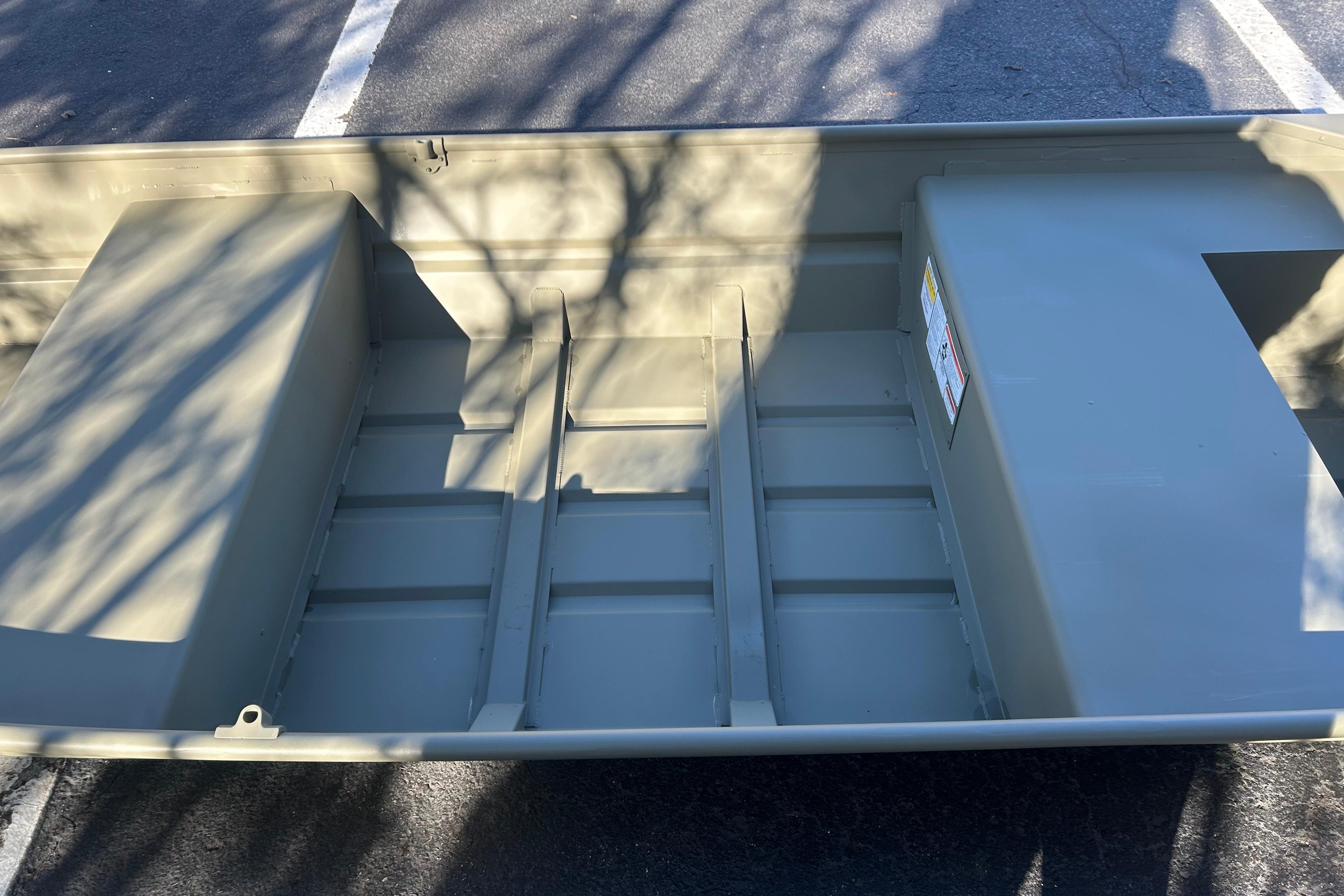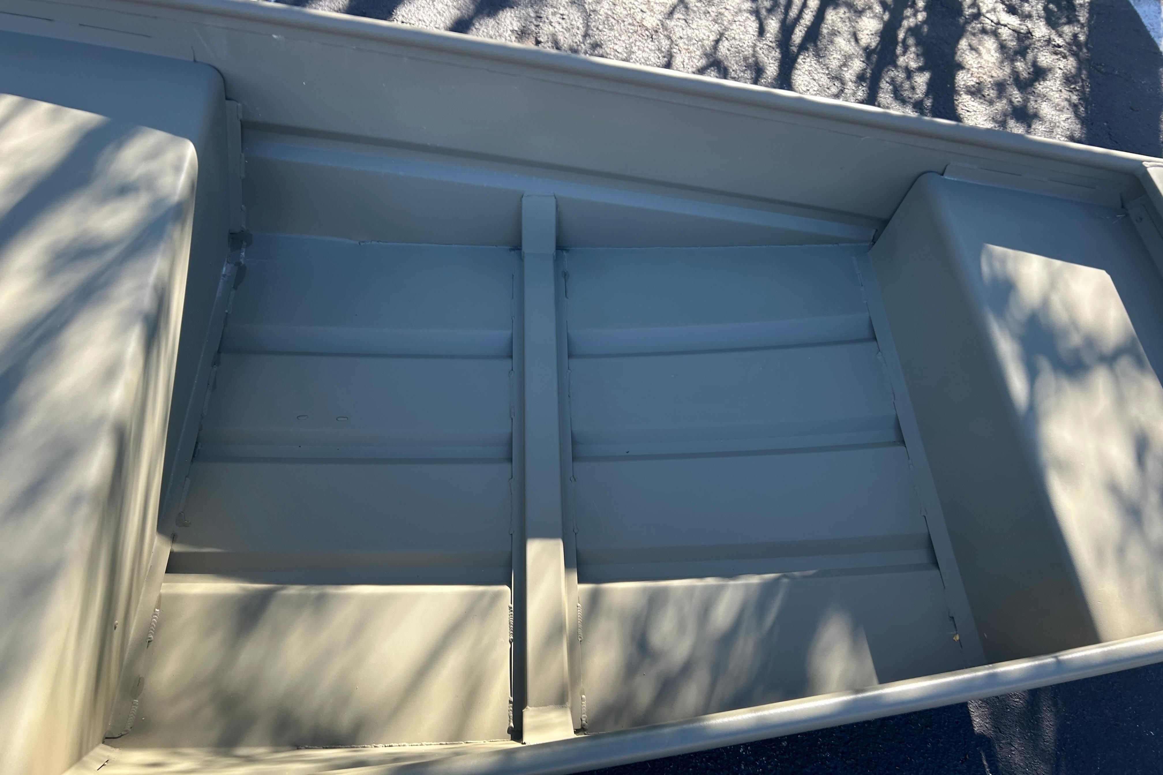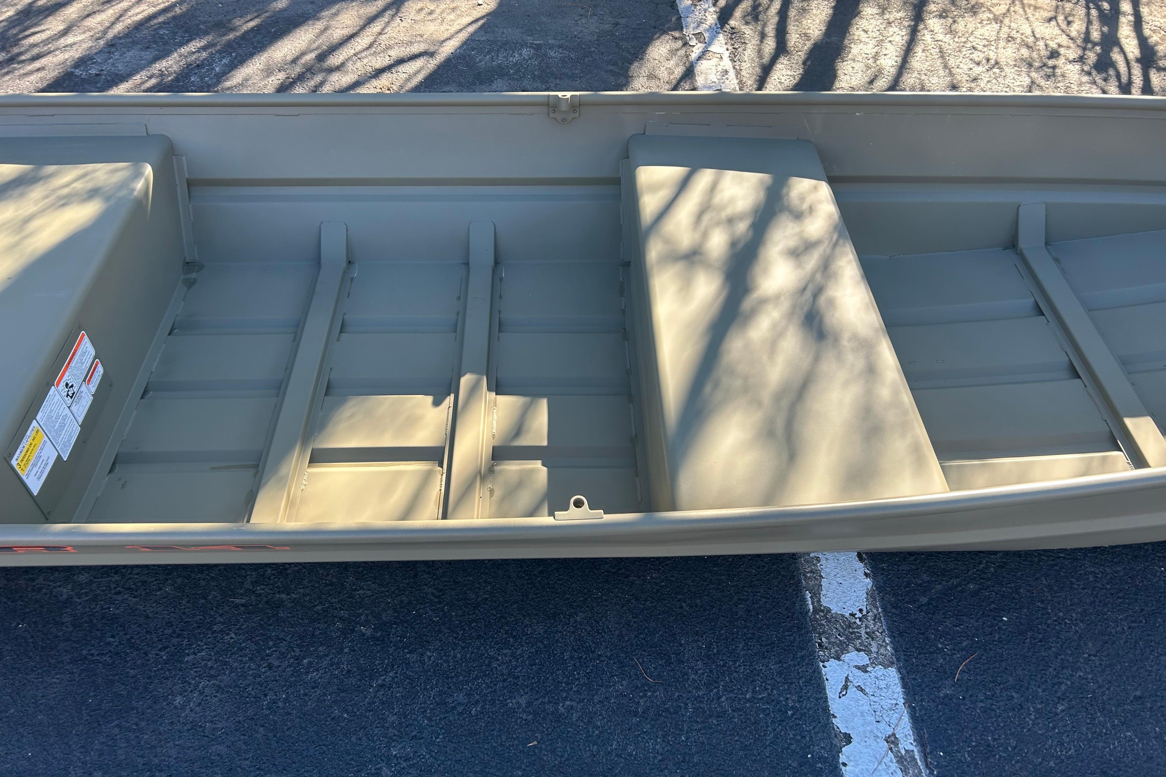 Introducing the TRACKER GRIZZLY 14 jon boat, an agile aluminum vessel crafted to comfortably host three anglers. Emphasizing the all-welded hull design, the TRACKER GRIZZLY 14 sets a new standard in durability and performance. Unlike riveted hulls that may develop vulnerabilities over time, the all-welded construction of the GRIZZLY 14 ensures a solid and seamless framework, enhancing longevity and reliability. Whether tackling challenging waters or cruising leisurely, the all-welded hull design guarantees a secure and enjoyable boating experience, making the GRIZZLY 14 a top choice for adventurous anglers. Reinforced with aft foam boxes and corner braces at the transom, this boat is engineered to thrive in rugged terrains, whether embarking on a dusty trail to your secluded fishing haven or enjoying a serene day on the water. The GRIZZLY 14 features center and aft bench seats, complemented by a spacious bow platform, offering ample space for gear storage and ensuring a cozy fishing experience for all occupants.
