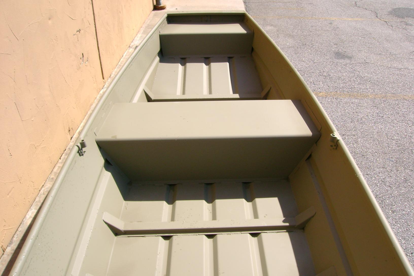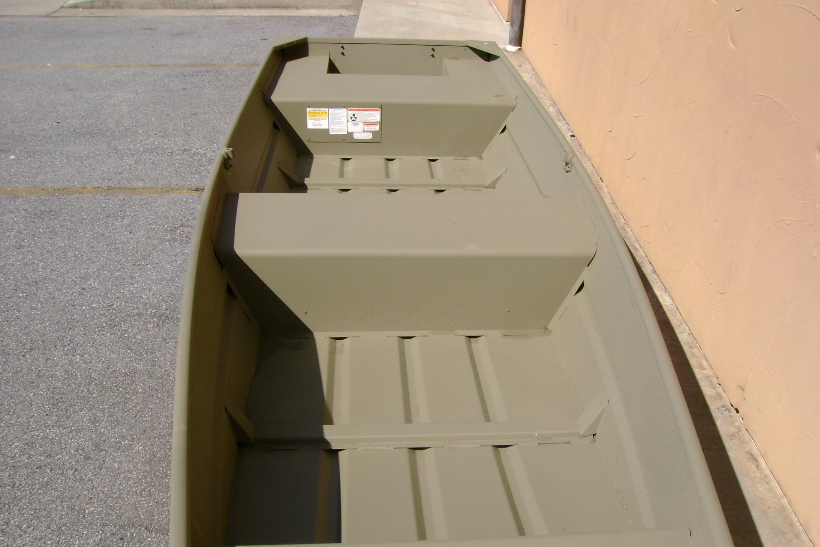 Introducing the TRACKER GRIZZLY 14 jon boat, an agile aluminum vessel crafted to comfortably host three anglers. Emphasizing the all-welded hull design, the TRACKER GRIZZLY 14 sets a new standard in durability and performance. Unlike riveted hulls that may develop vulnerabilities over time, the all-welded construction of the GRIZZLY 14 ensures a solid and seamless framework, enhancing longevity and reliability. Whether tackling challenging waters or cruising leisurely, the all-welded hull design guarantees a secure and enjoyable boating experience, making the GRIZZLY 14 a top choice for adventurous anglers. Reinforced with aft foam boxes and corner braces at the transom, this boat is engineered to thrive in rugged terrains, whether embarking on a dusty trail to your secluded fishing haven or enjoying a serene day on the water. The GRIZZLY 14 features center and aft bench seats, complemented by a spacious bow platform, offering ample space for gear storage and ensuring a cozy fishing experience for all occupants.