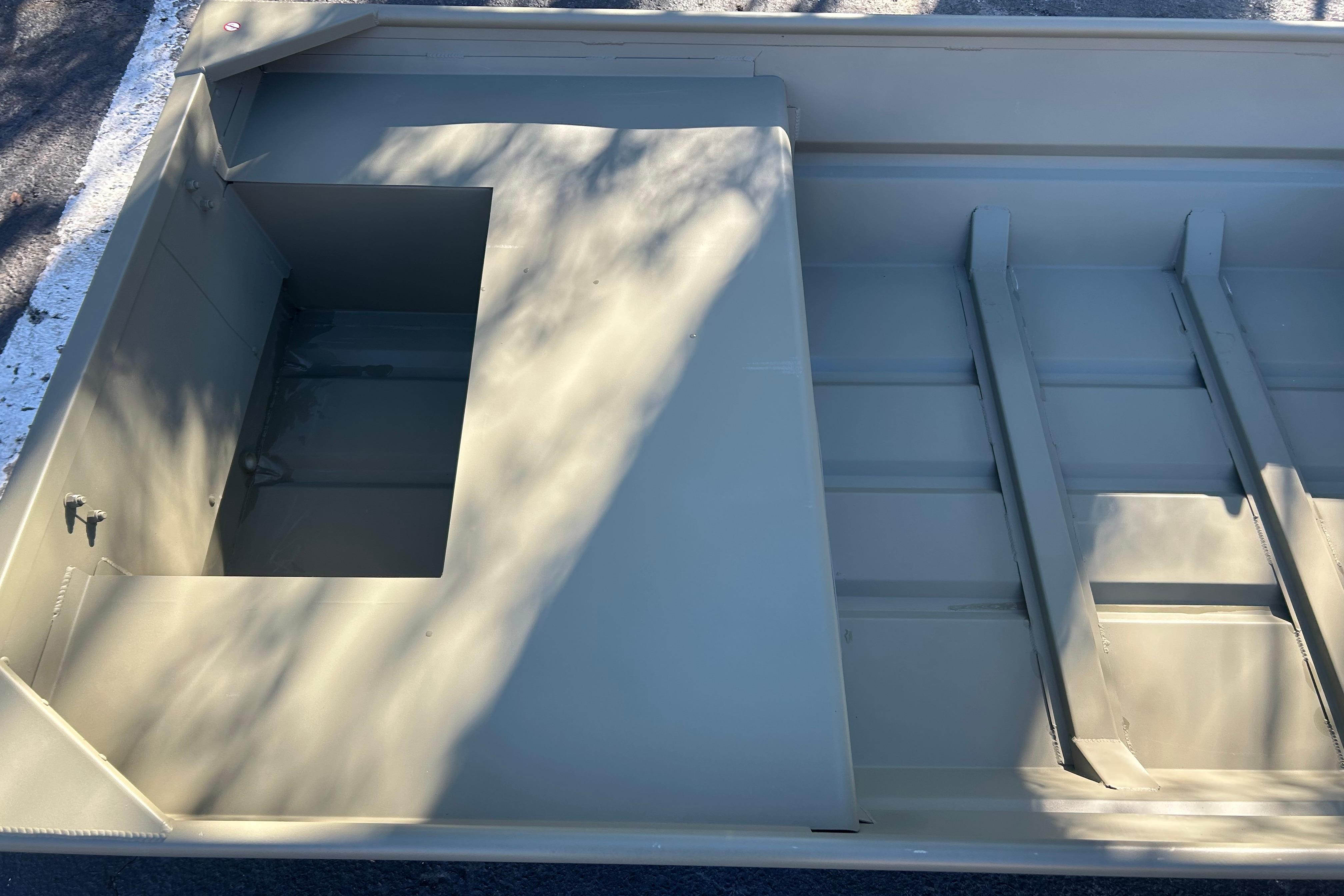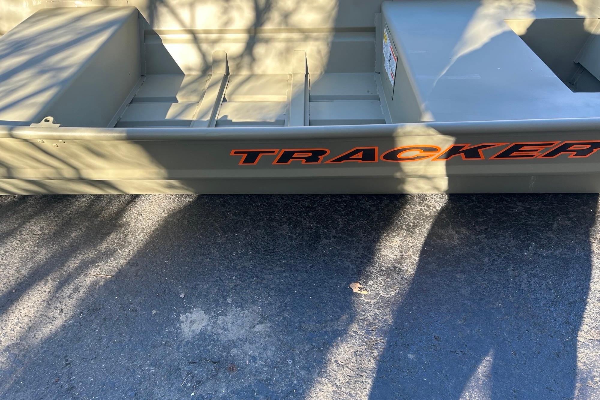 Introducing the TRACKER GRIZZLY 14 jon boat, an agile aluminum vessel crafted to comfortably host three anglers. Emphasizing the all-welded hull design, the TRACKER GRIZZLY 14 sets a new standard in durability and performance. Unlike riveted hulls that may develop vulnerabilities over time, the all-welded construction of the GRIZZLY 14 ensures a solid and seamless framework, enhancing longevity and reliability. Whether tackling challenging waters or cruising leisurely, the all-welded hull design guarantees a secure and enjoyable boating experience, making the GRIZZLY 14 a top choice for adventurous anglers. Reinforced with aft foam boxes and corner braces at the transom, this boat is engineered to thrive in rugged terrains, whether embarking on a dusty trail to your secluded fishing haven or enjoying a serene day on the water. The GRIZZLY 14 features center and aft bench seats, complemented by a spacious bow platform, offering ample space for gear storage and ensuring a cozy fishing experience for all occupants.