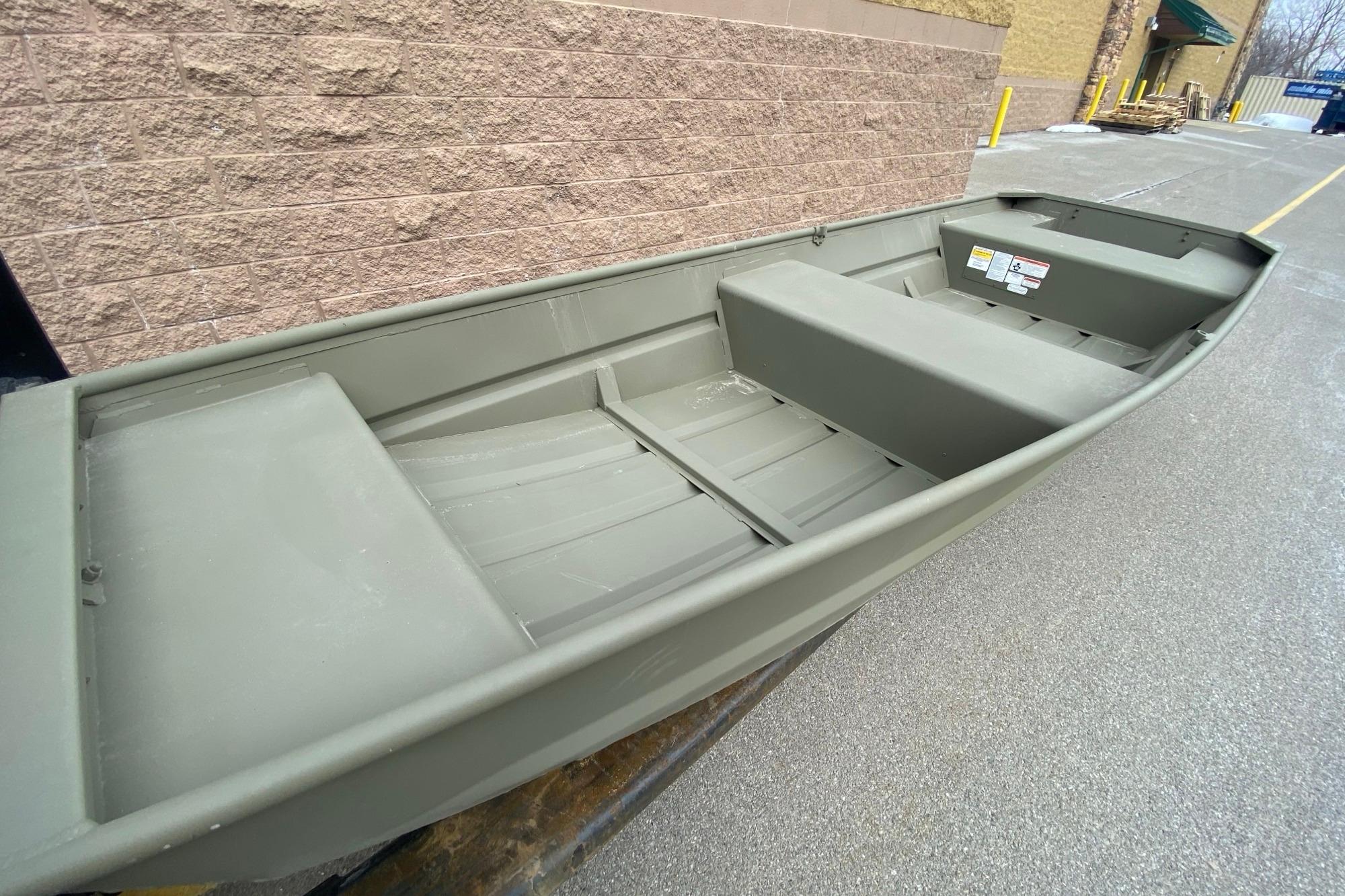 Introducing the TRACKER GRIZZLY 14 jon boat, an agile aluminum vessel crafted to comfortably host three anglers. Emphasizing the all-welded hull design, the TRACKER GRIZZLY 14 sets a new standard in durability and performance. Unlike riveted hulls that may develop vulnerabilities over time, the all-welded construction of the GRIZZLY 14 ensures a solid and seamless framework, enhancing longevity and reliability. Whether tackling challenging waters or cruising leisurely, the all-welded hull design guarantees a secure and enjoyable boating experience, making the GRIZZLY 14 a top choice for adventurous anglers. Reinforced with aft foam boxes and corner braces at the transom, this boat is engineered to thrive in rugged terrains, whether embarking on a dusty trail to your secluded fishing haven or enjoying a serene day on the water. The GRIZZLY 14 features center and aft bench seats, complemented by a spacious bow platform, offering ample space for gear storage and ensuring a cozy fishing experience for all occupants.