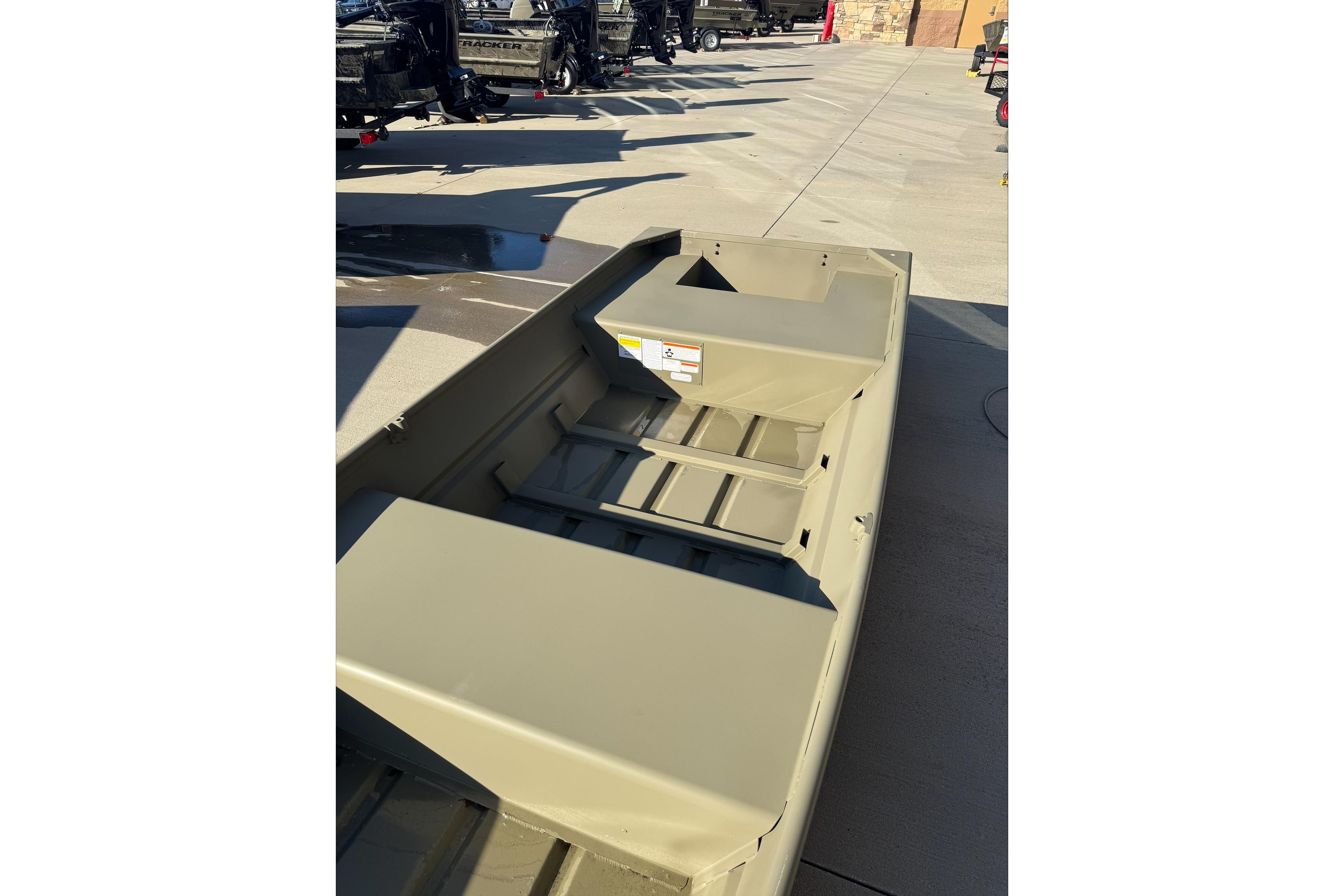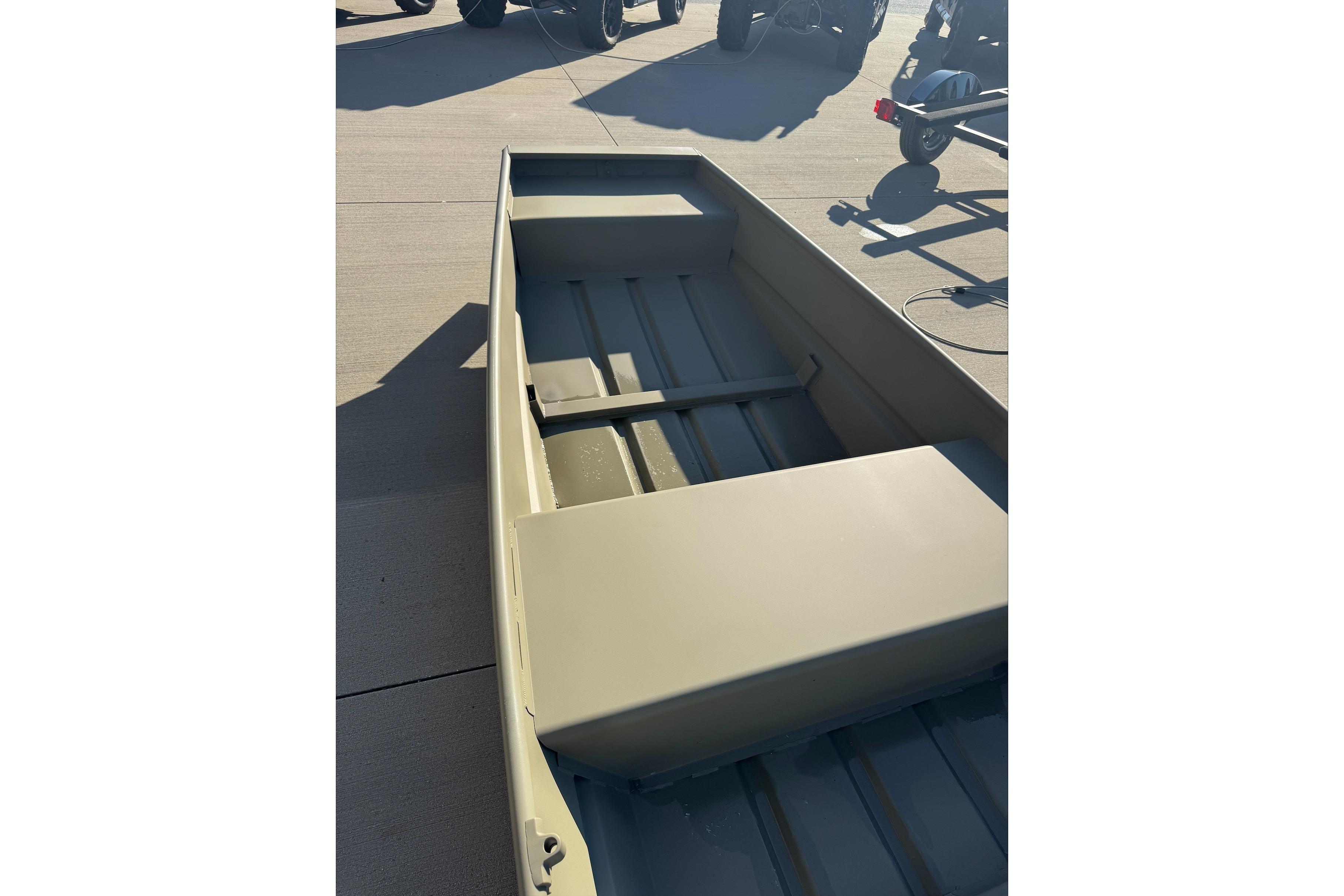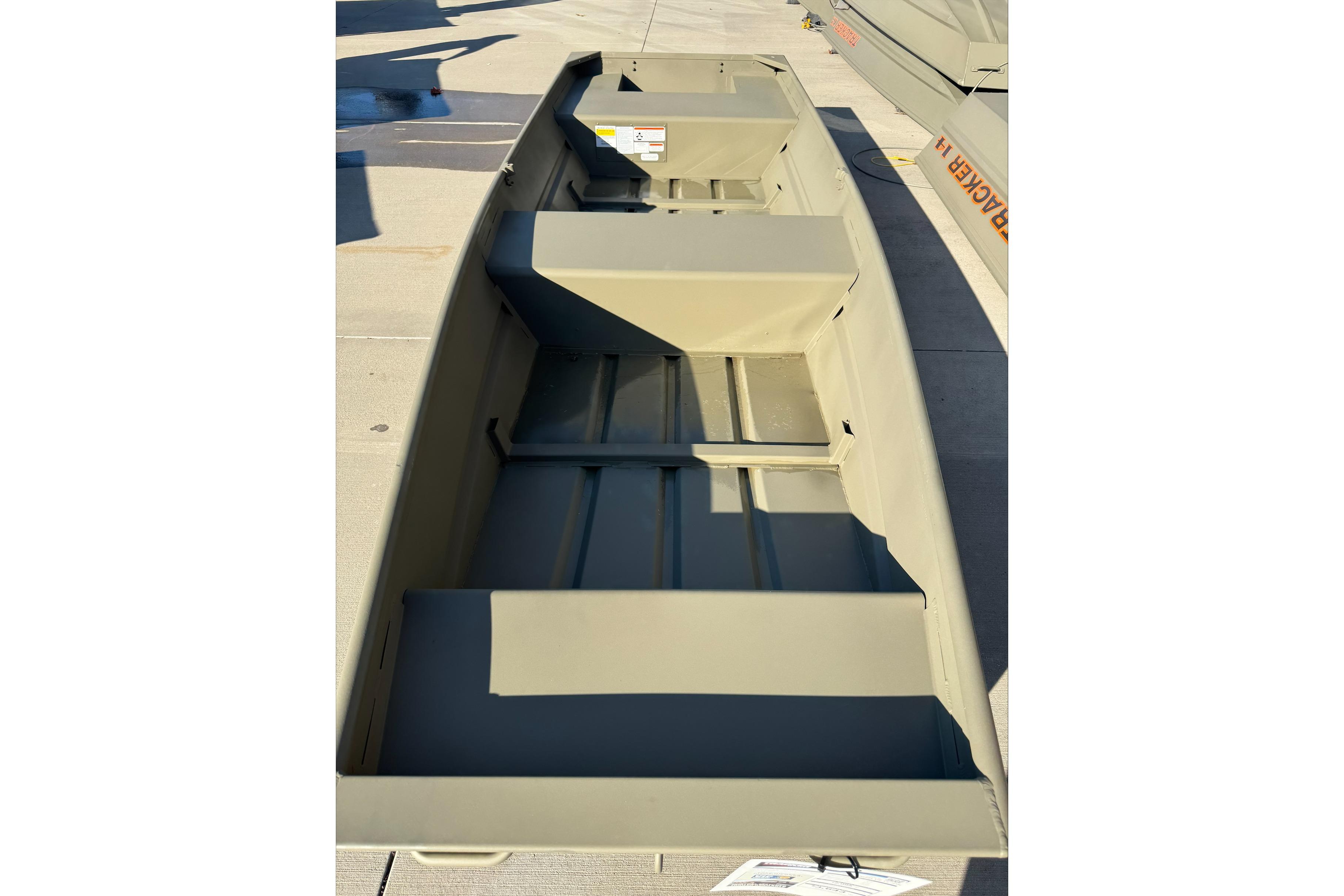 Introducing the TRACKER GRIZZLY 14 jon boat, an agile aluminum vessel crafted to comfortably host three anglers. Emphasizing the all-welded hull design, the TRACKER GRIZZLY 14 sets a new standard in durability and performance. Unlike riveted hulls that may develop vulnerabilities over time, the all-welded construction of the GRIZZLY 14 ensures a solid and seamless framework, enhancing longevity and reliability. Whether tackling challenging waters or cruising leisurely, the all-welded hull design guarantees a secure and enjoyable boating experience, making the GRIZZLY 14 a top choice for adventurous anglers. Reinforced with aft foam boxes and corner braces at the transom, this boat is engineered to thrive in rugged terrains, whether embarking on a dusty trail to your secluded fishing haven or enjoying a serene day on the water. The GRIZZLY 14 features center and aft bench seats, complemented by a spacious bow platform, offering ample space for gear storage and ensuring a cozy fishing experience for all occupants.