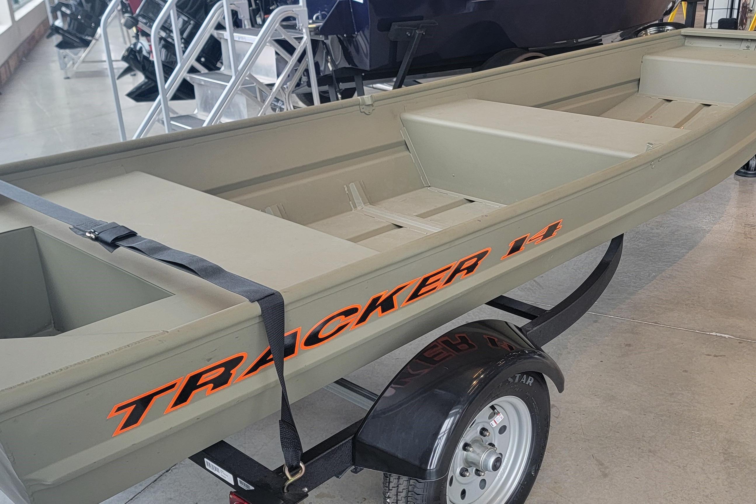 Introducing the TRACKER GRIZZLY 14 jon boat, an agile aluminum vessel crafted to comfortably host three anglers. Emphasizing the all-welded hull design, the TRACKER GRIZZLY 14 sets a new standard in durability and performance. Unlike riveted hulls that may develop vulnerabilities over time, the all-welded construction of the GRIZZLY 14 ensures a solid and seamless framework, enhancing longevity and reliability. Whether tackling challenging waters or cruising leisurely, the all-welded hull design guarantees a secure and enjoyable boating experience, making the GRIZZLY 14 a top choice for adventurous anglers. Reinforced with aft foam boxes and corner braces at the transom, this boat is engineered to thrive in rugged terrains, whether embarking on a dusty trail to your secluded fishing haven or enjoying a serene day on the water. The GRIZZLY 14 features center and aft bench seats, complemented by a spacious bow platform, offering ample space for gear storage and ensuring a cozy fishing experience for all occupants.