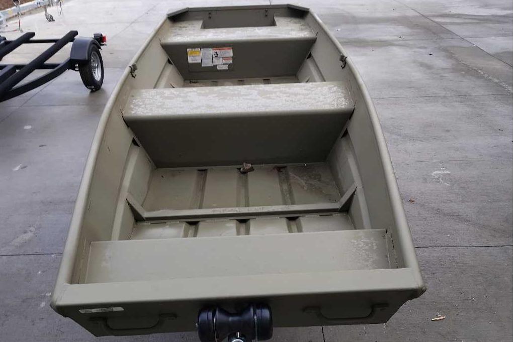 Introducing the TRACKER GRIZZLY 14 jon boat, an agile aluminum vessel crafted to comfortably host three anglers. Emphasizing the all-welded hull design, the TRACKER GRIZZLY 14 sets a new standard in durability and performance. Unlike riveted hulls that may develop vulnerabilities over time, the all-welded construction of the GRIZZLY 14 ensures a solid and seamless framework, enhancing longevity and reliability. Whether tackling challenging waters or cruising leisurely, the all-welded hull design guarantees a secure and enjoyable boating experience, making the GRIZZLY 14 a top choice for adventurous anglers. Reinforced with aft foam boxes and corner braces at the transom, this boat is engineered to thrive in rugged terrains, whether embarking on a dusty trail to your secluded fishing haven or enjoying a serene day on the water. The GRIZZLY 14 features center and aft bench seats, complemented by a spacious bow platform, offering ample space for gear storage and ensuring a cozy fishing experience for all occupants.