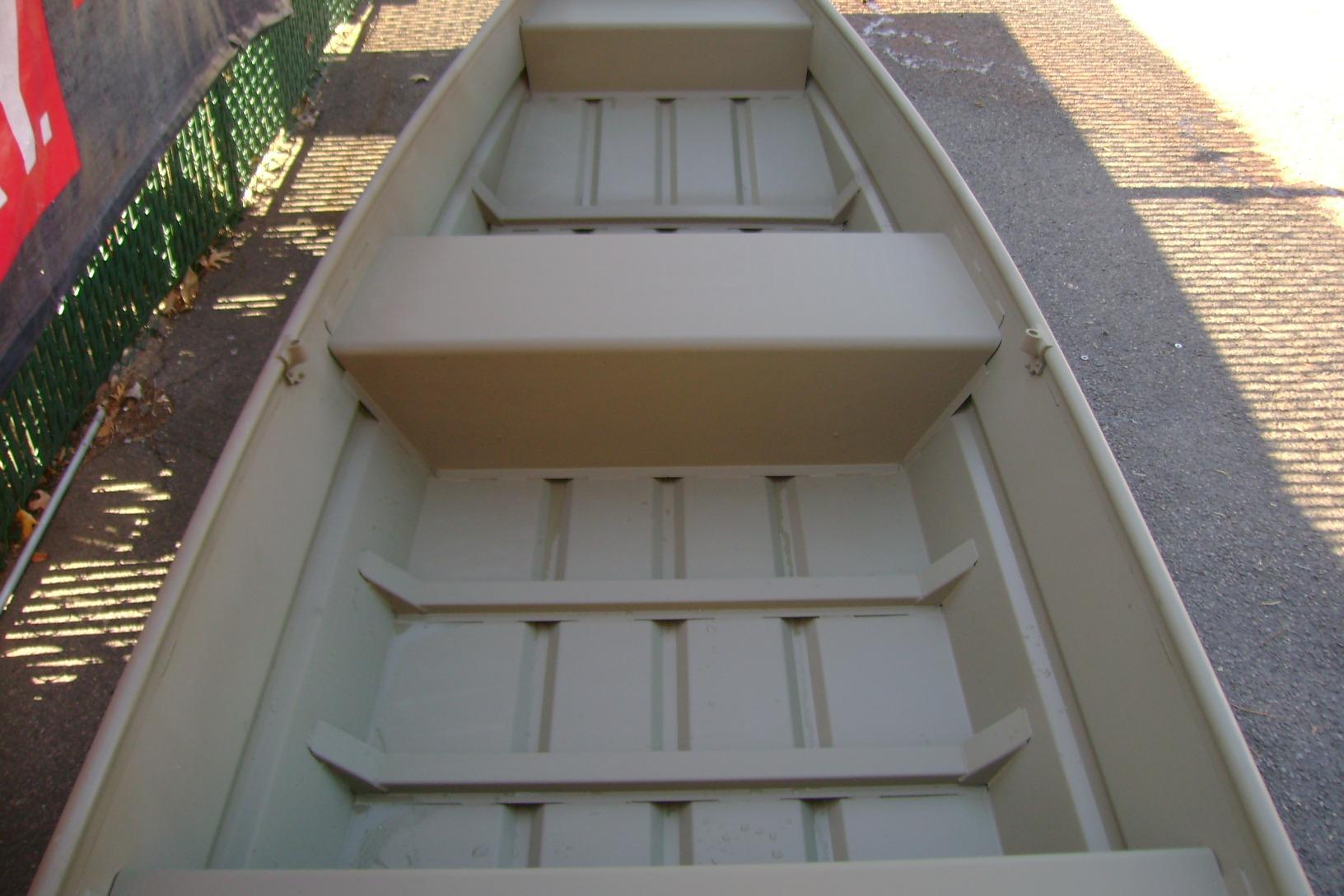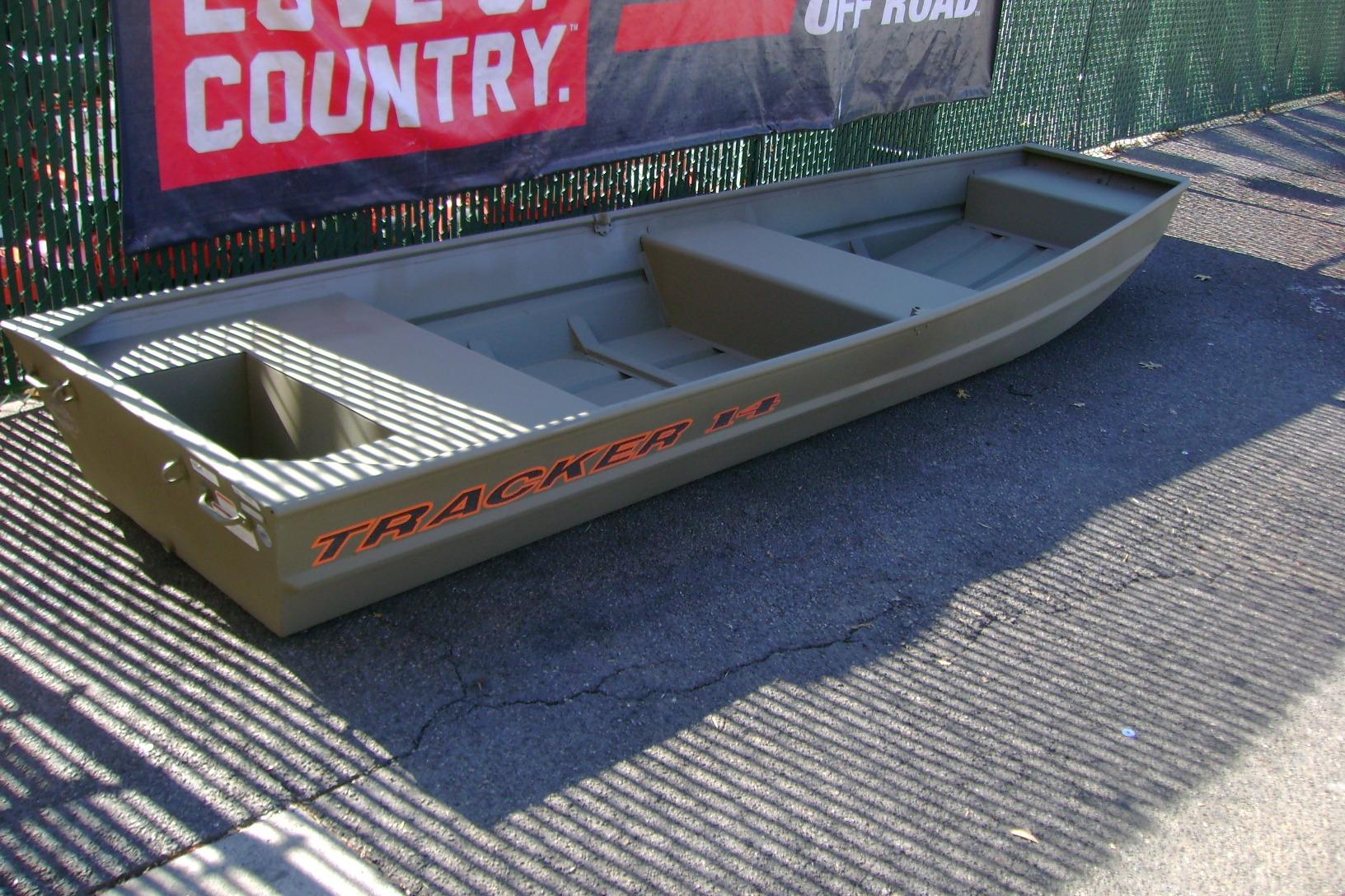 Introducing the TRACKER GRIZZLY 14 jon boat, an agile aluminum vessel crafted to comfortably host three anglers. Emphasizing the all-welded hull design, the TRACKER GRIZZLY 14 sets a new standard in durability and performance. Unlike riveted hulls that may develop vulnerabilities over time, the all-welded construction of the GRIZZLY 14 ensures a solid and seamless framework, enhancing longevity and reliability. Whether tackling challenging waters or cruising leisurely, the all-welded hull design guarantees a secure and enjoyable boating experience, making the GRIZZLY 14 a top choice for adventurous anglers. Reinforced with aft foam boxes and corner braces at the transom, this boat is engineered to thrive in rugged terrains, whether embarking on a dusty trail to your secluded fishing haven or enjoying a serene day on the water. The GRIZZLY 14 features center and aft bench seats, complemented by a spacious bow platform, offering ample space for gear storage and ensuring a cozy fishing experience for all occupants.