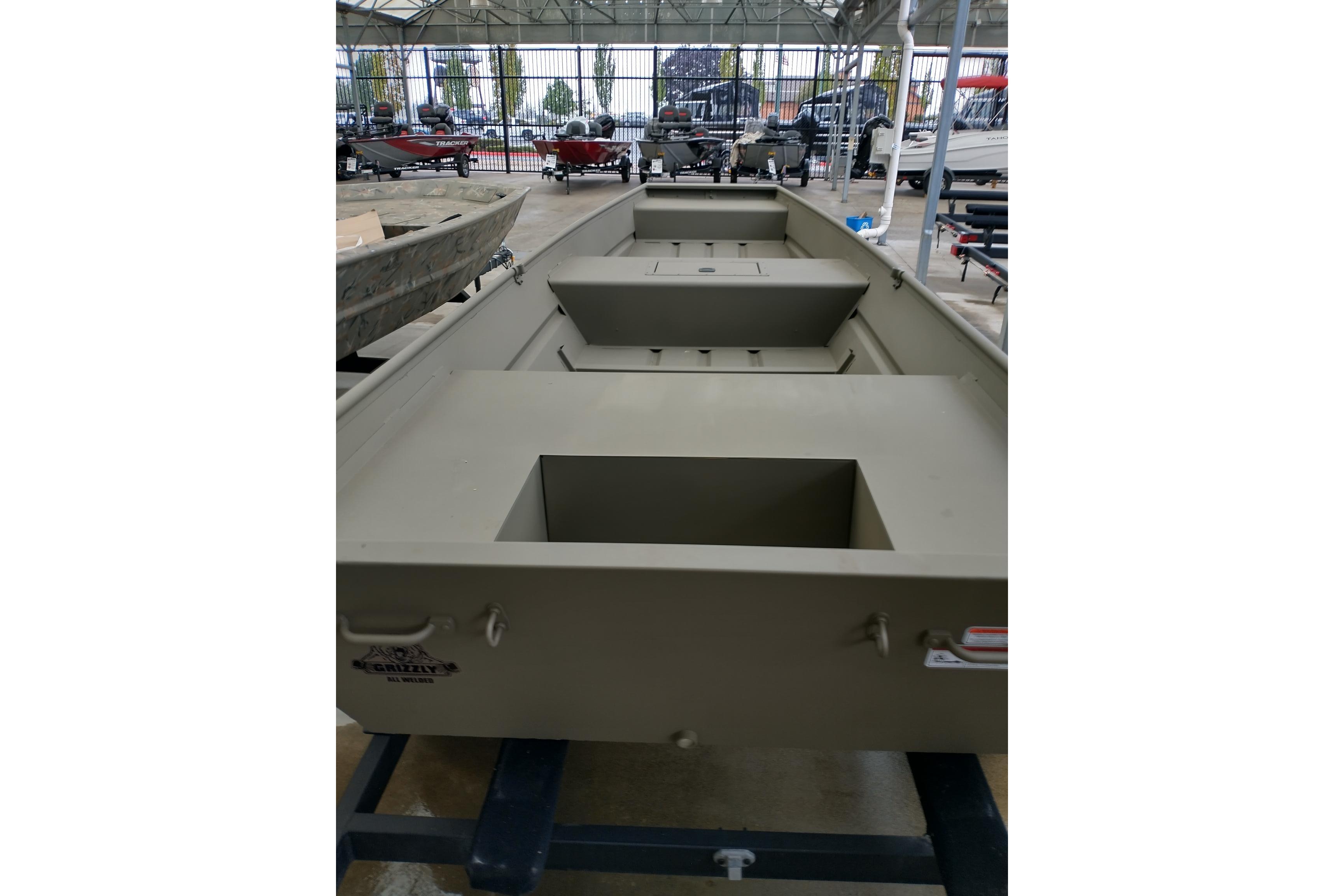 The NEW TRACKER GRIZZLY 15 Jon is a rugged and versatile all-welded aluminum jon boat, suitable for fishing, hunting, or work purposes. Its unitized stringer, transom, and hull ensure a sturdy build and a smooth, dry ride. The boat features a thick .063 aluminum cockpit floor and a 9.5-gallon wet well on the front deck. This hull provides a comfortable ride, and the Forest Green powder-coat finish, along with the SURE TREAD texture on the floor, adds to its durability. Additionally, the TRACKER PROMISE warranty offers peace of mind, making it a reliable choice among aluminum boats.
